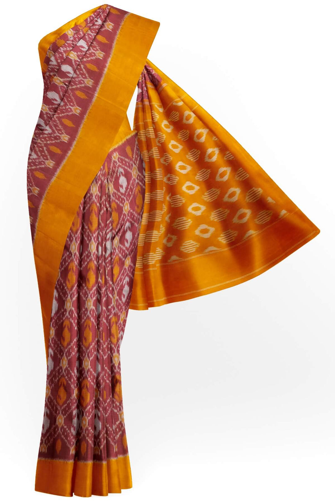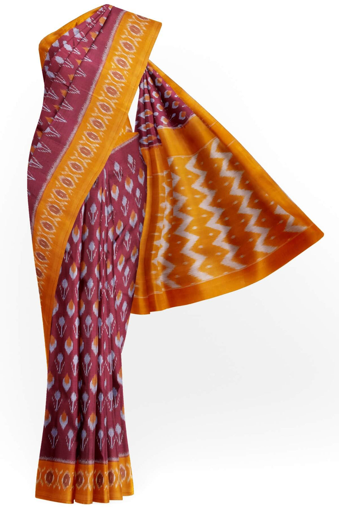 Handwoven ikat pure cotton saree in maroon with floral motifs