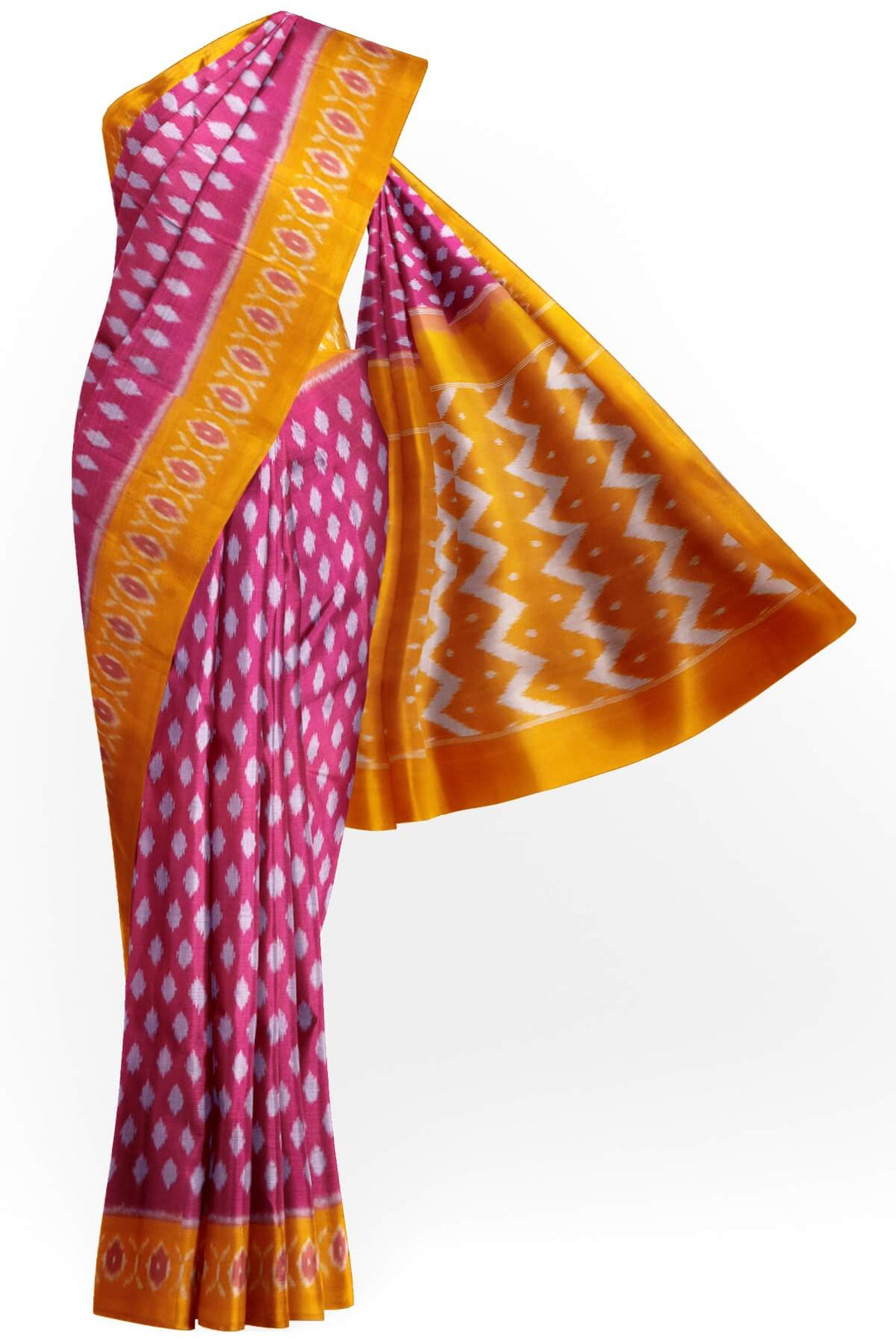 Handwoven ikat pure cotton saree in pink with floral motifs