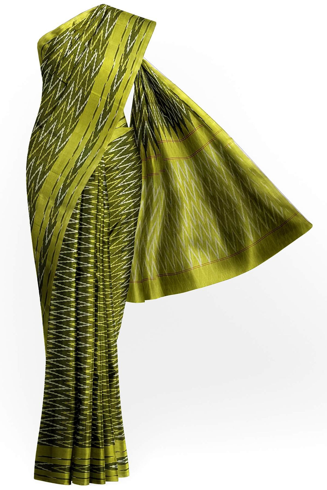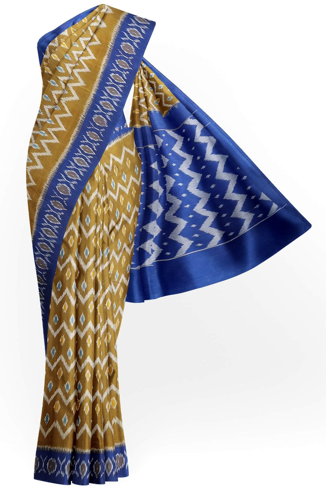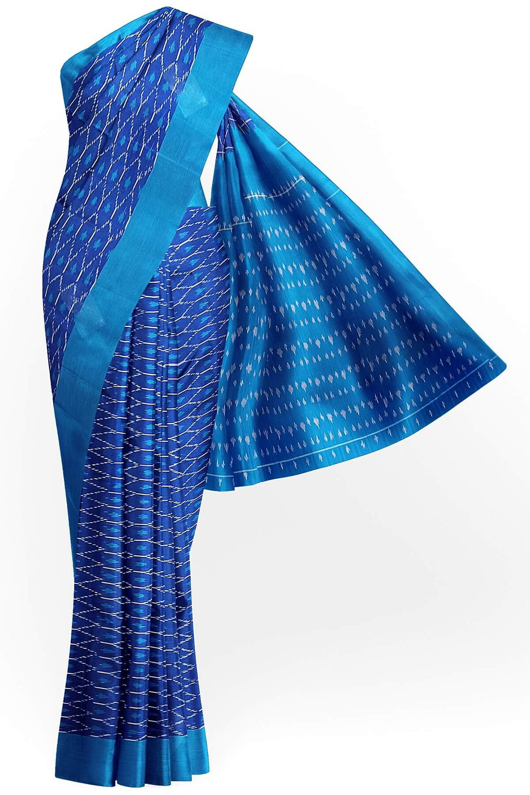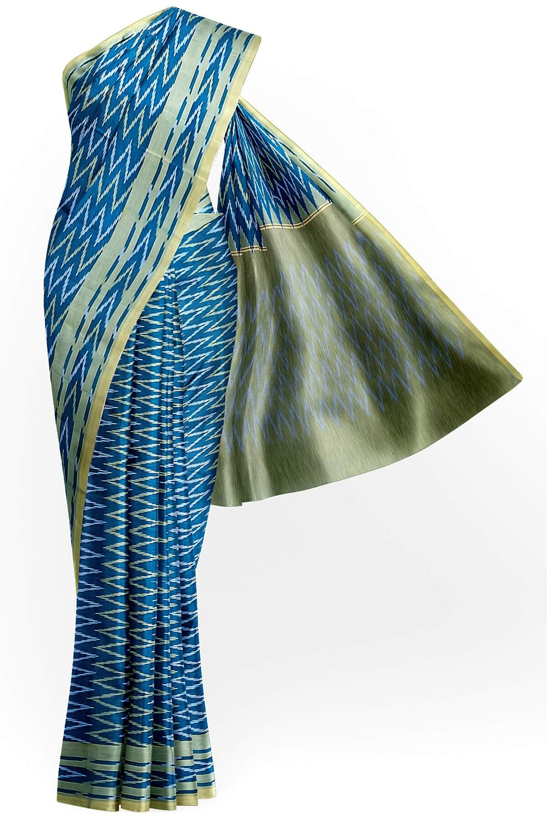 Ikat pure cotton saree in prussian blue in zig zag pattern