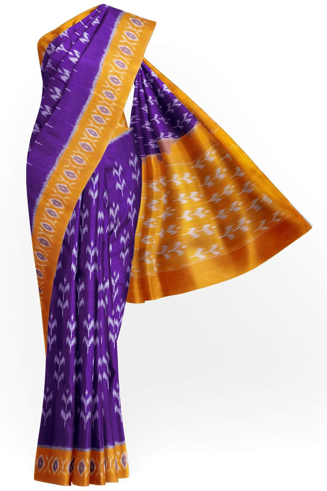 Handwoven ikat pure cotton saree in violet with floral motifs .