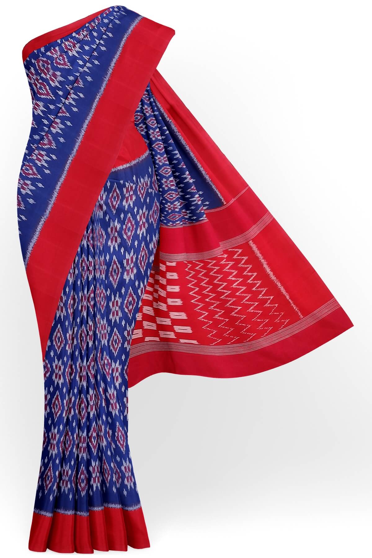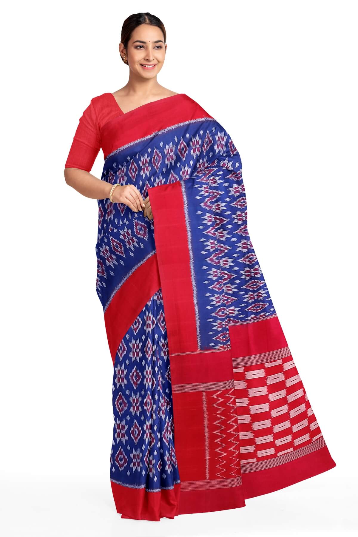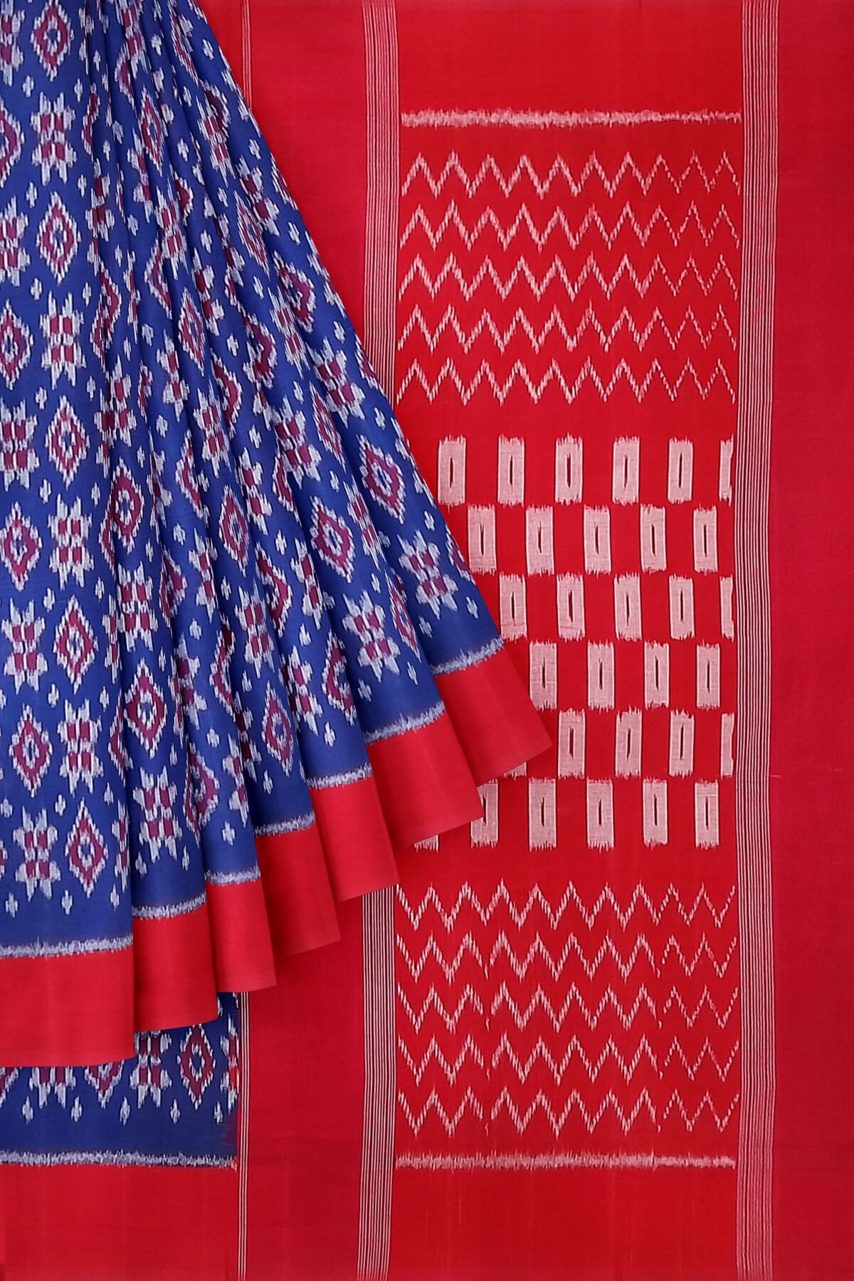 Description : Handwoven ikat pure cotton saree in blue in 4 motif telia pattern and without blouse