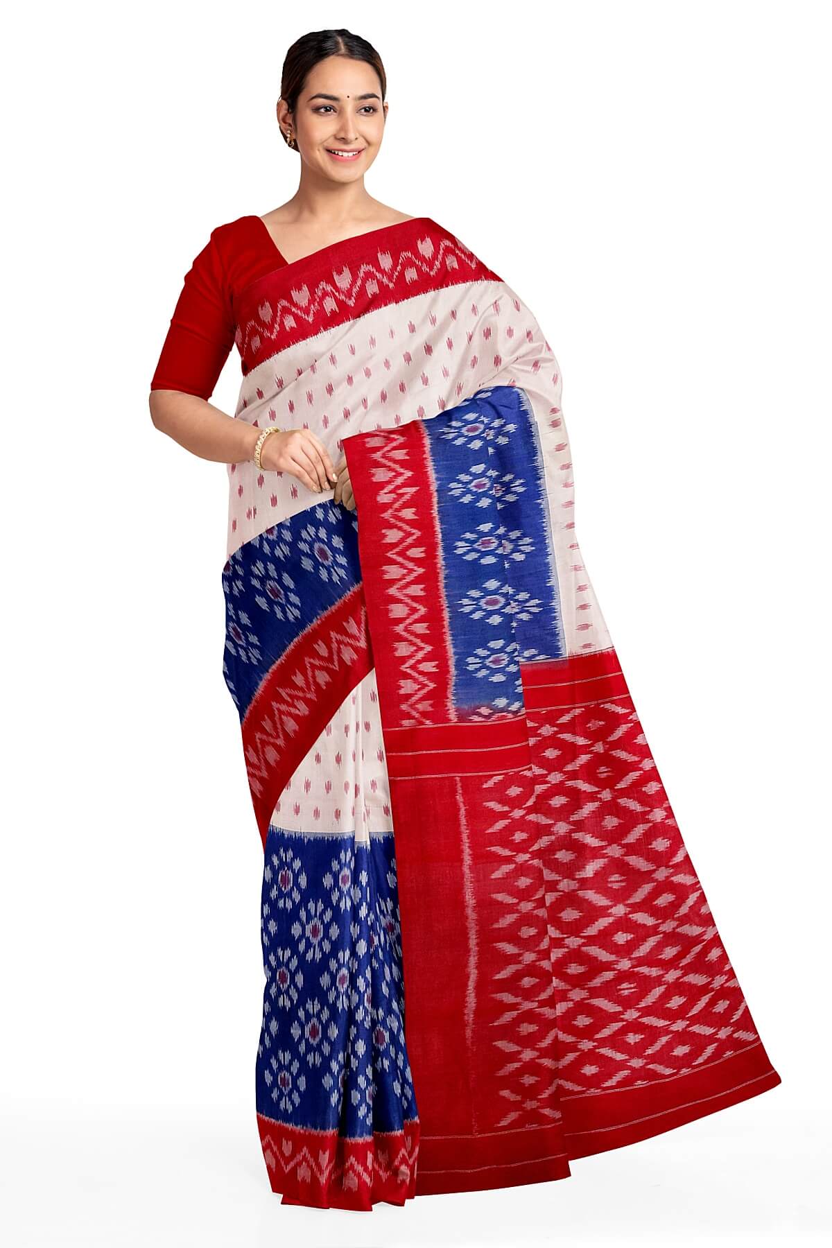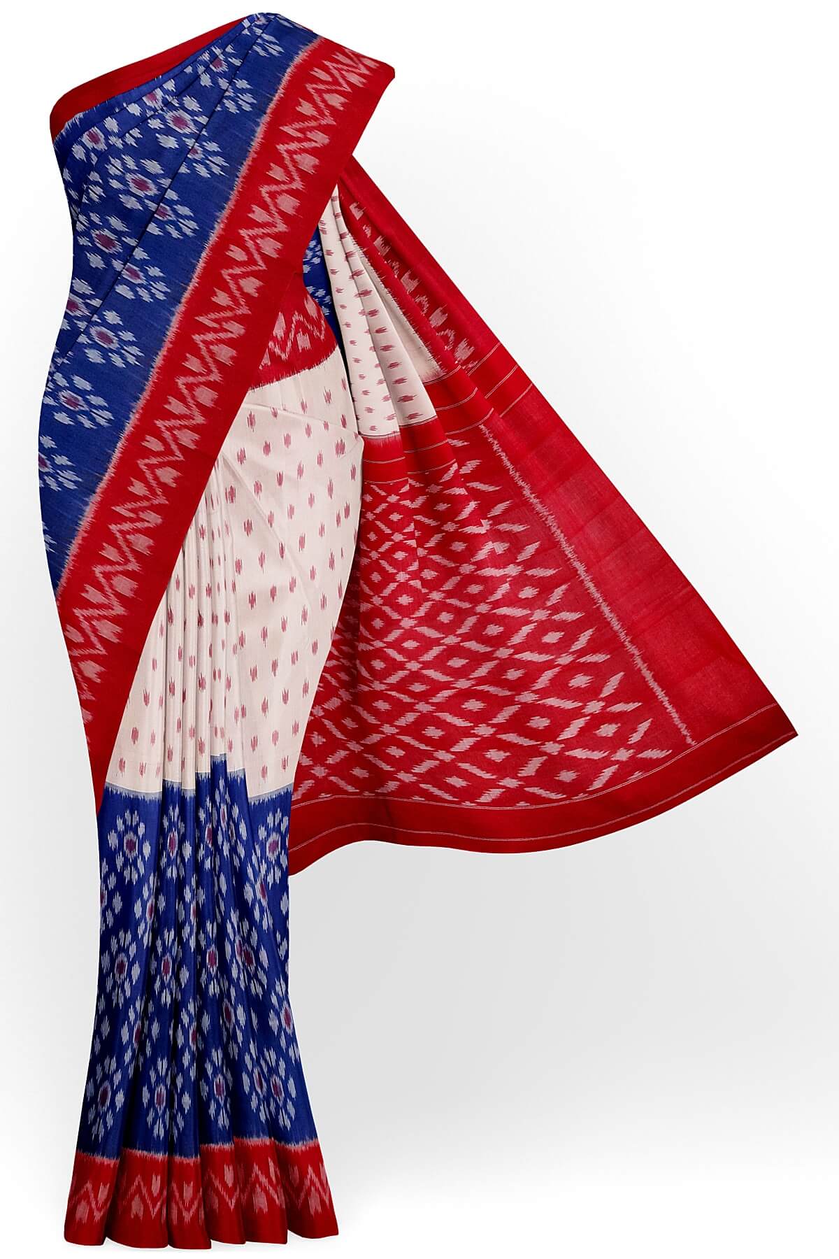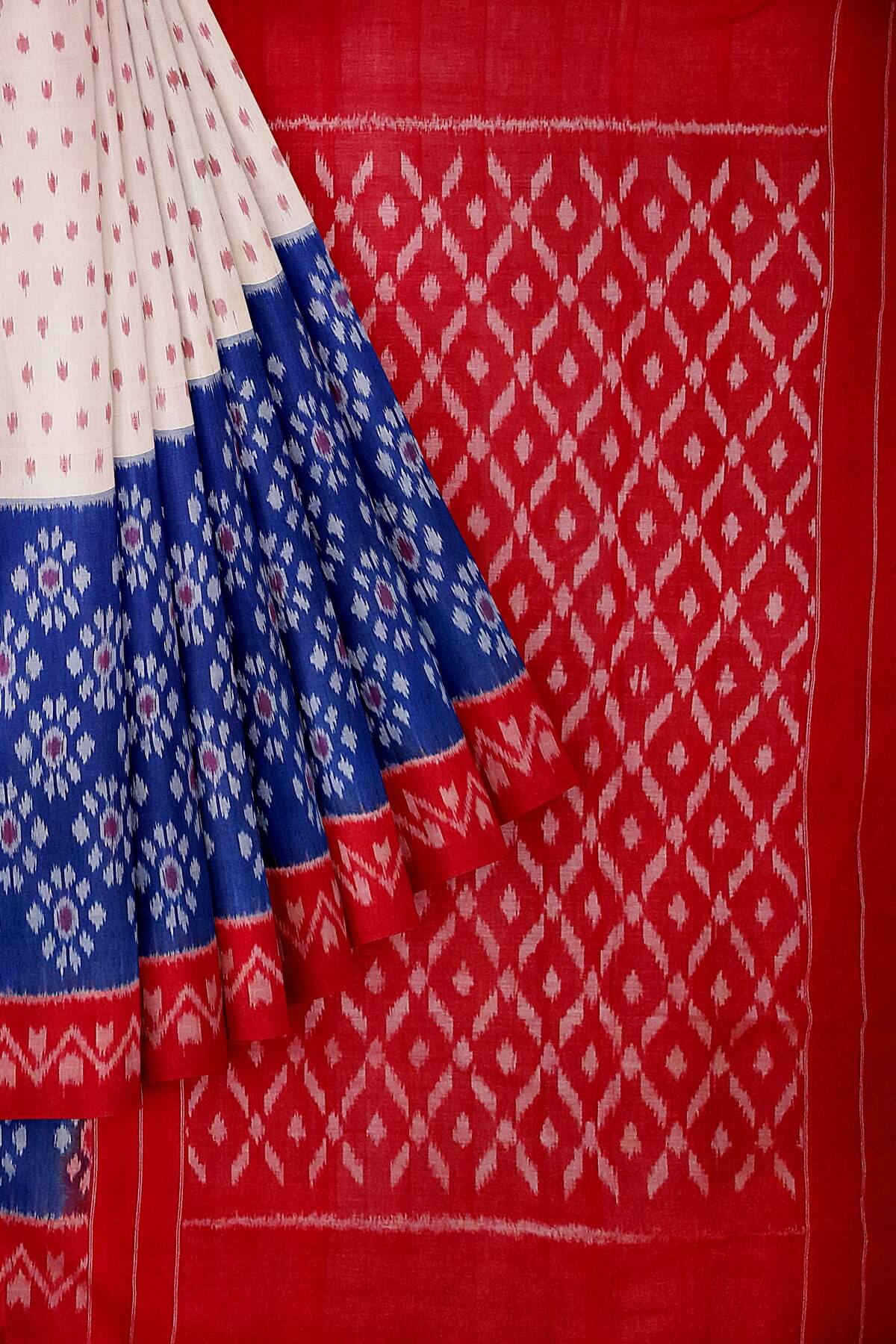 Description: Handwoven ikat pure cotton saree in cream with skirt border and without blouse