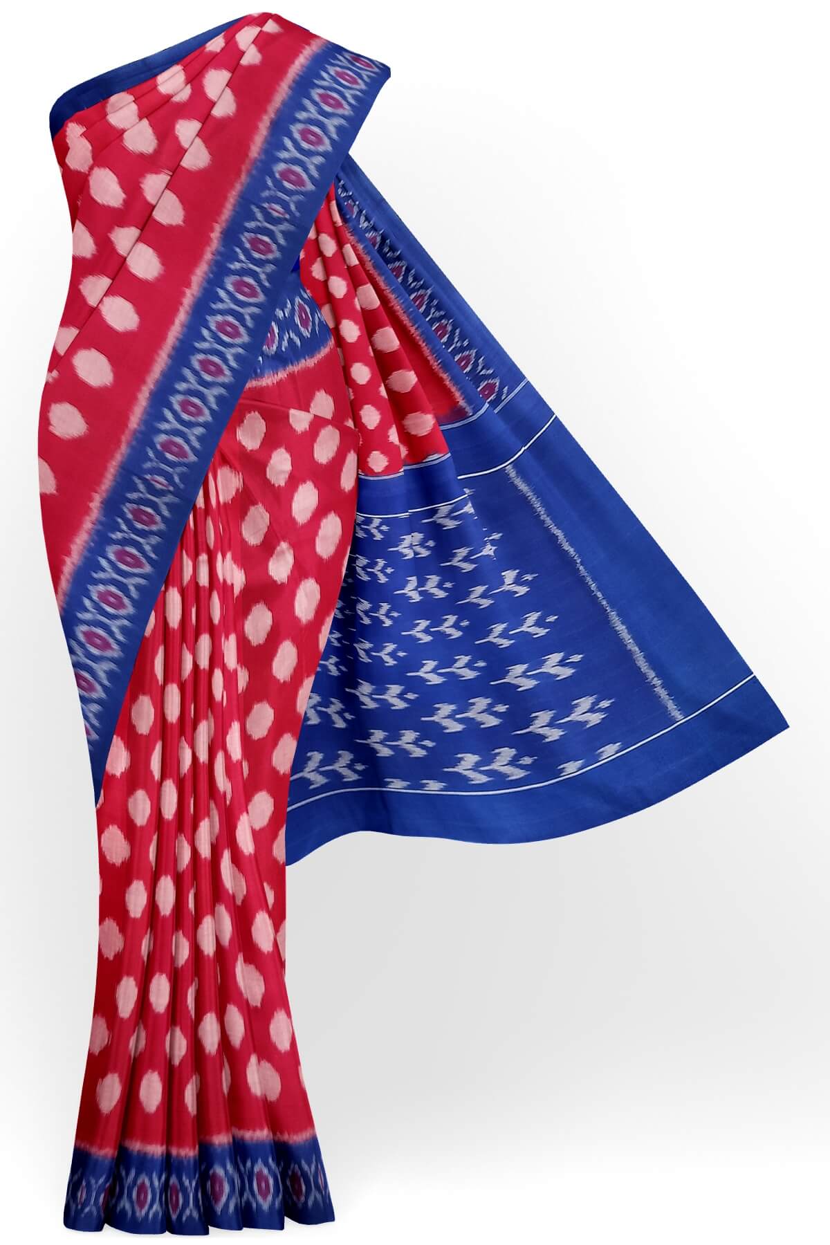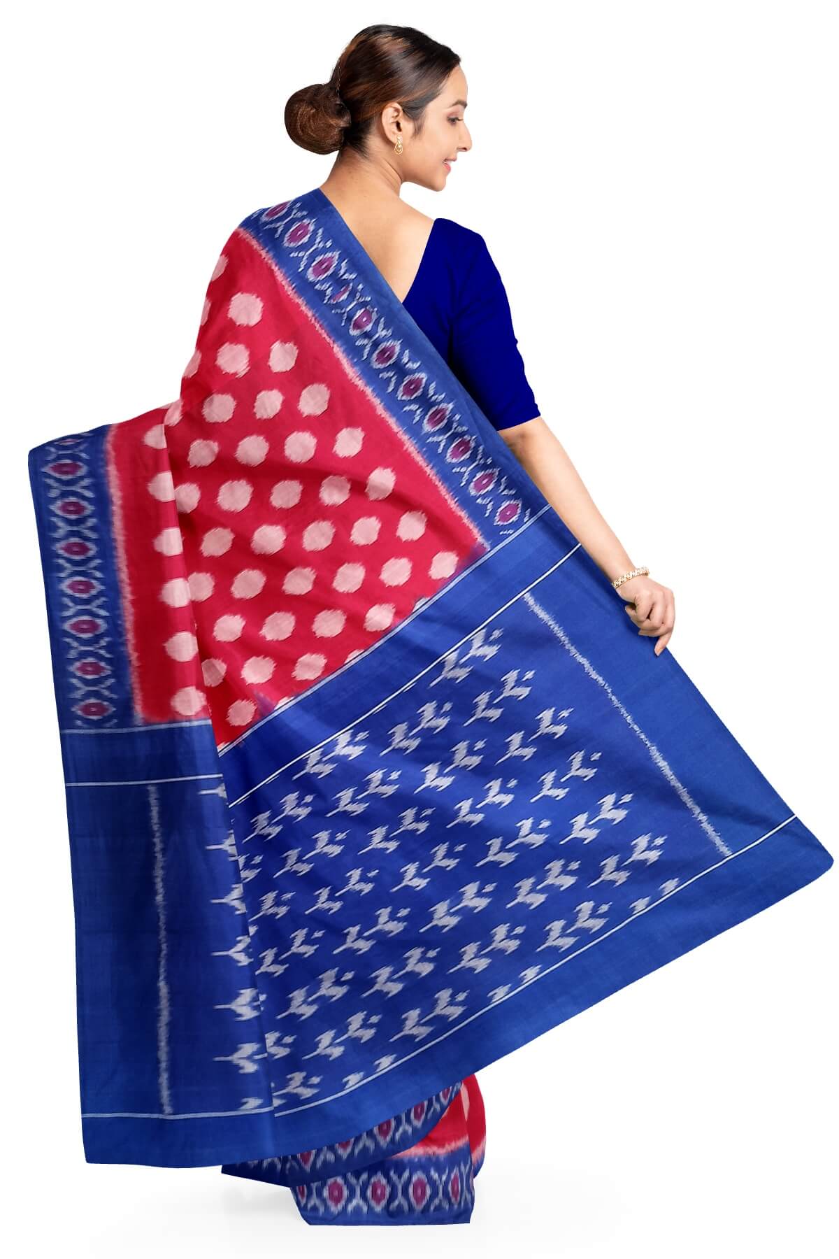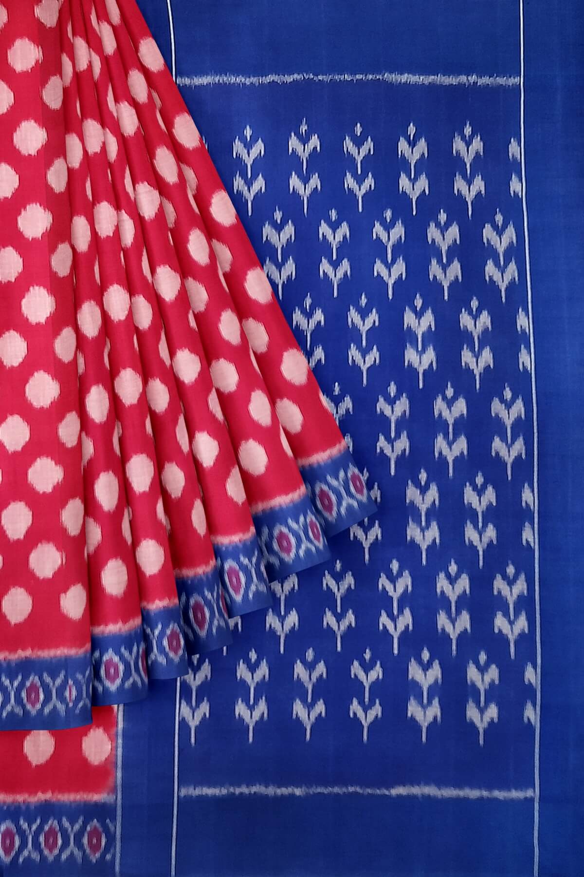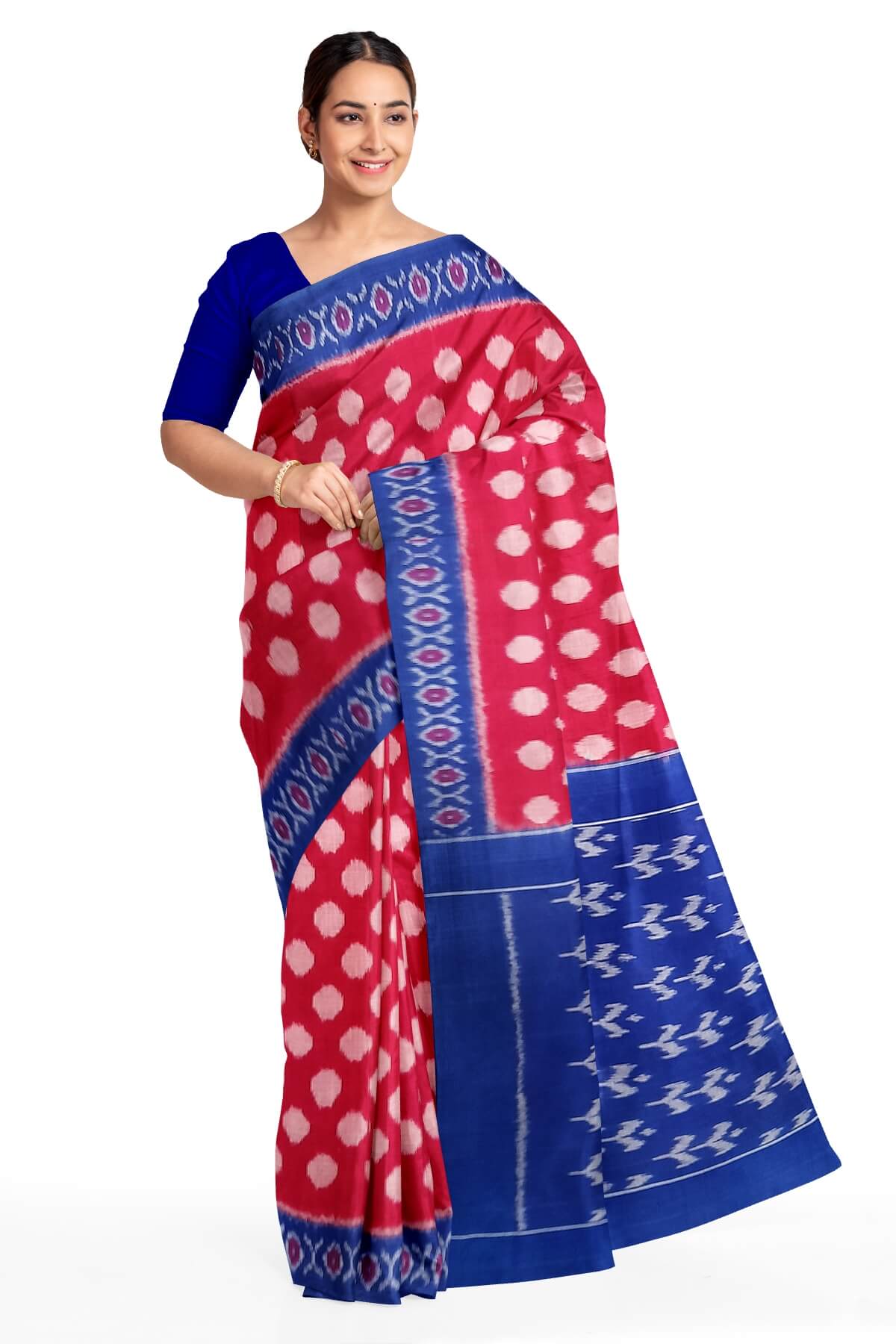 Description : Handwoven ikat pure cotton saree in pink with polka dots and without blouse