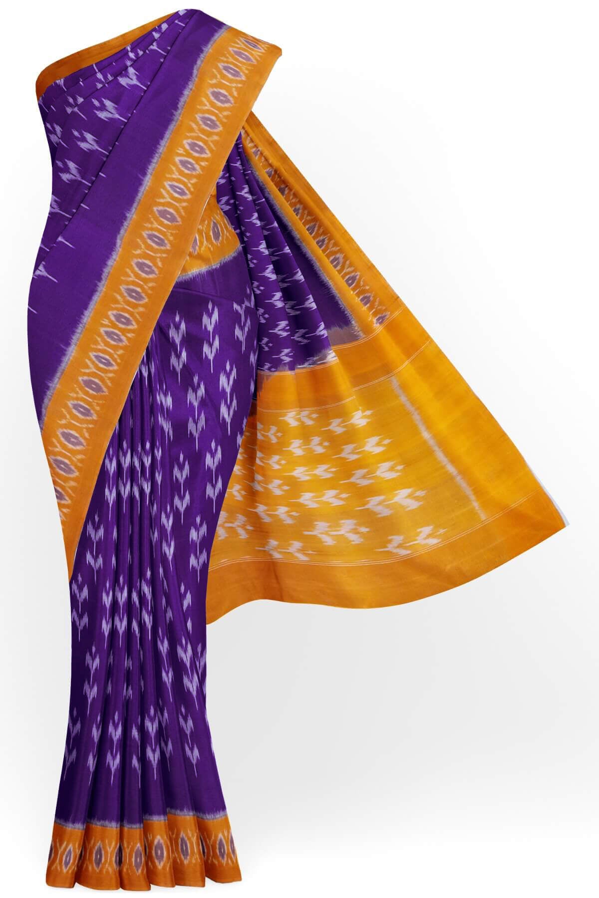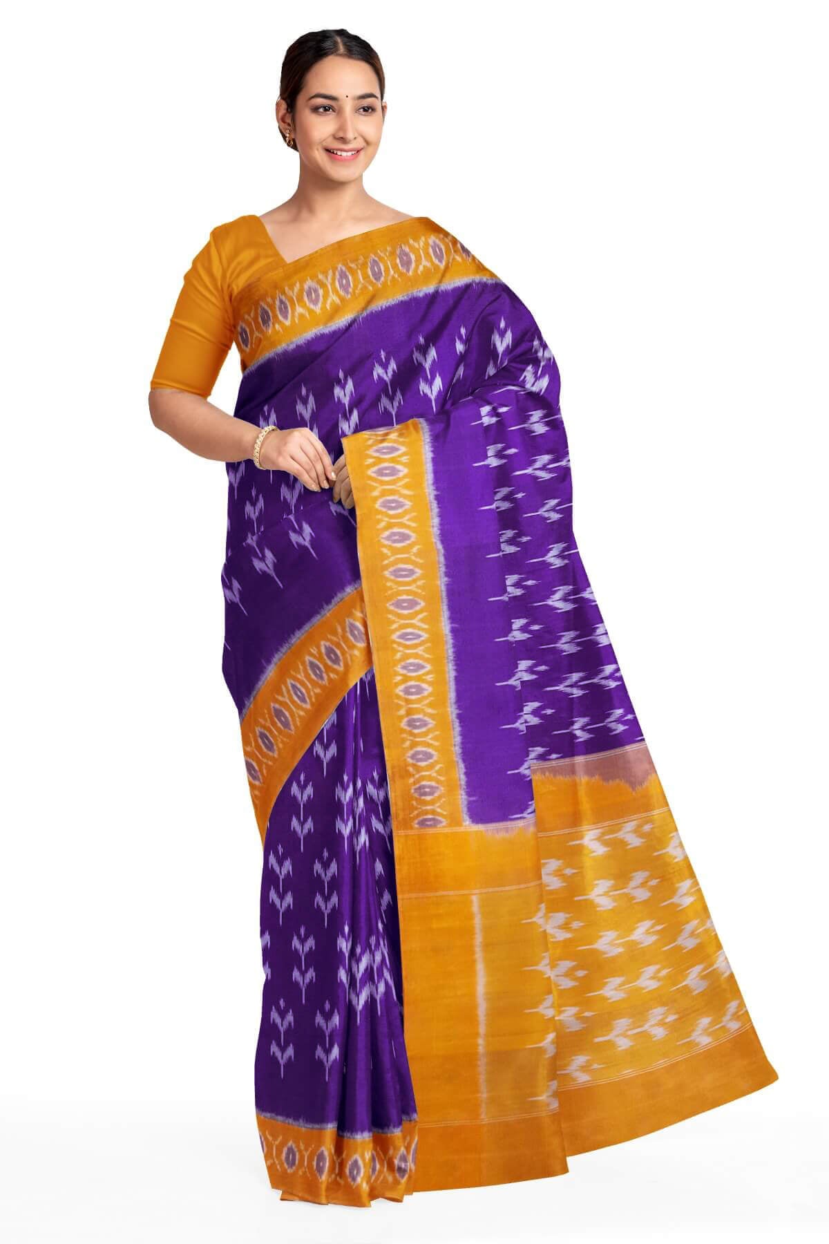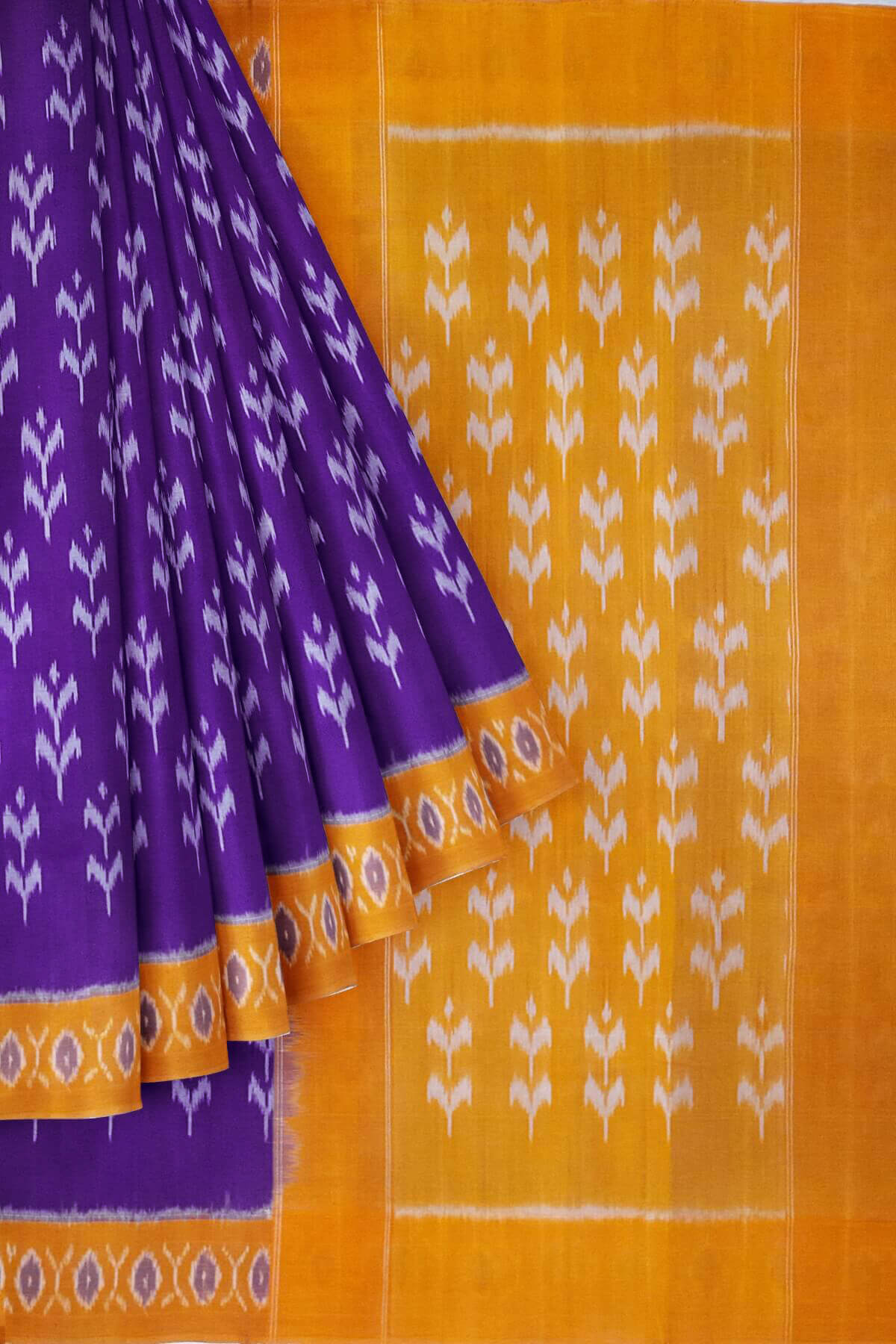 Description : Handwoven ikat pure cotton saree in violet with floral motifs and without blouse.