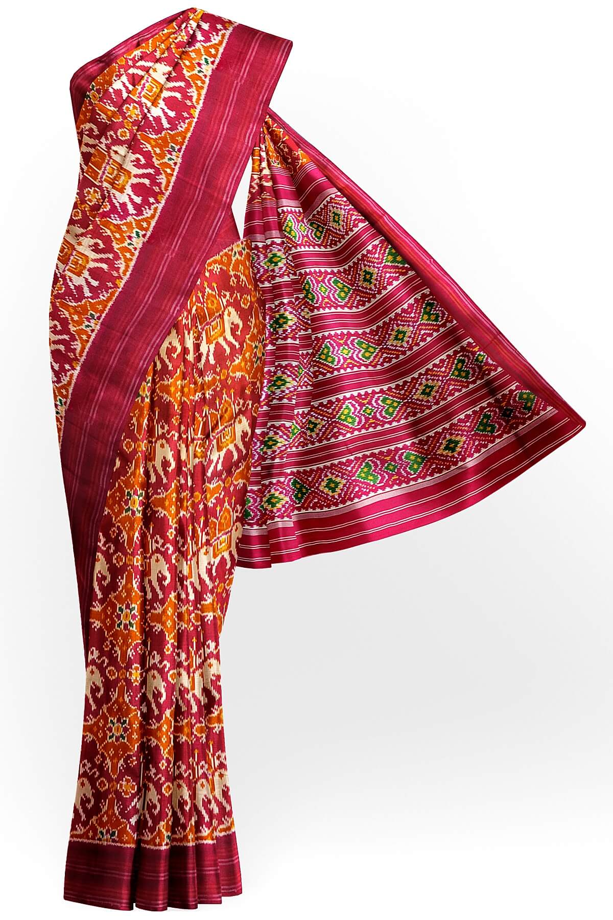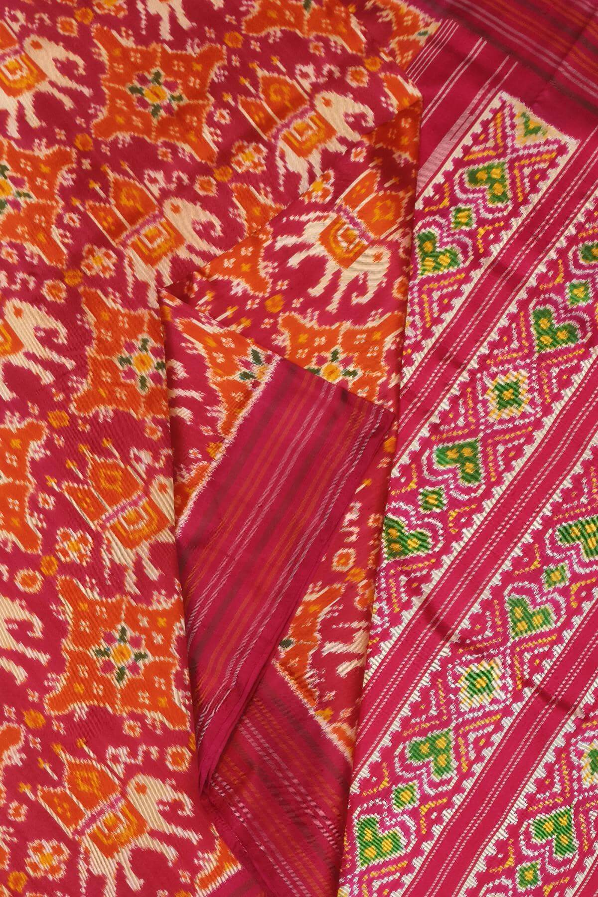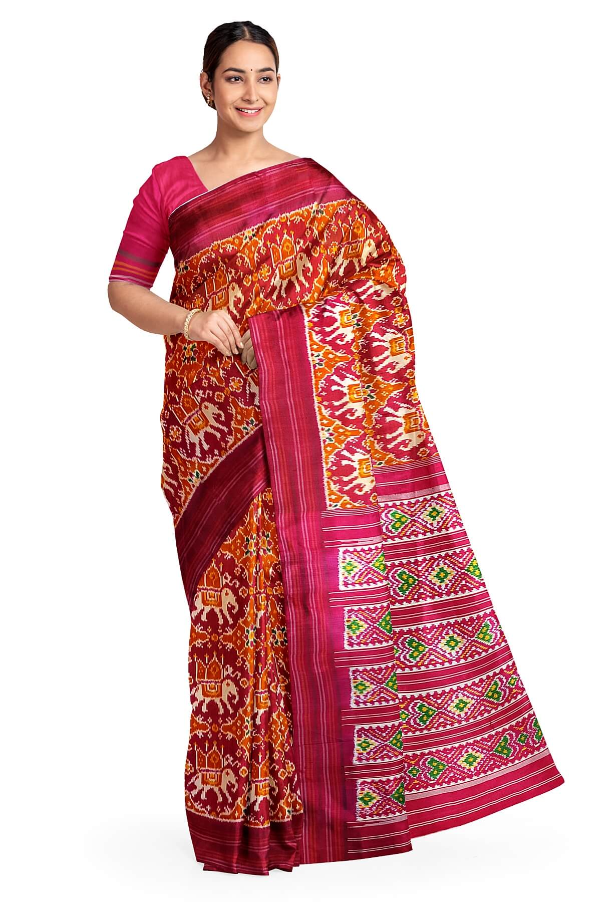 Description: A twill weave ikkat pure silk saree in pink in chabdi kunj pattern with silk borders.