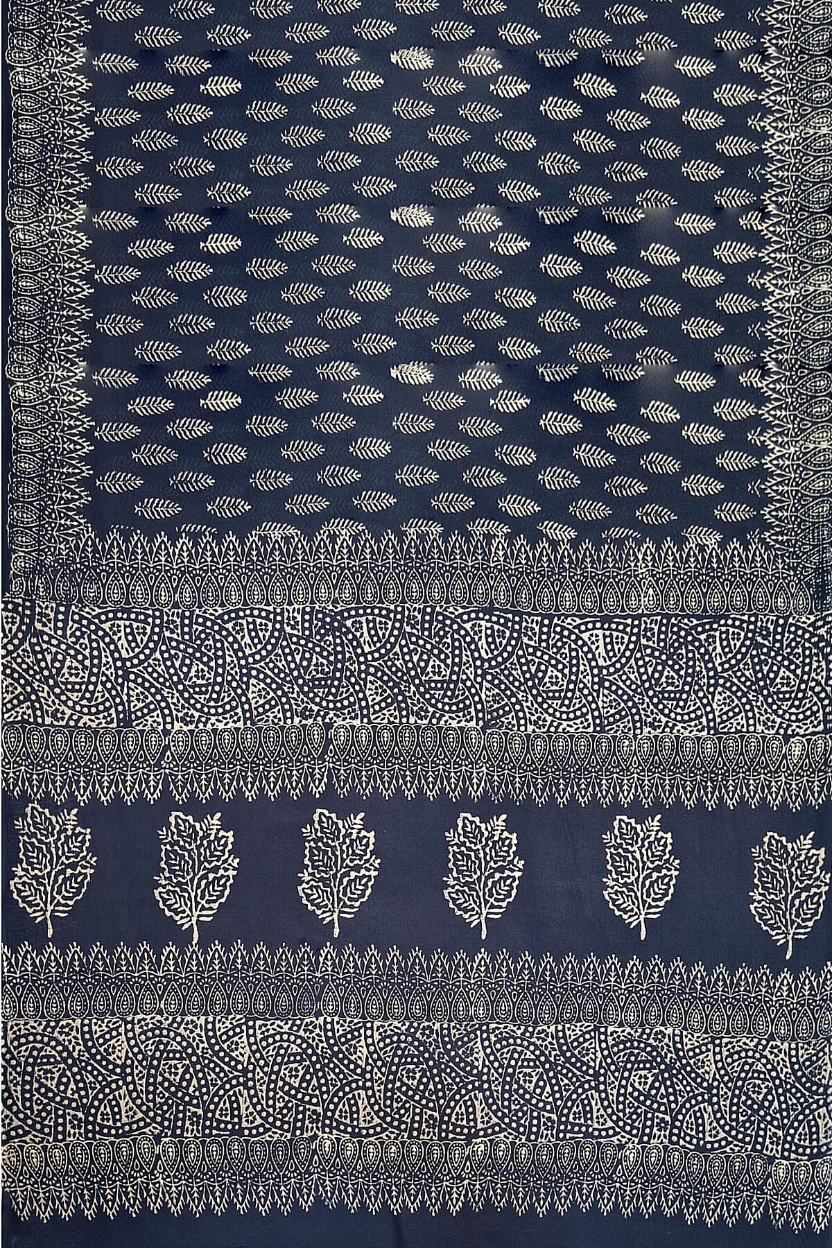 Description : Jaipur mul cotton saree in indigo in floral pattern.