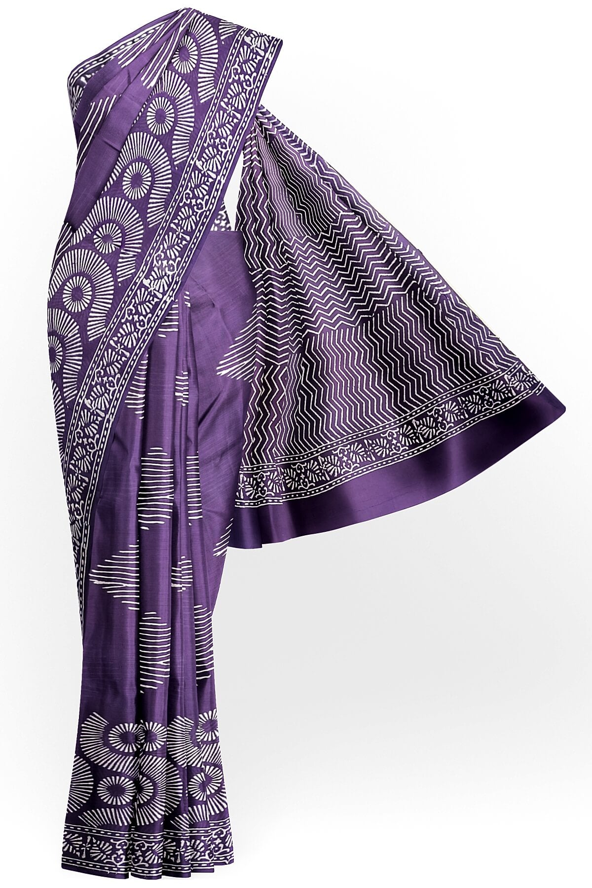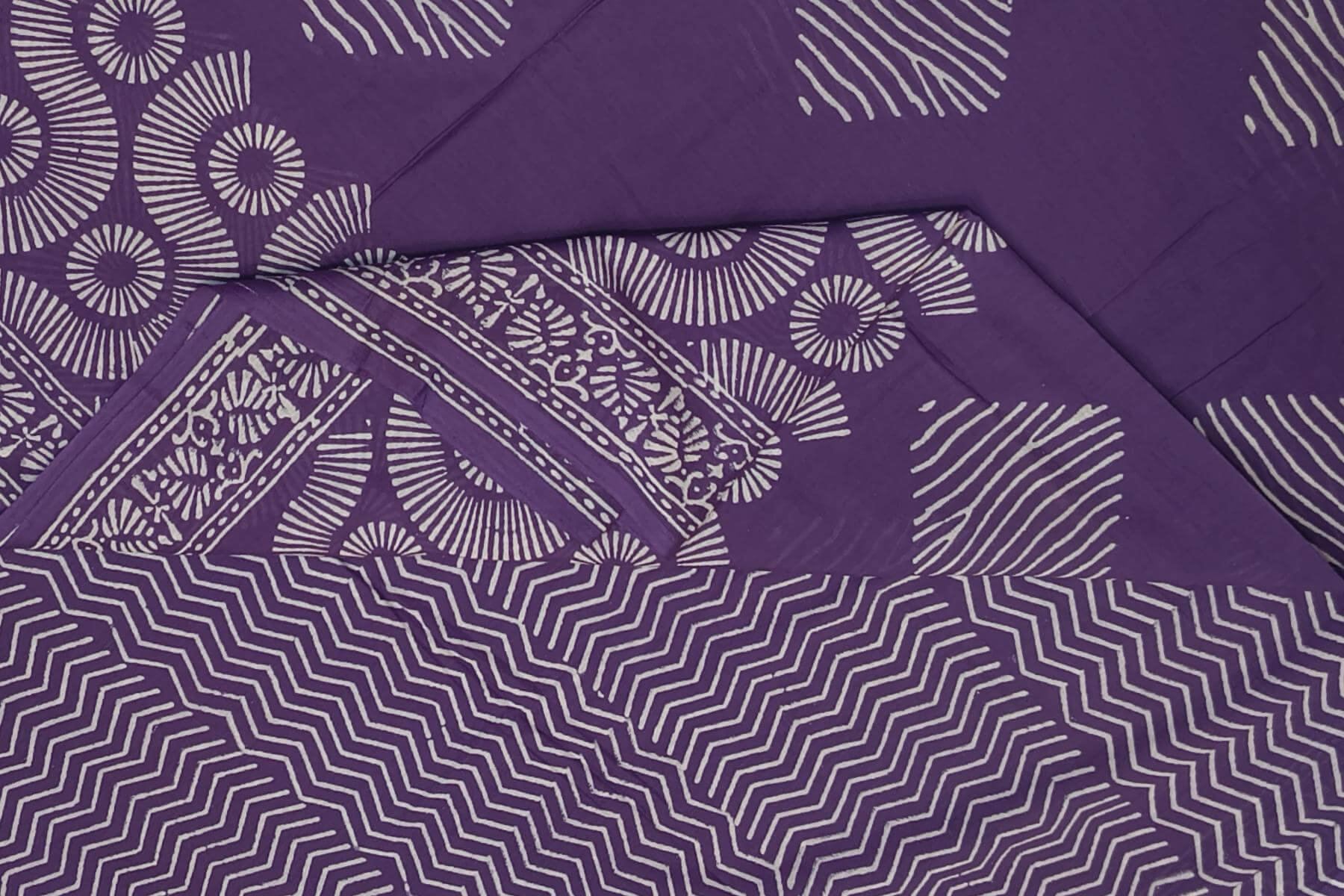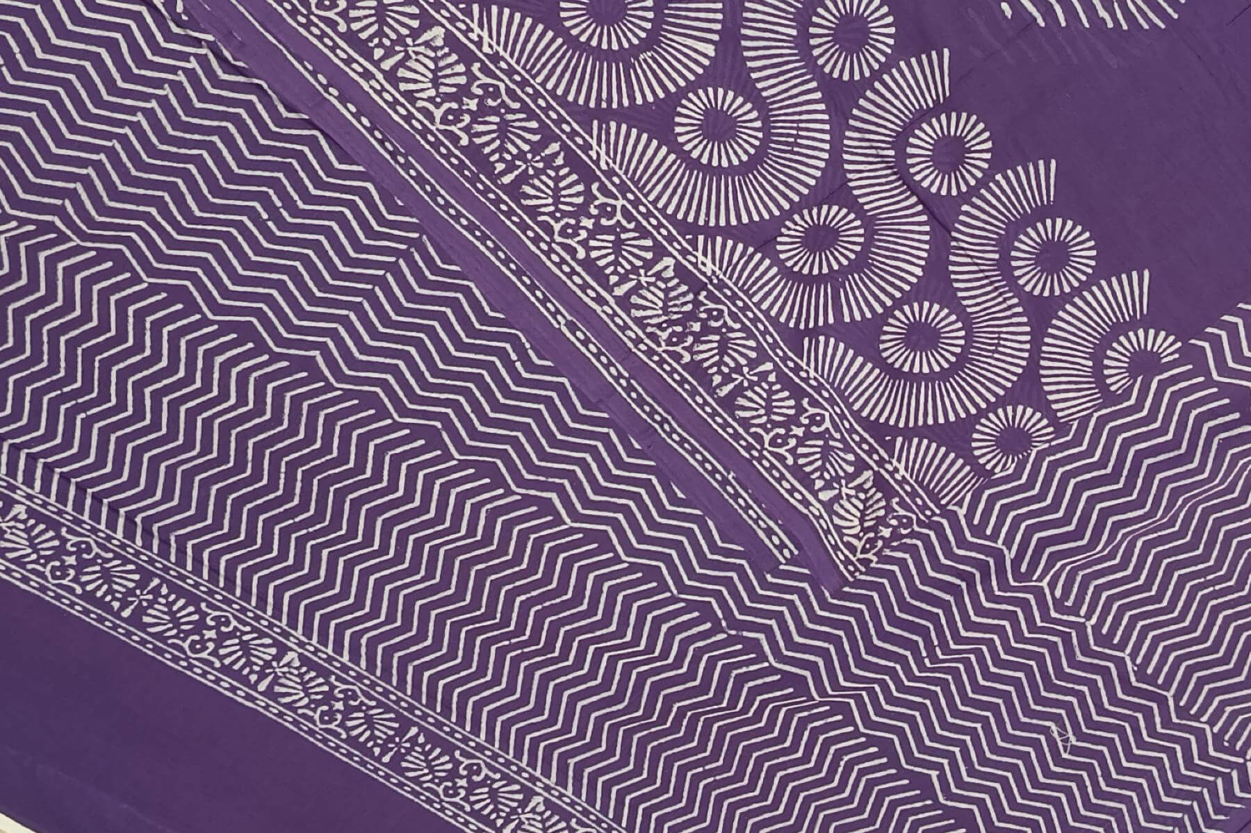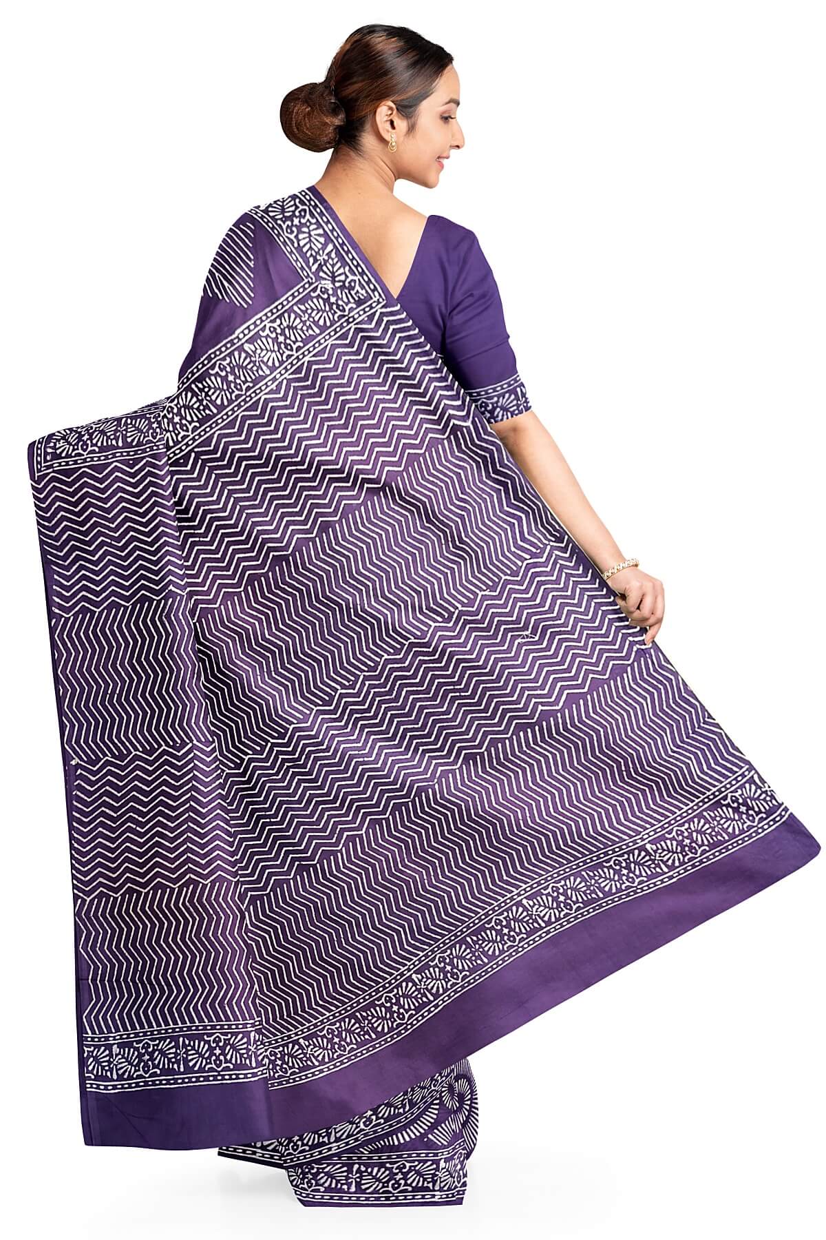 Description : Jaipur mul cotton saree in purple in geometric pattern.