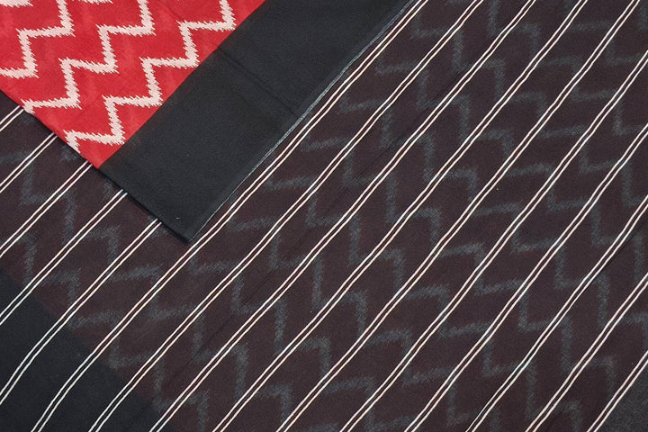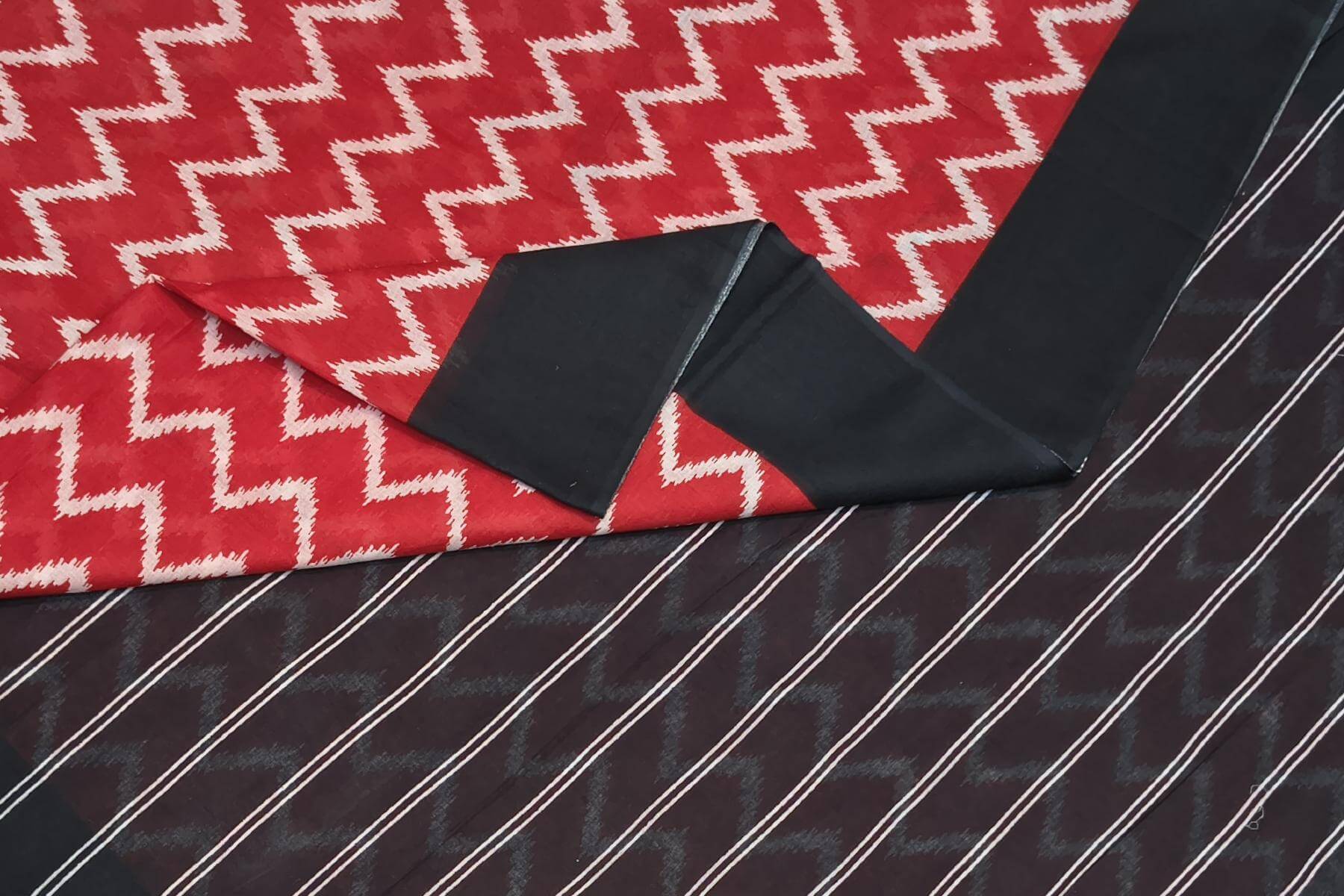 Description : Jaipur mul cotton saree in red in zig zag pattern.