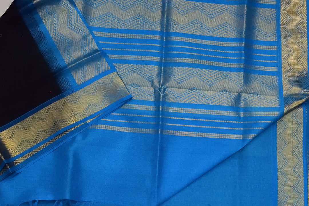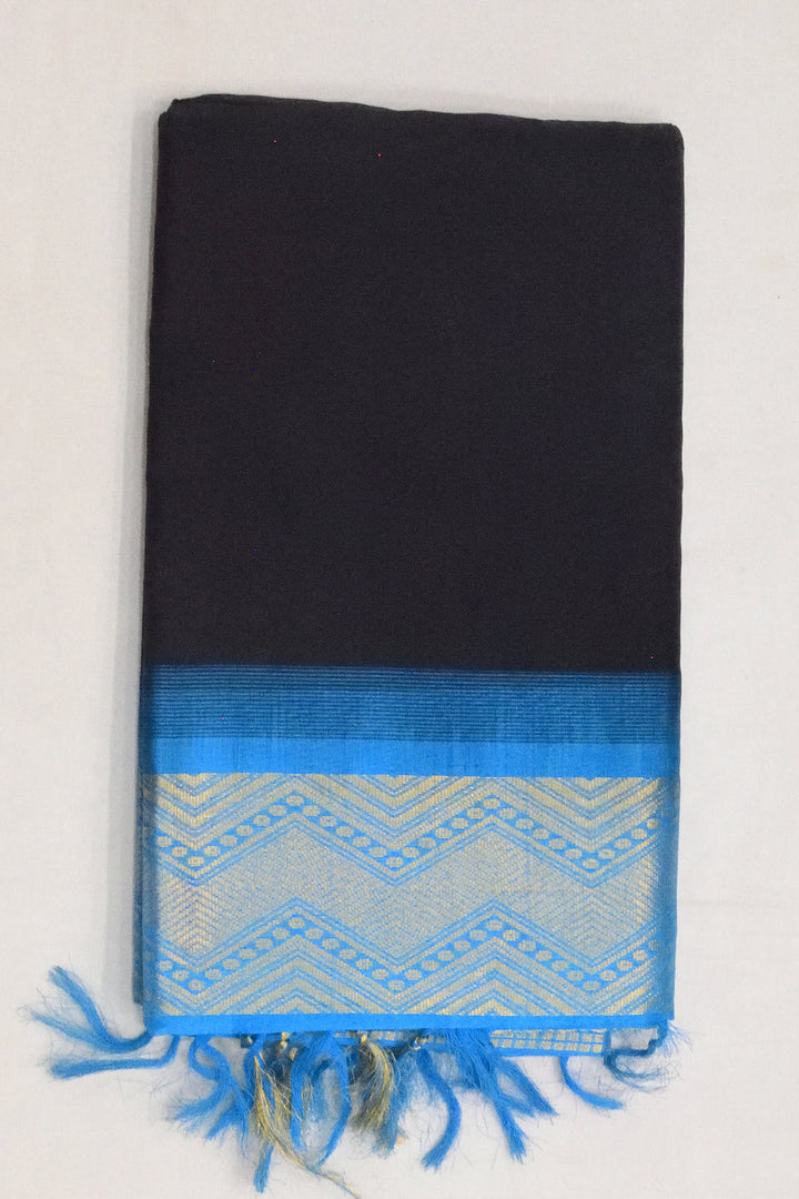 Description : Handloom Kanchi silk cotton saree in black & blue