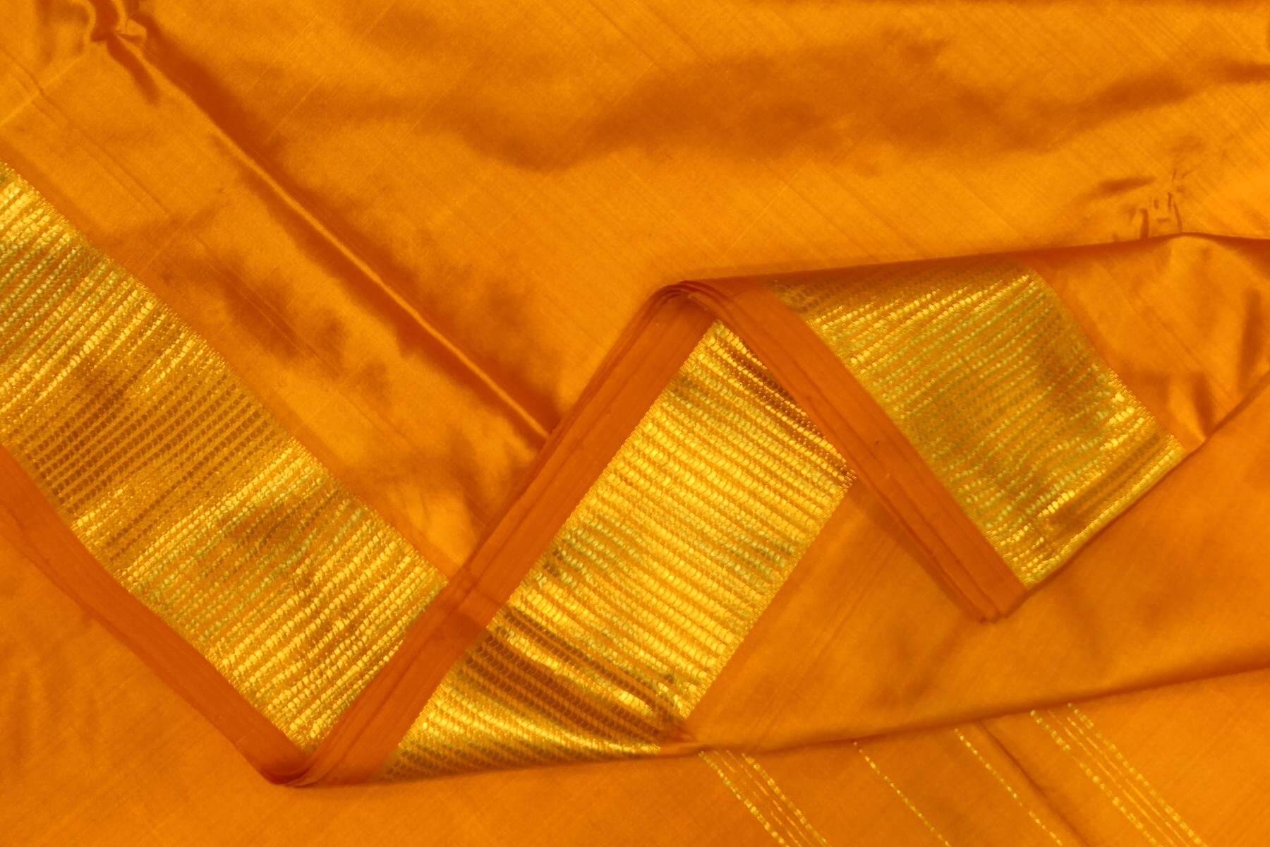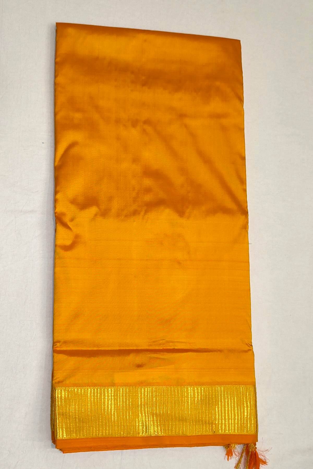 Description: Kanchi pure silk saree in mustard ( 9 yards) with blouse