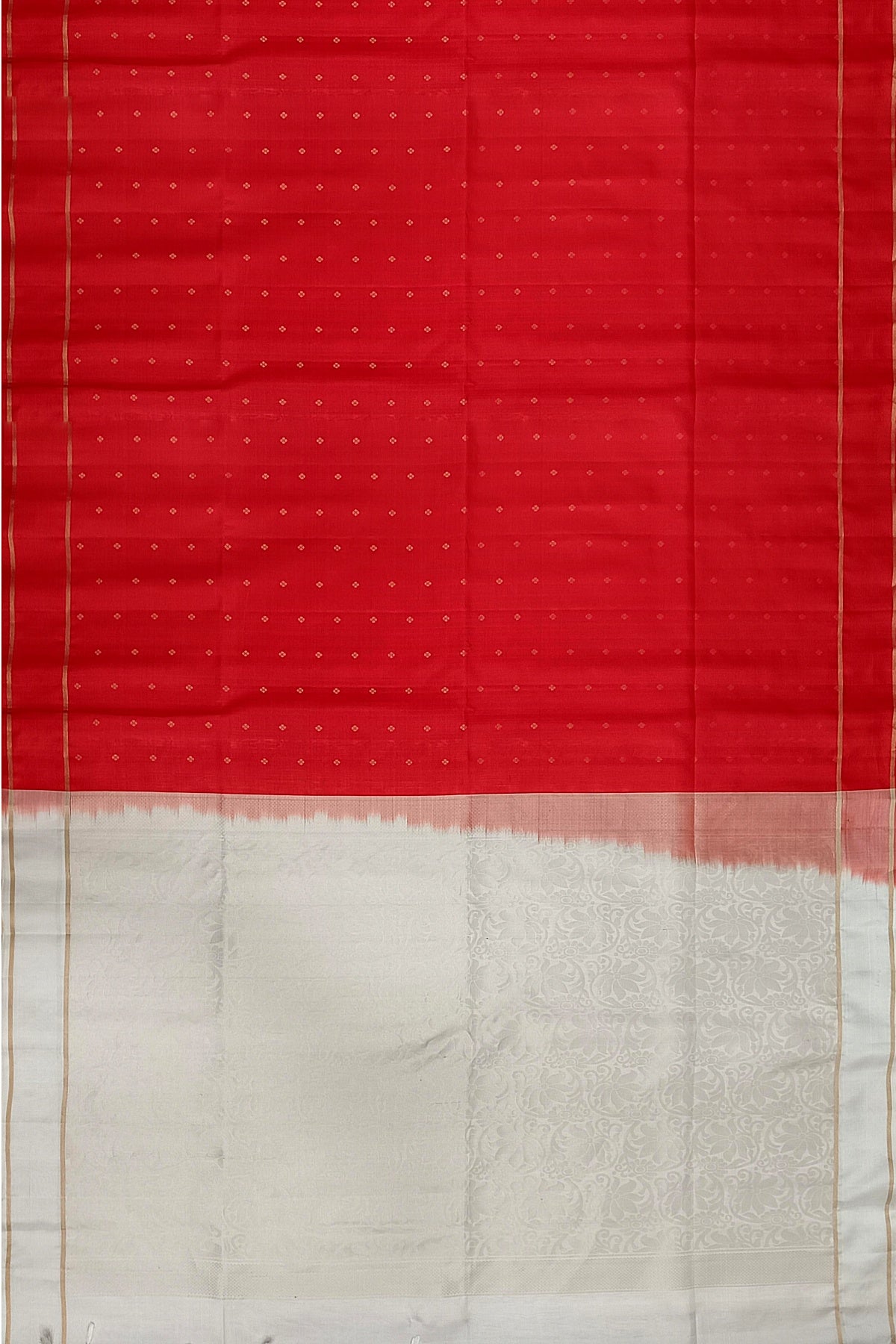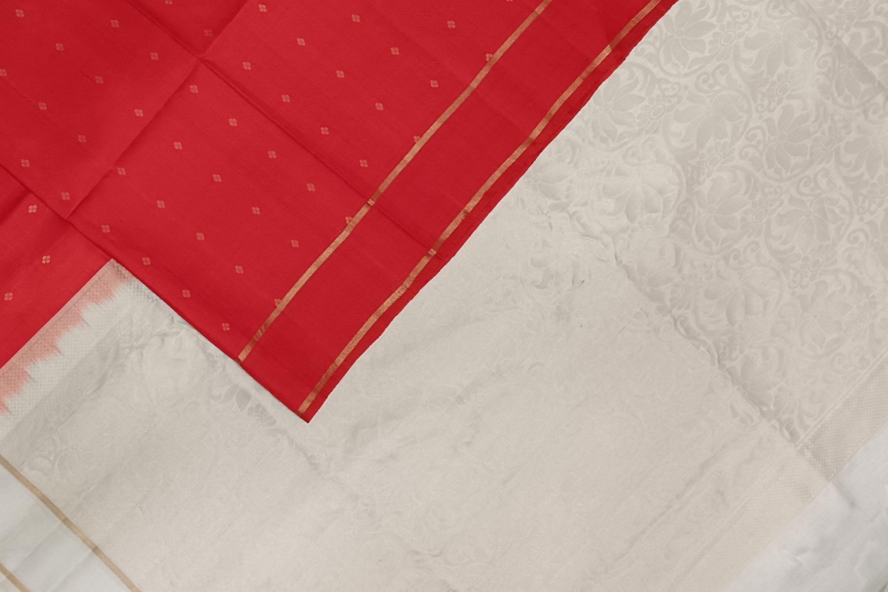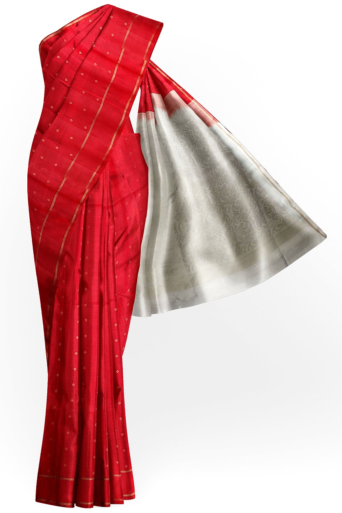 Description: Kanchi soft silk saree in red with small motifs on the body and a contrast pallu