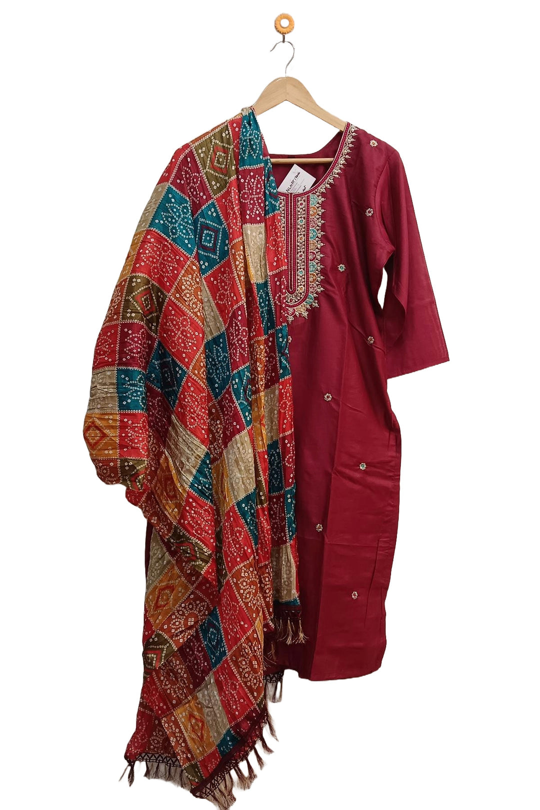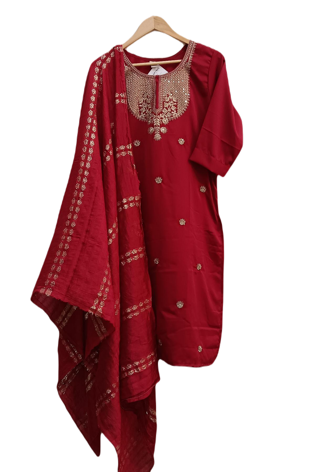 Muslin 3piece kurta set ( top, bottom & dupatta) in maroon