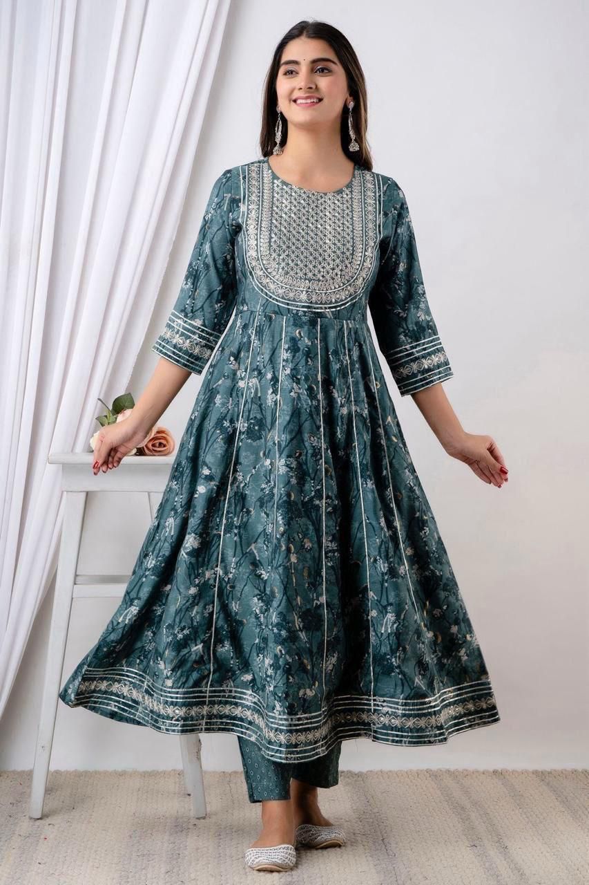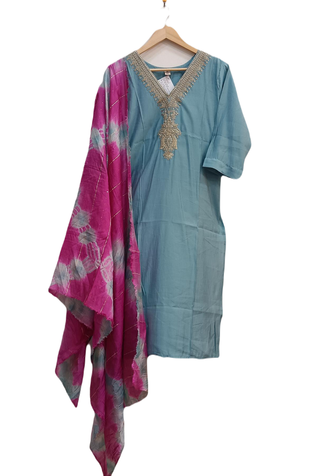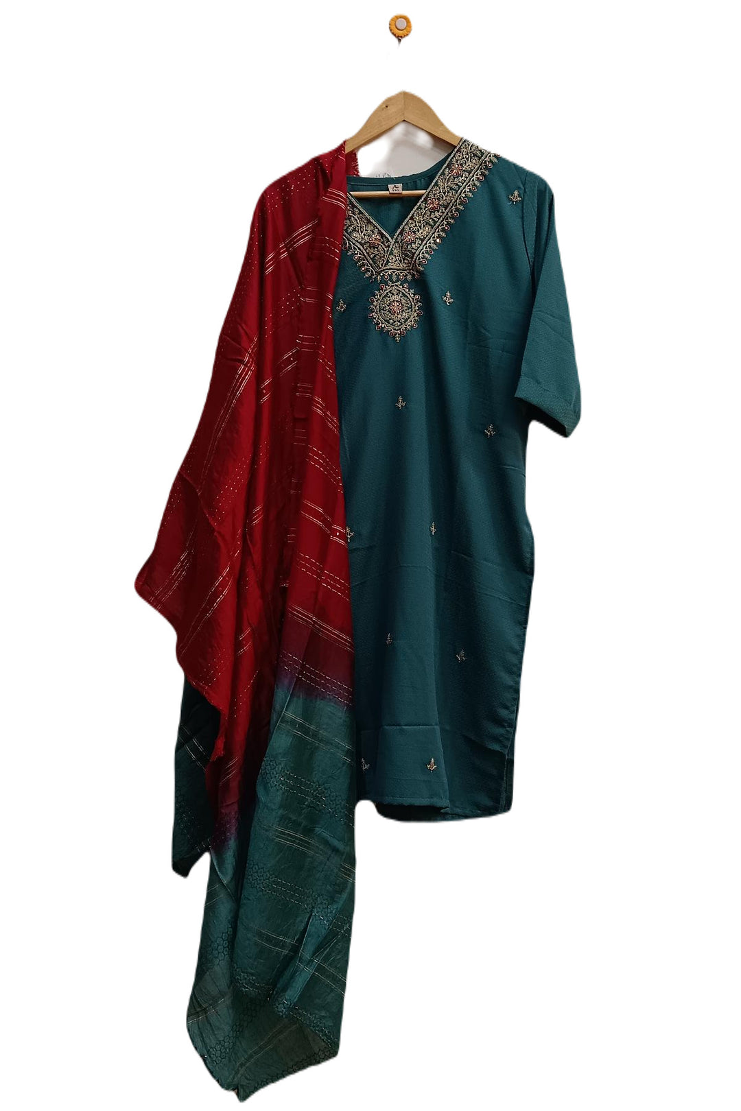 Muslin 3piece kurta set ( top, bottom & dupatta) in teal green