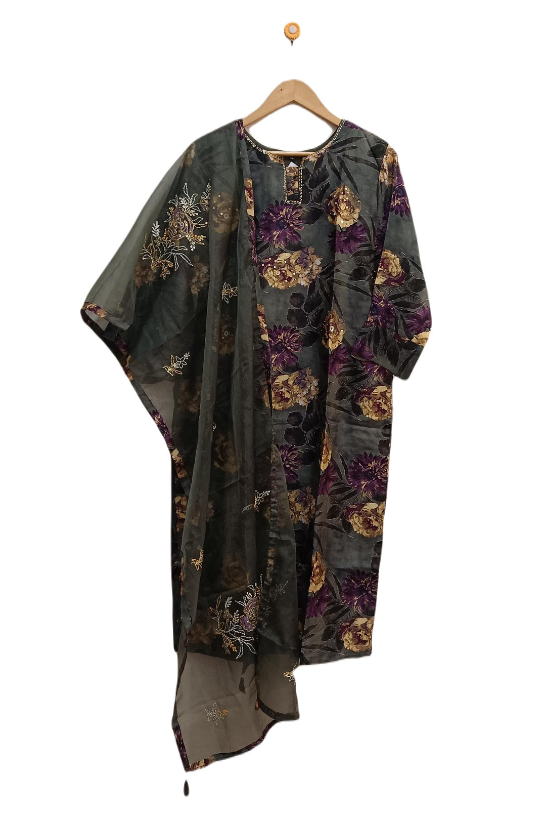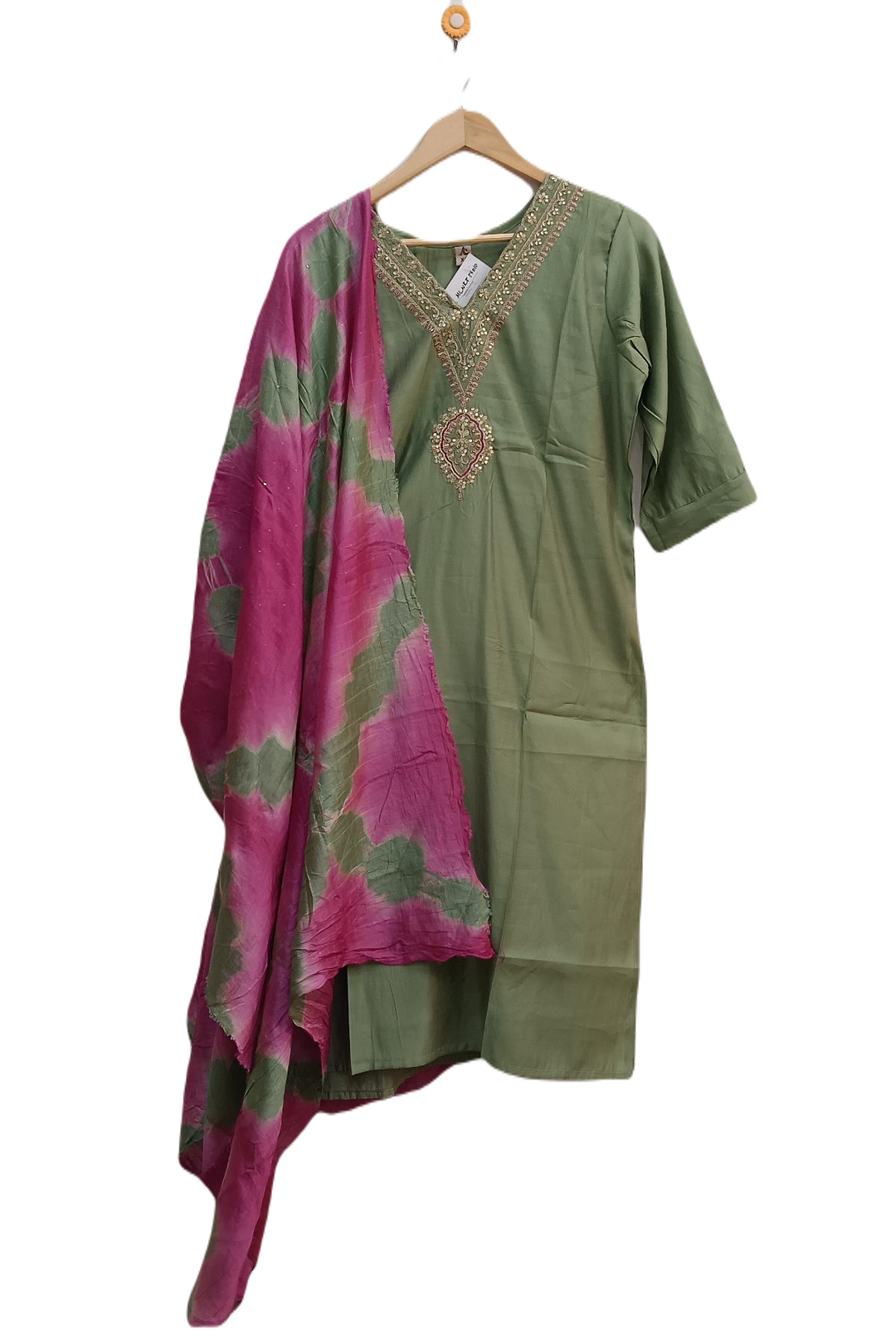 Muslin 3piece kurta set ( top, bottom & dupatta) in green