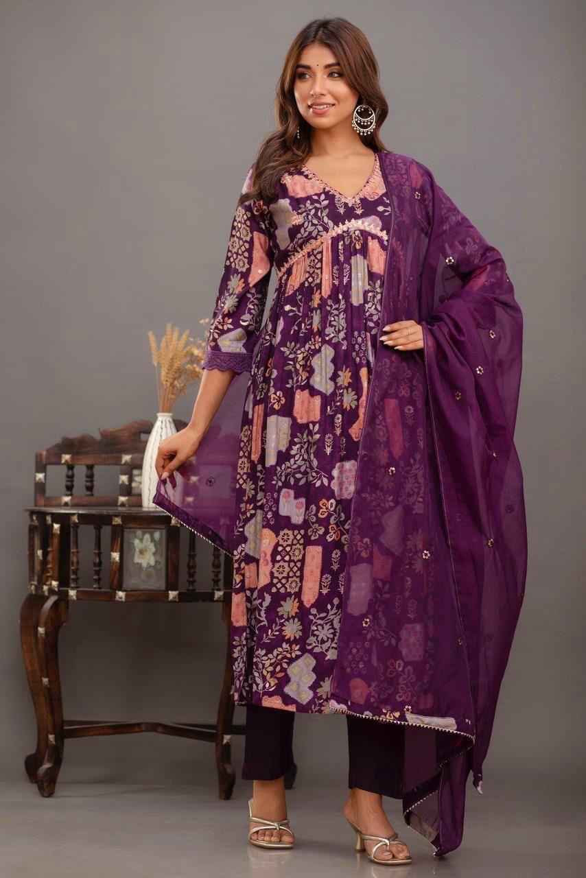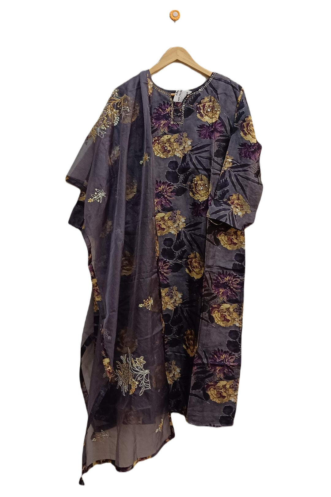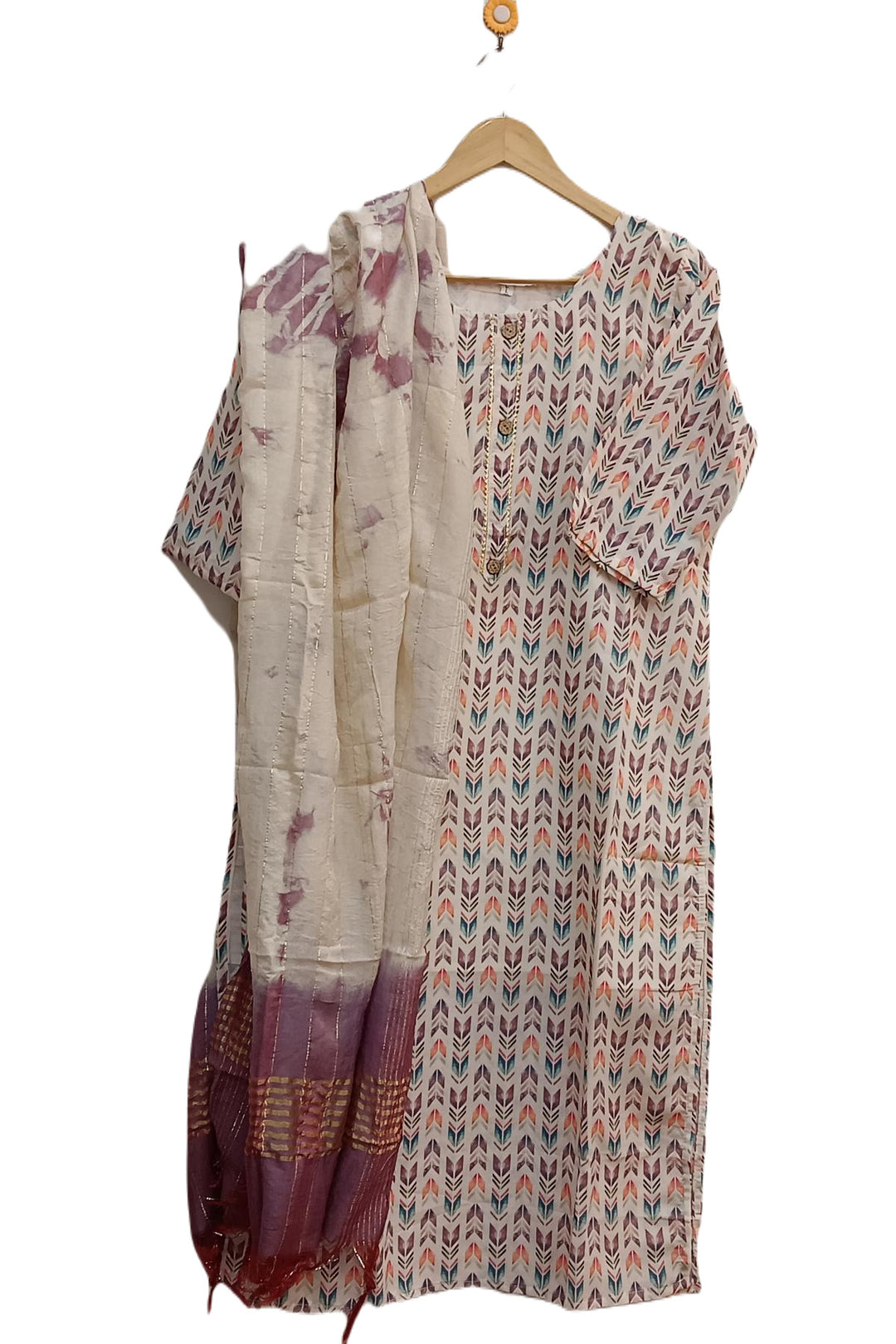 Muslin 3piece kurta set ( top, bottom & dupatta) in violet