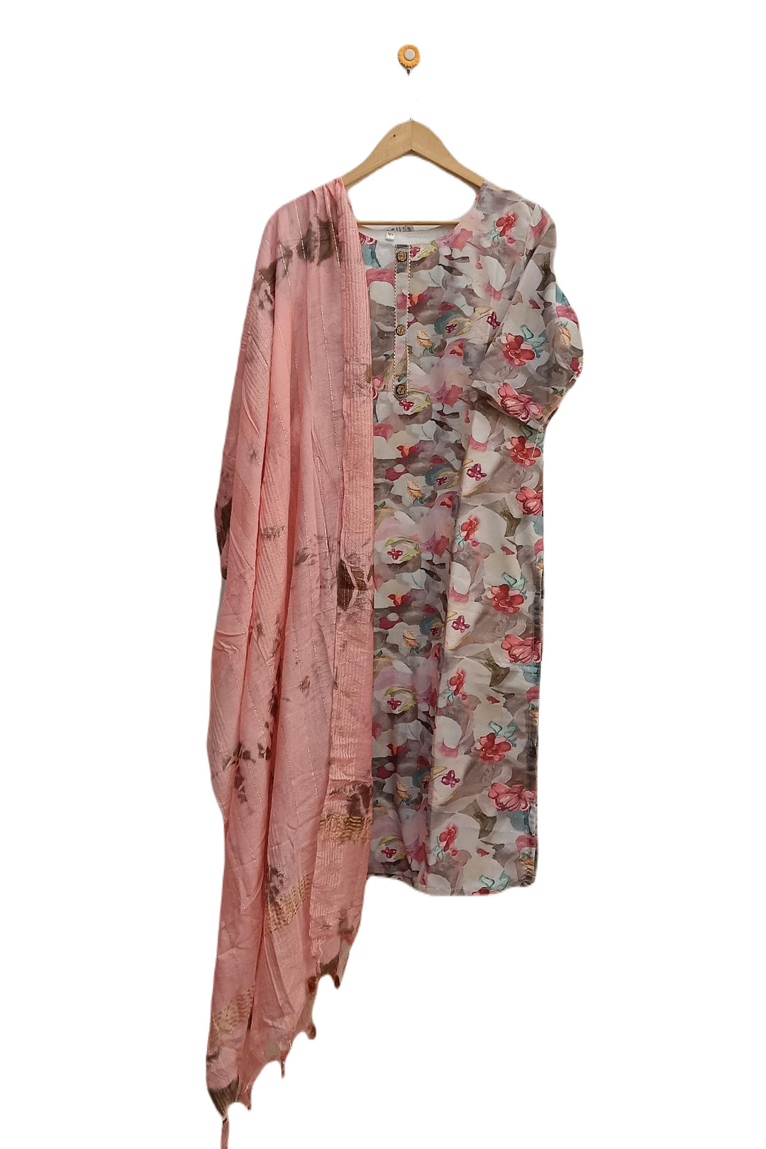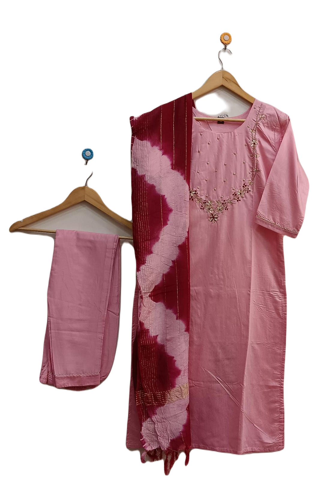 Muslin 3piece kurta set ( top, bottom & dupatta) in pink