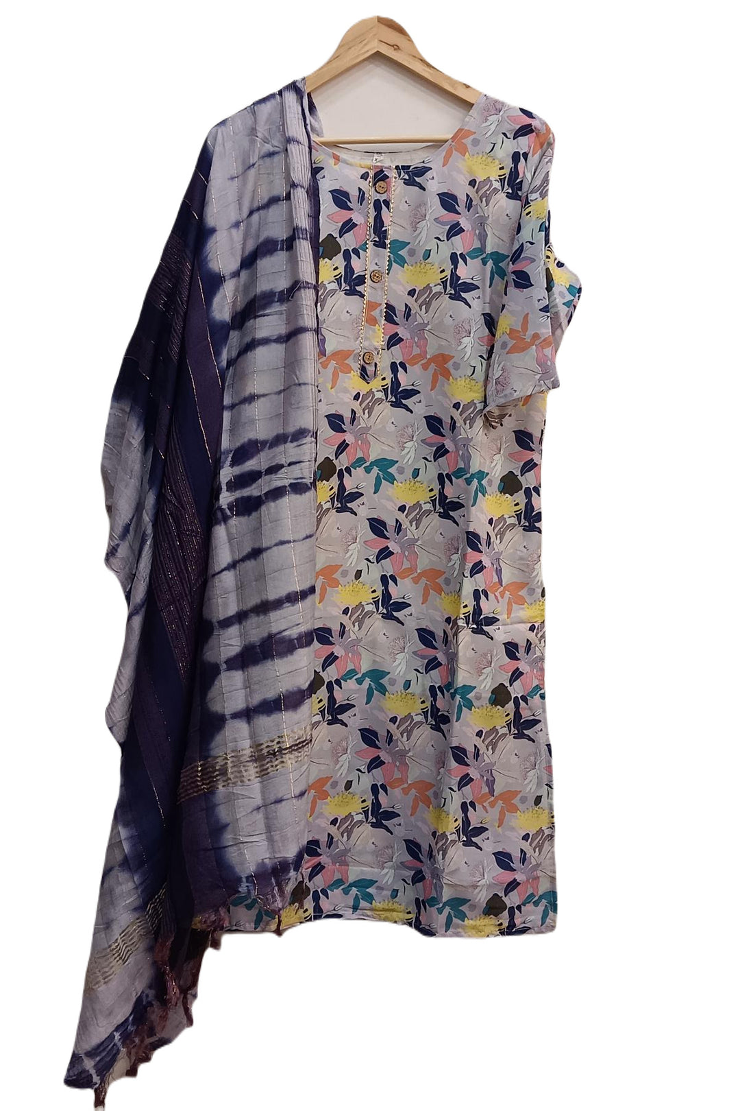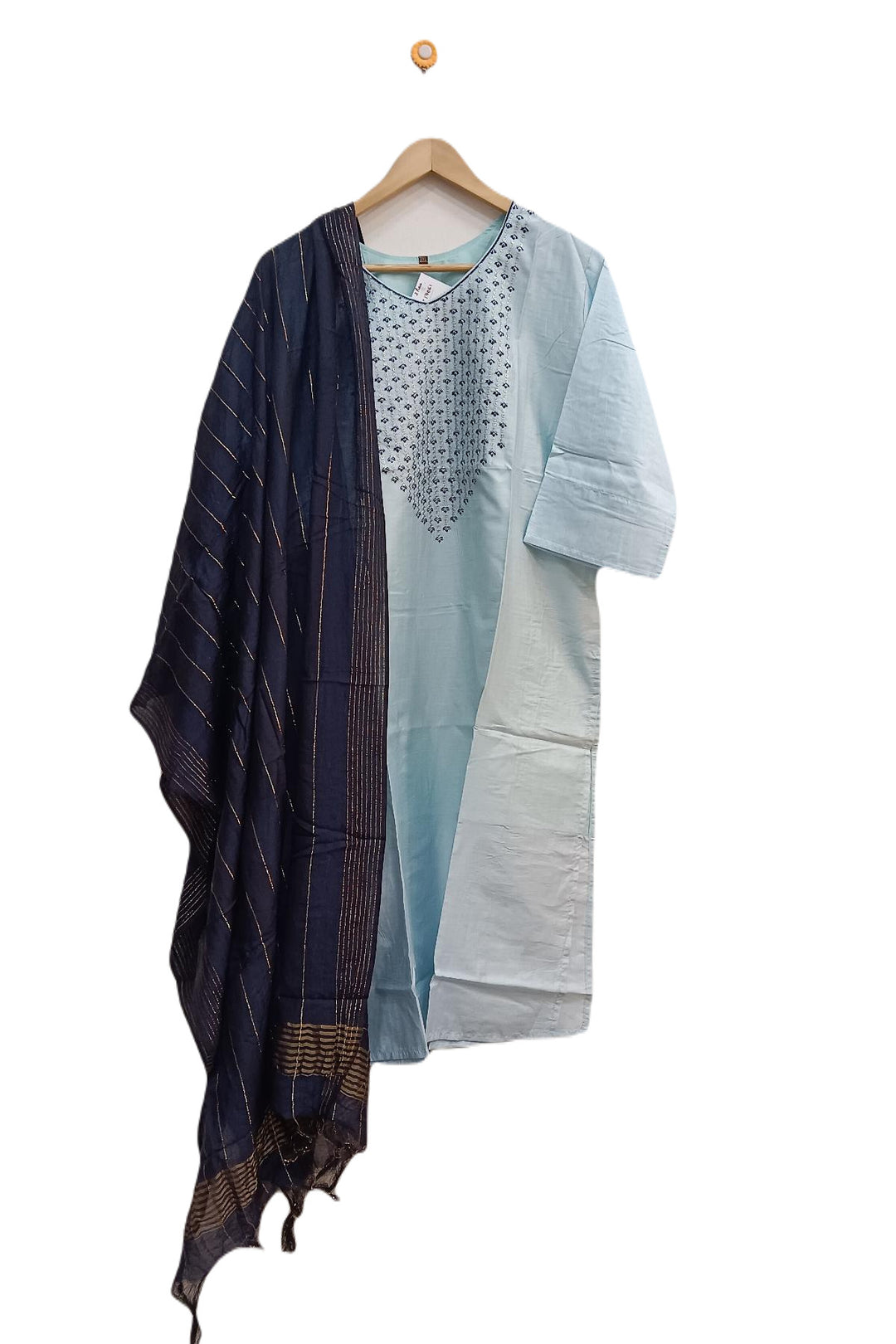 Muslin 2 piece kurta & dupatta set in bluish grey