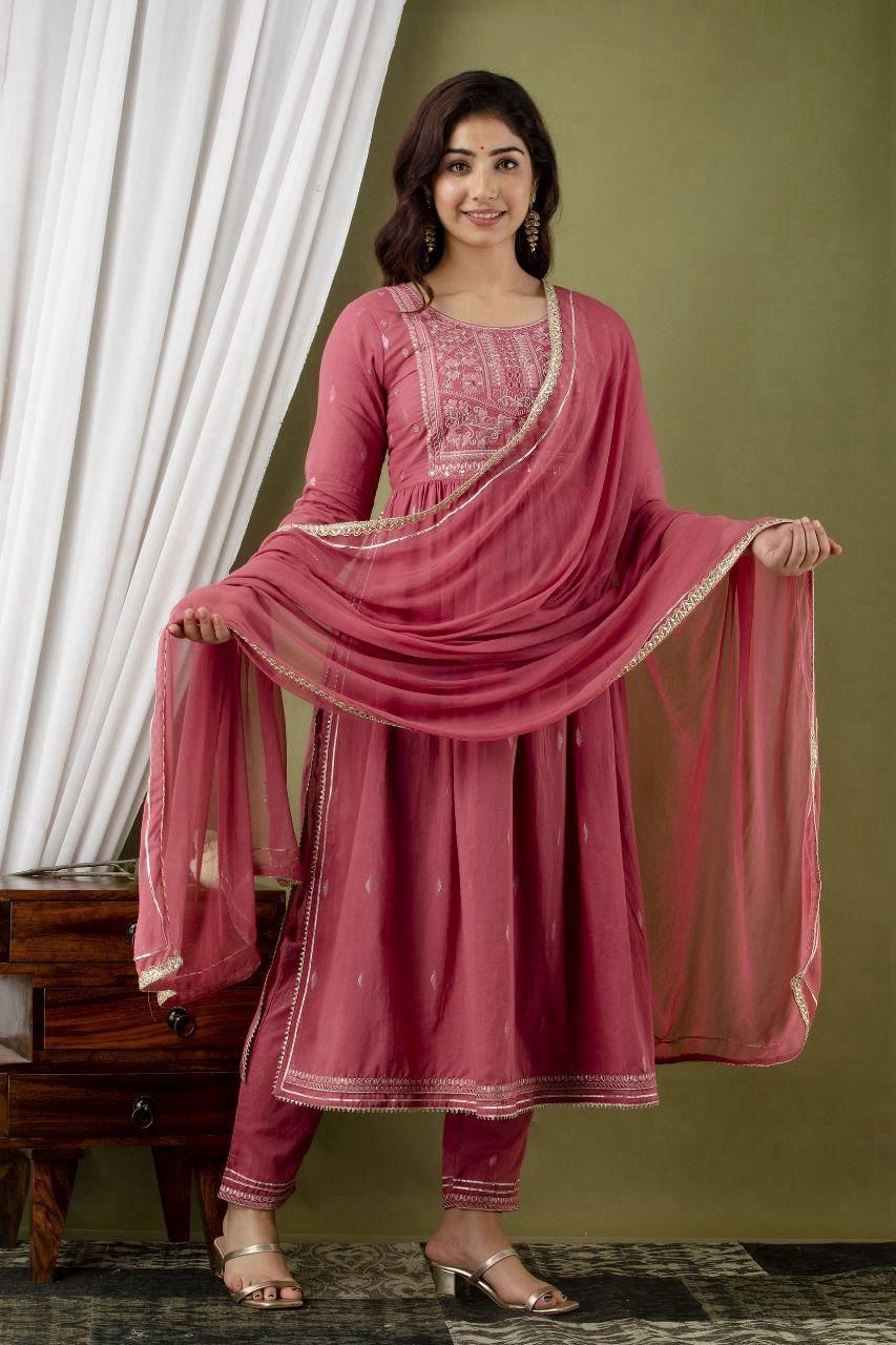 Chanderi 3piece kurta set ( top, bottom & dupatta) in light pink