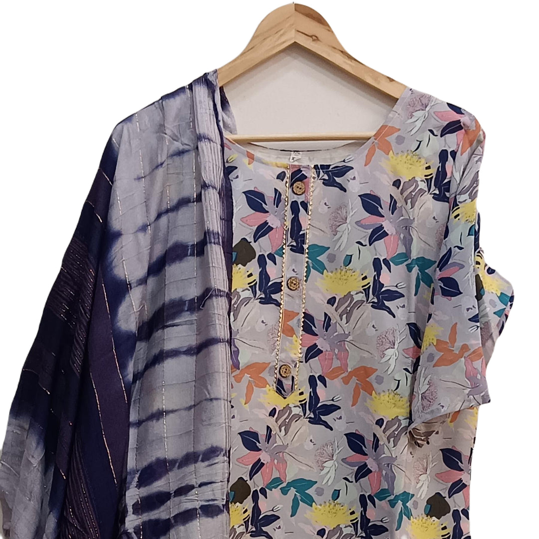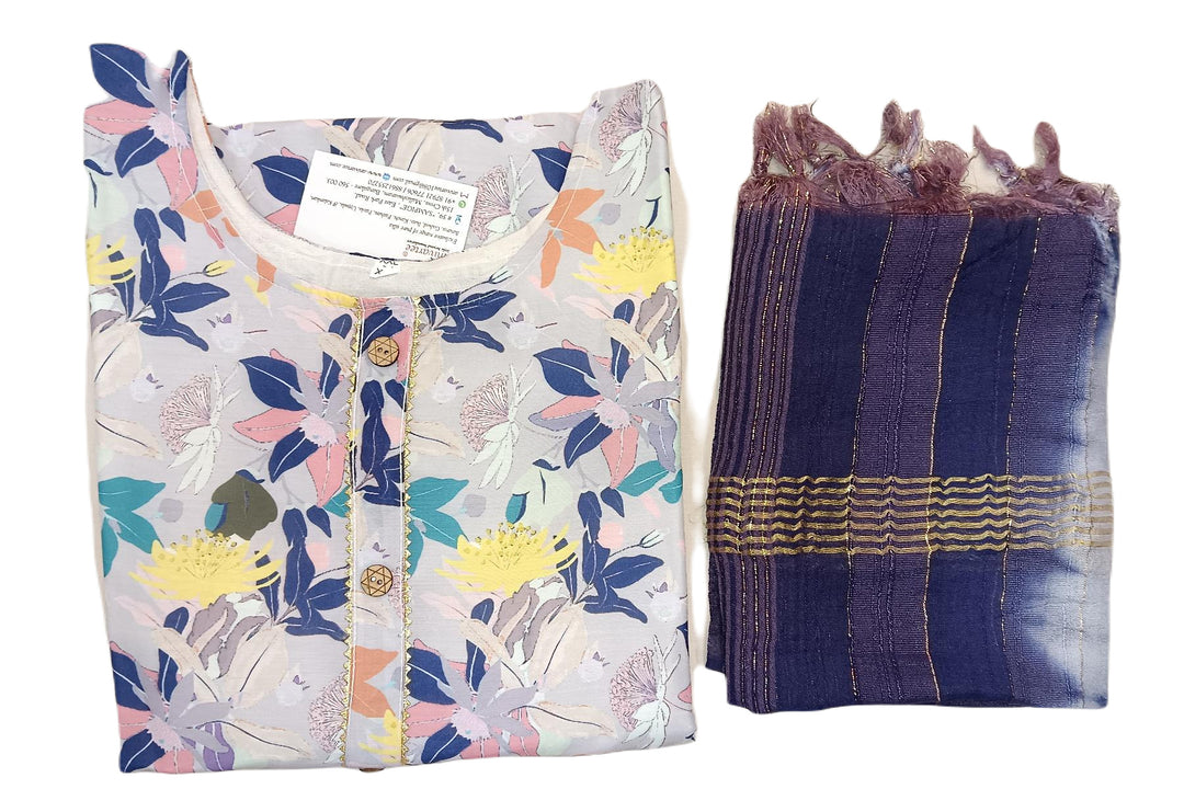 Muslin  2 piece  kurta & dupatta set in  bluish grey