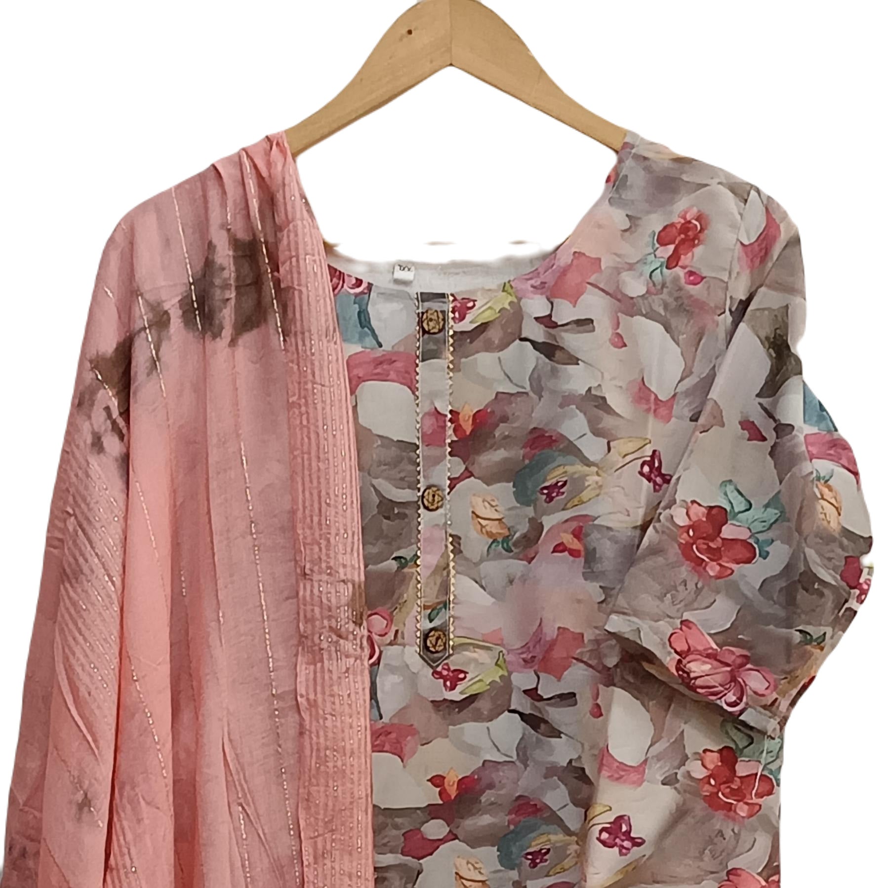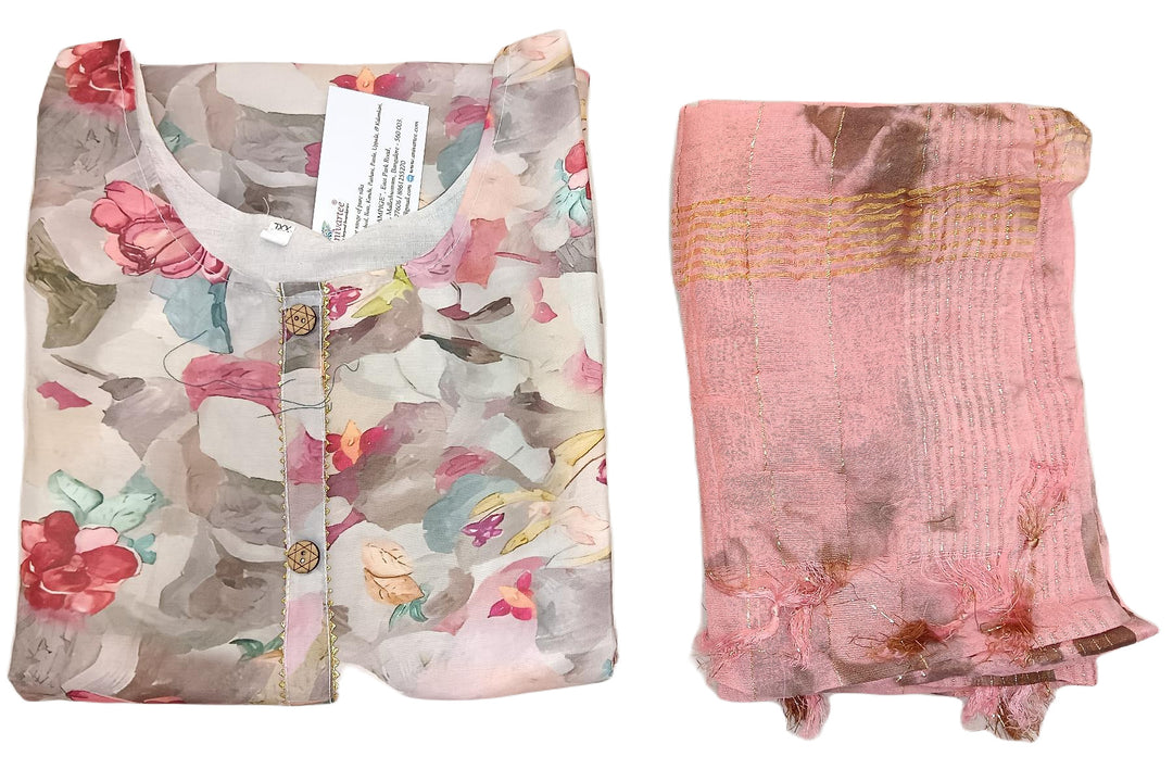 Description : Muslin 2 piece kurta & dupatta set in grey