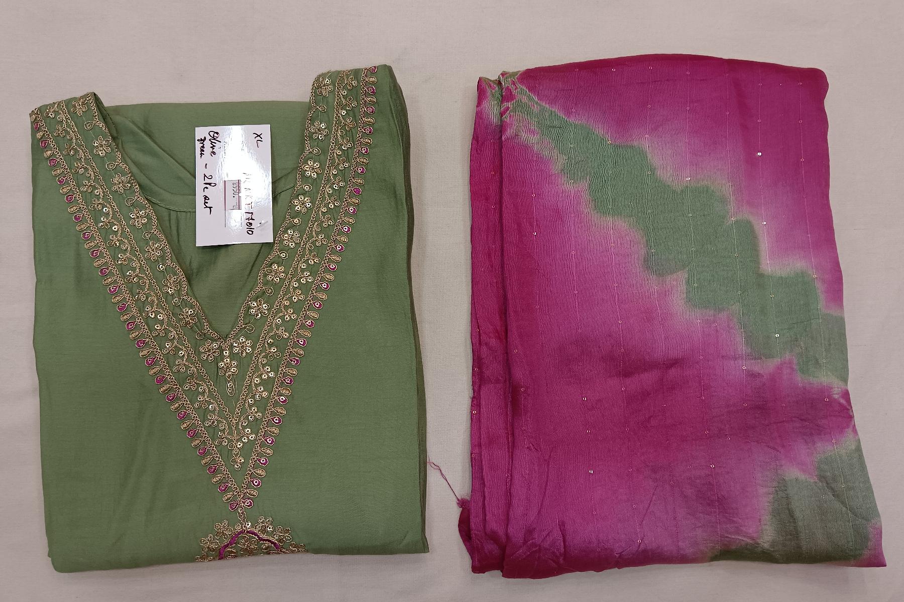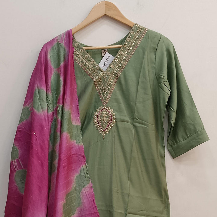 Description : Muslin 2 piece kurta & dupatta set in olive green