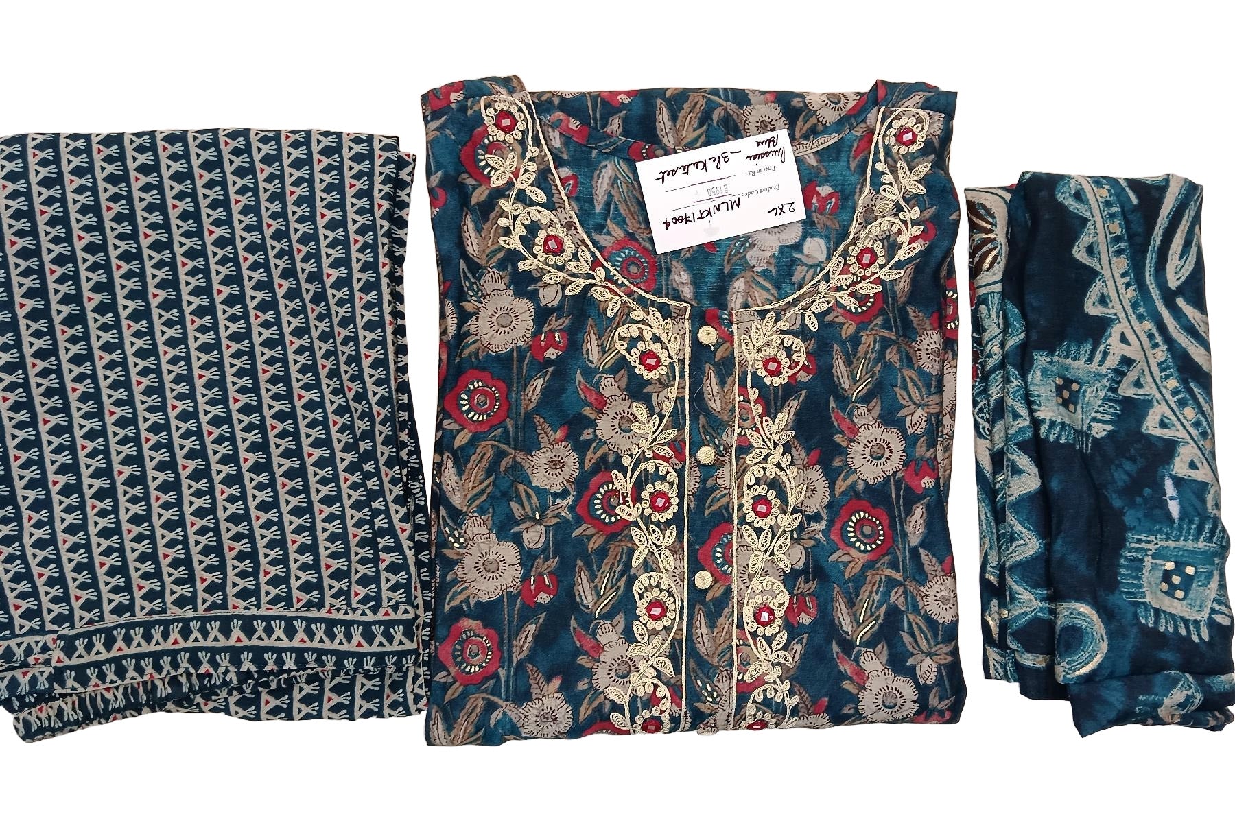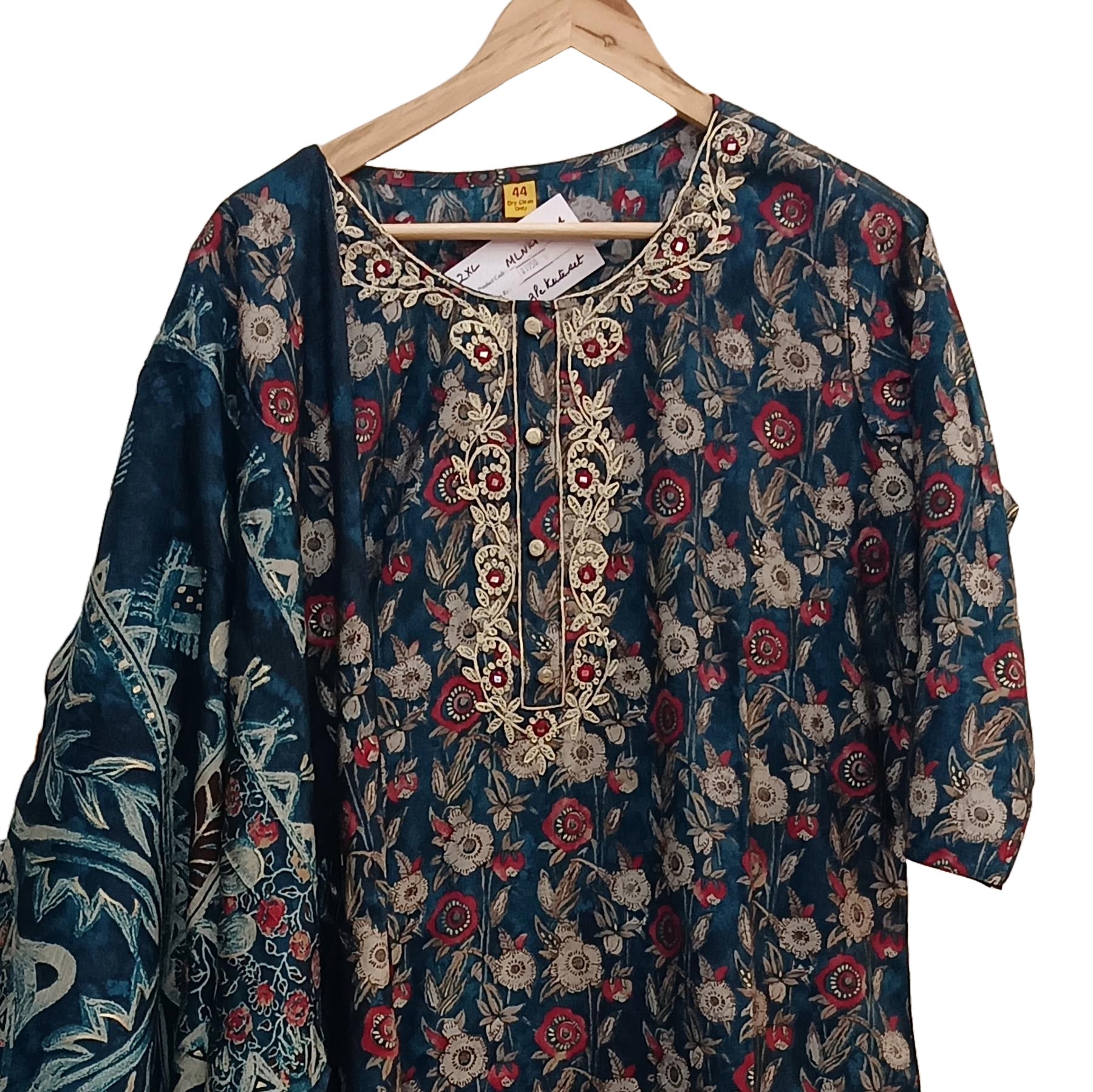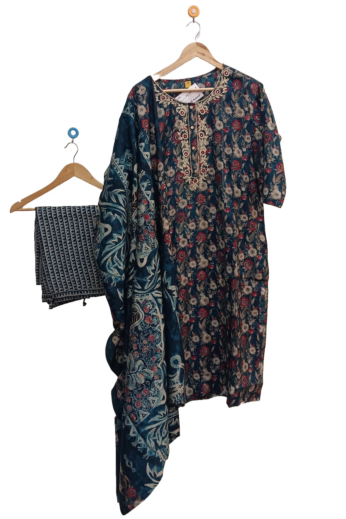 Muslin 3 piece kurta set (top , bottom & dupatta ) in prussian blue