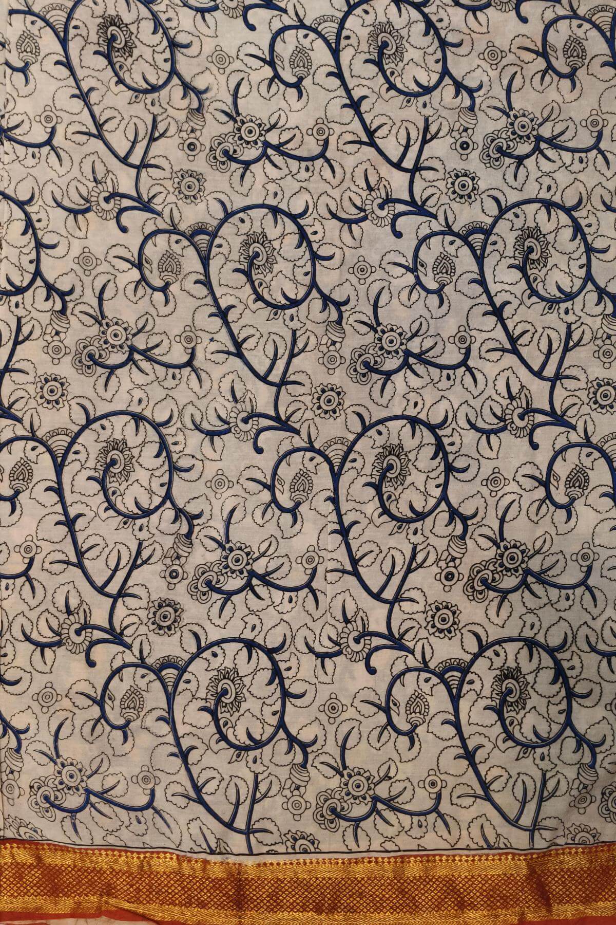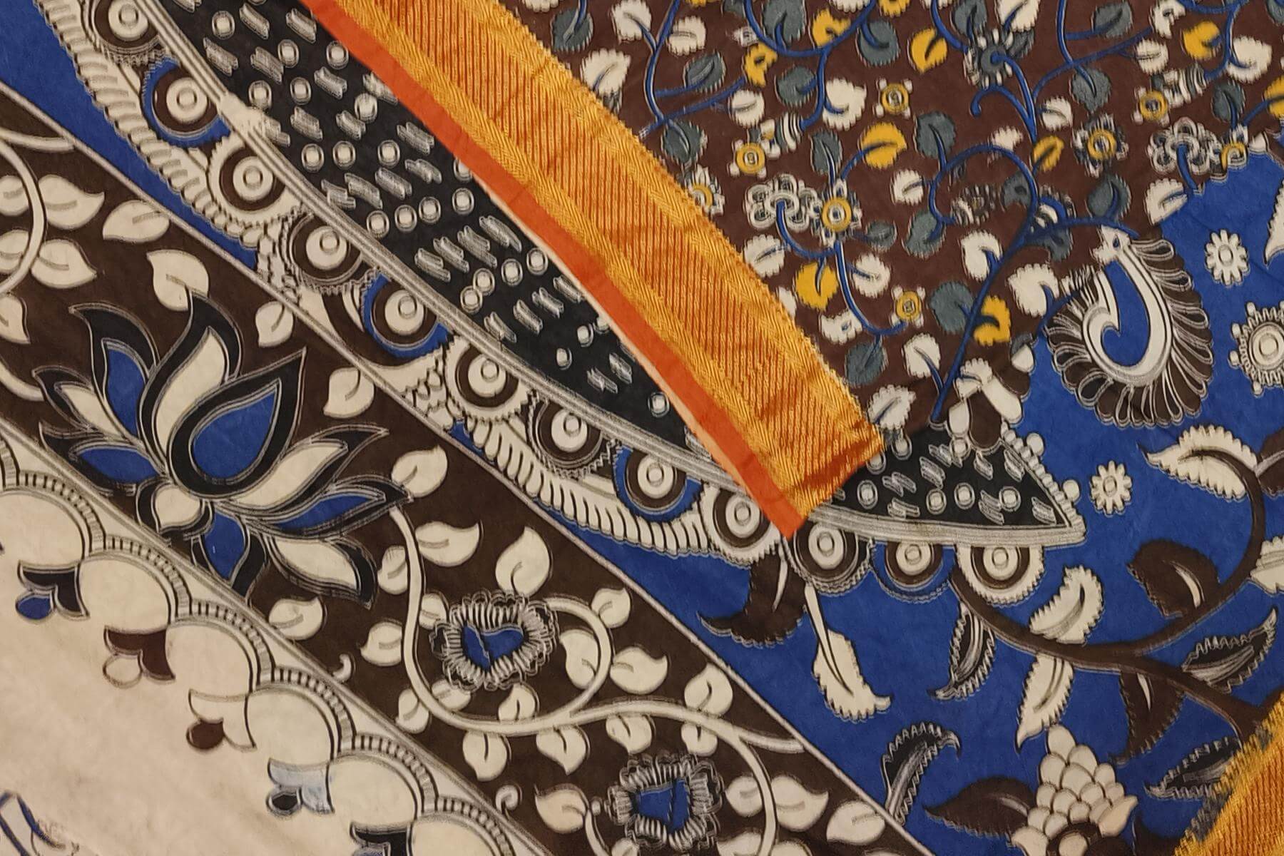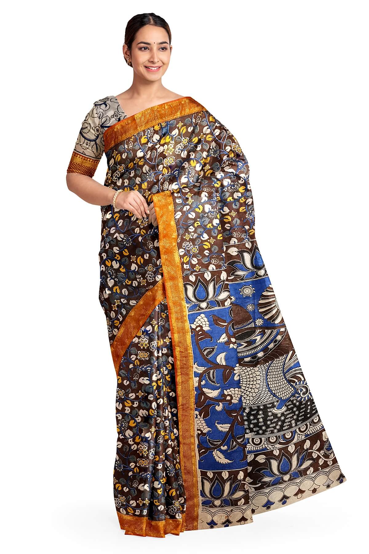 Mangalgiri silk cotton saree in brown in kalamkari print