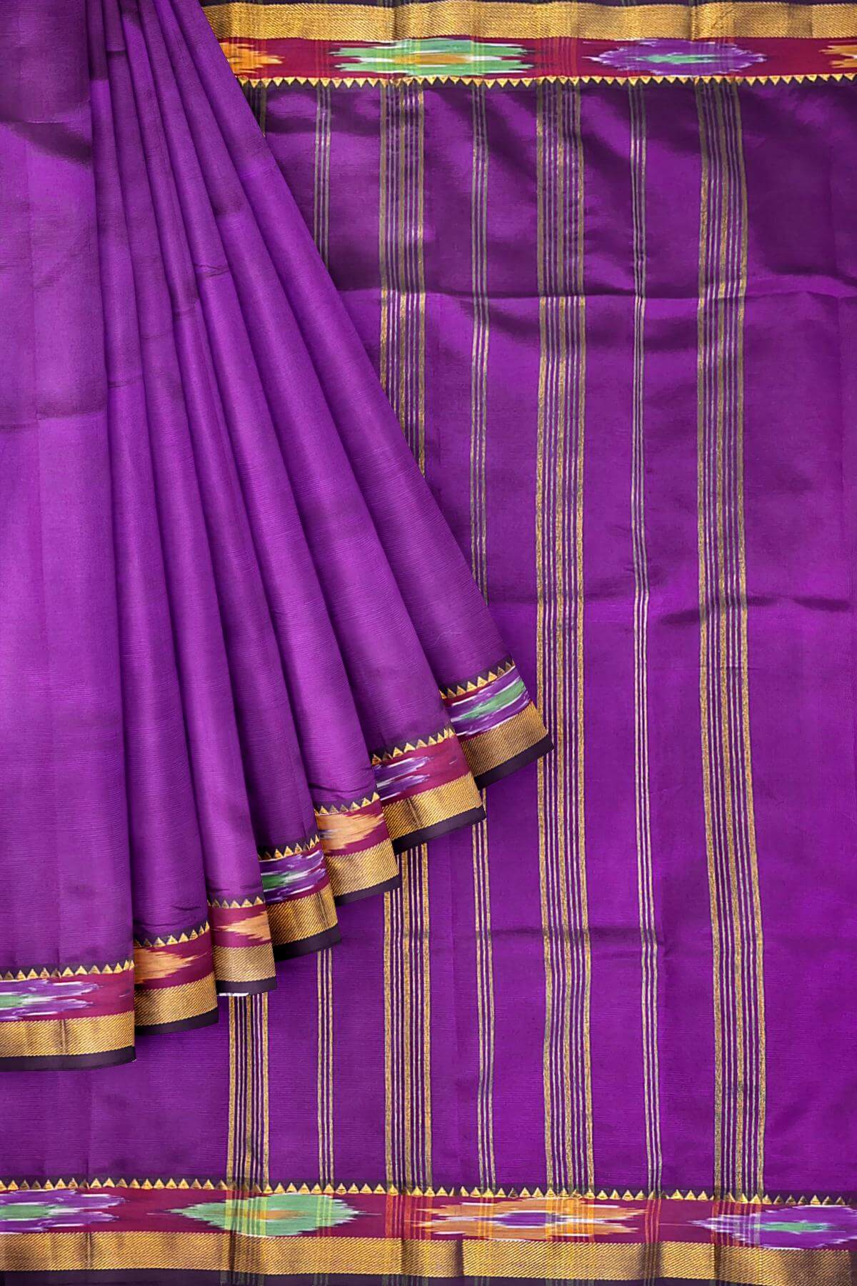 Description: Mangalgiri silk cotton saree in violet with Pochampally border