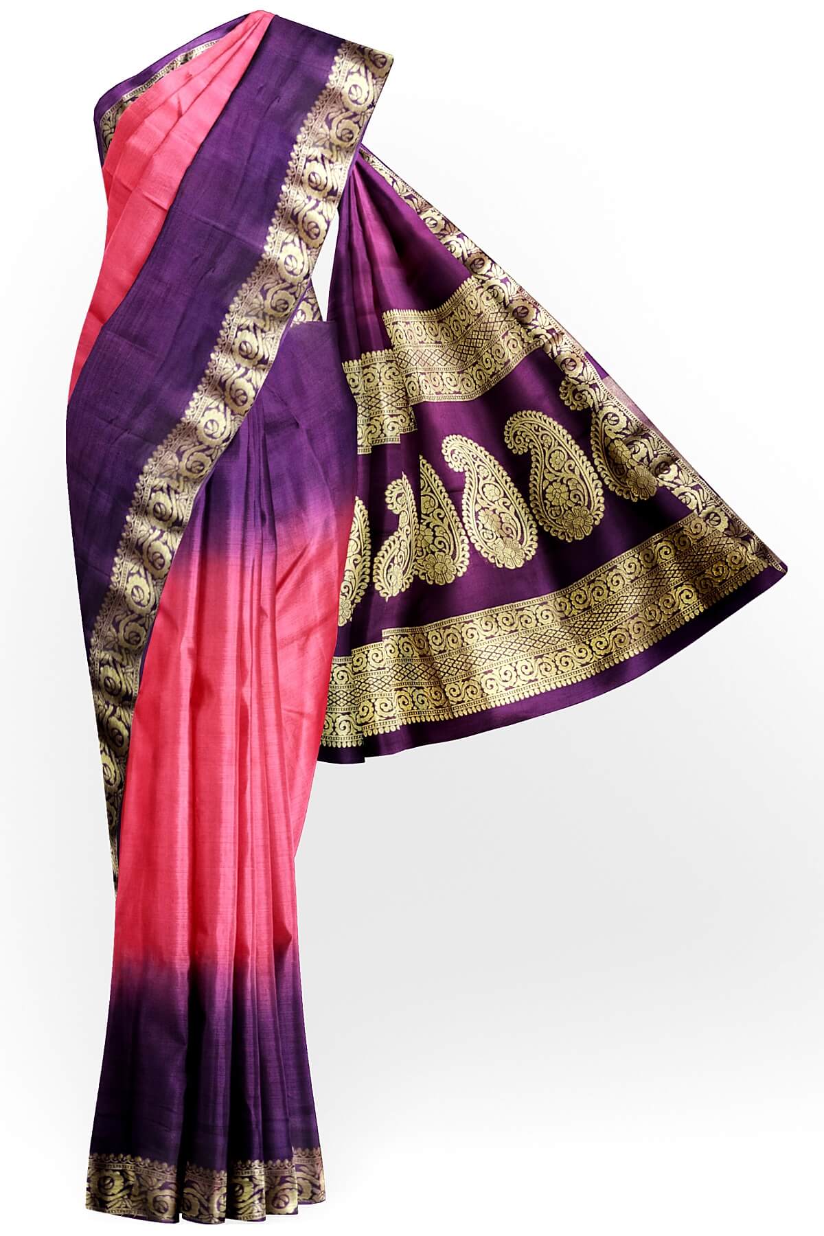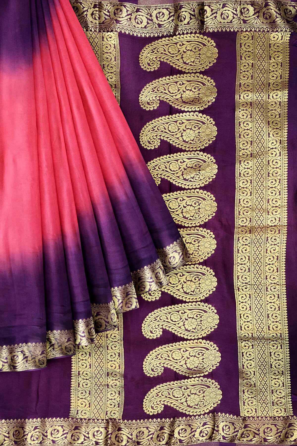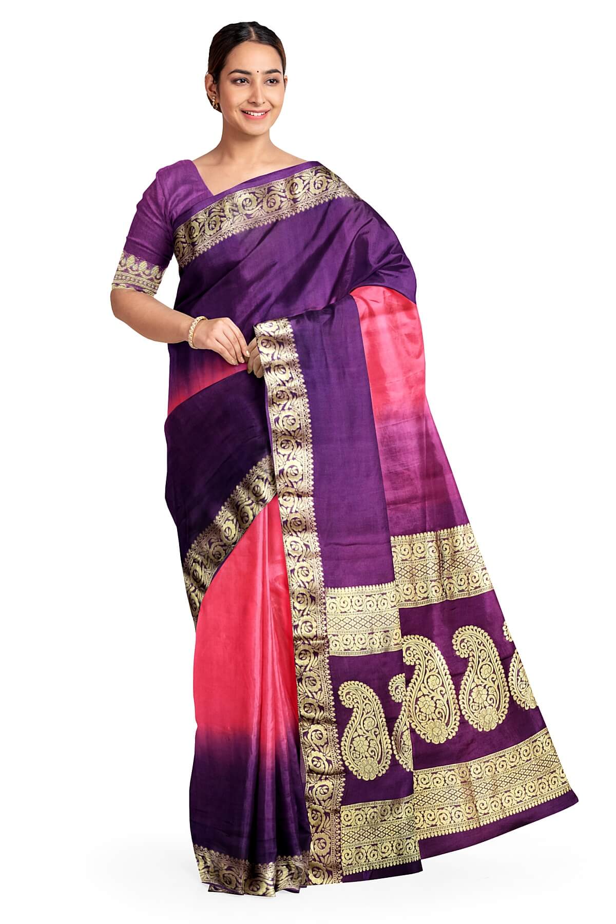 Description : Modal silk saree in shaded peacock blue with zari pallu & borders.