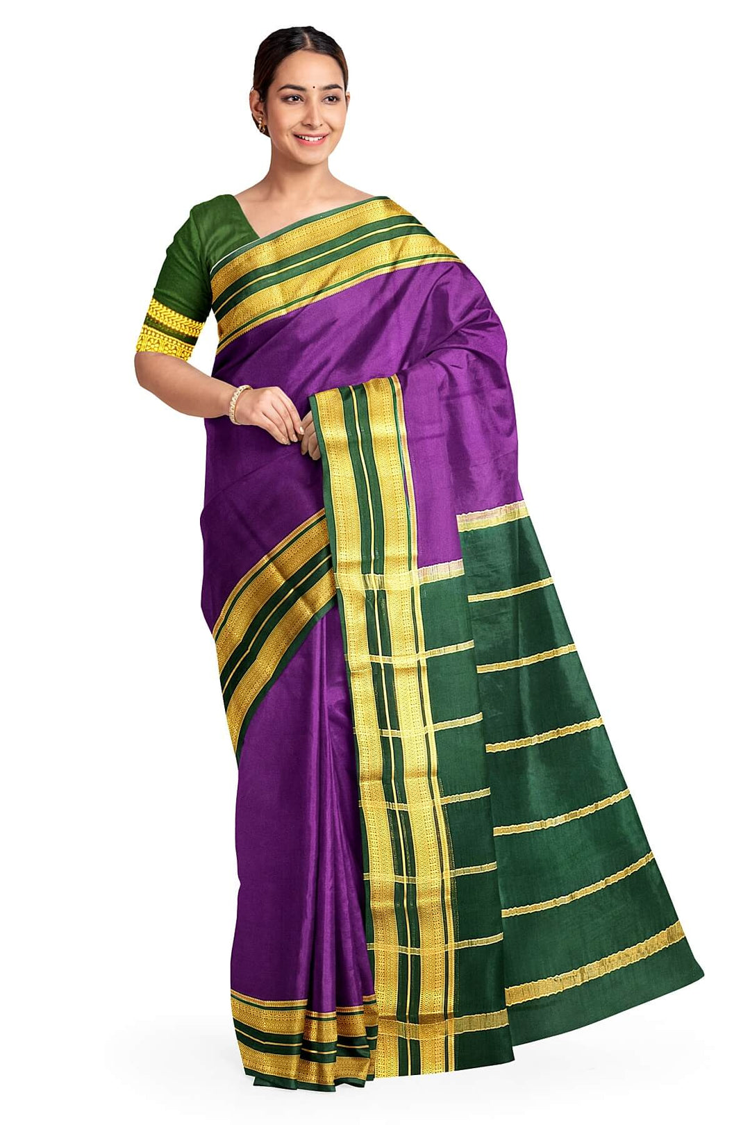 Mysore crepe pure silk saree in violet with a contrast pallu