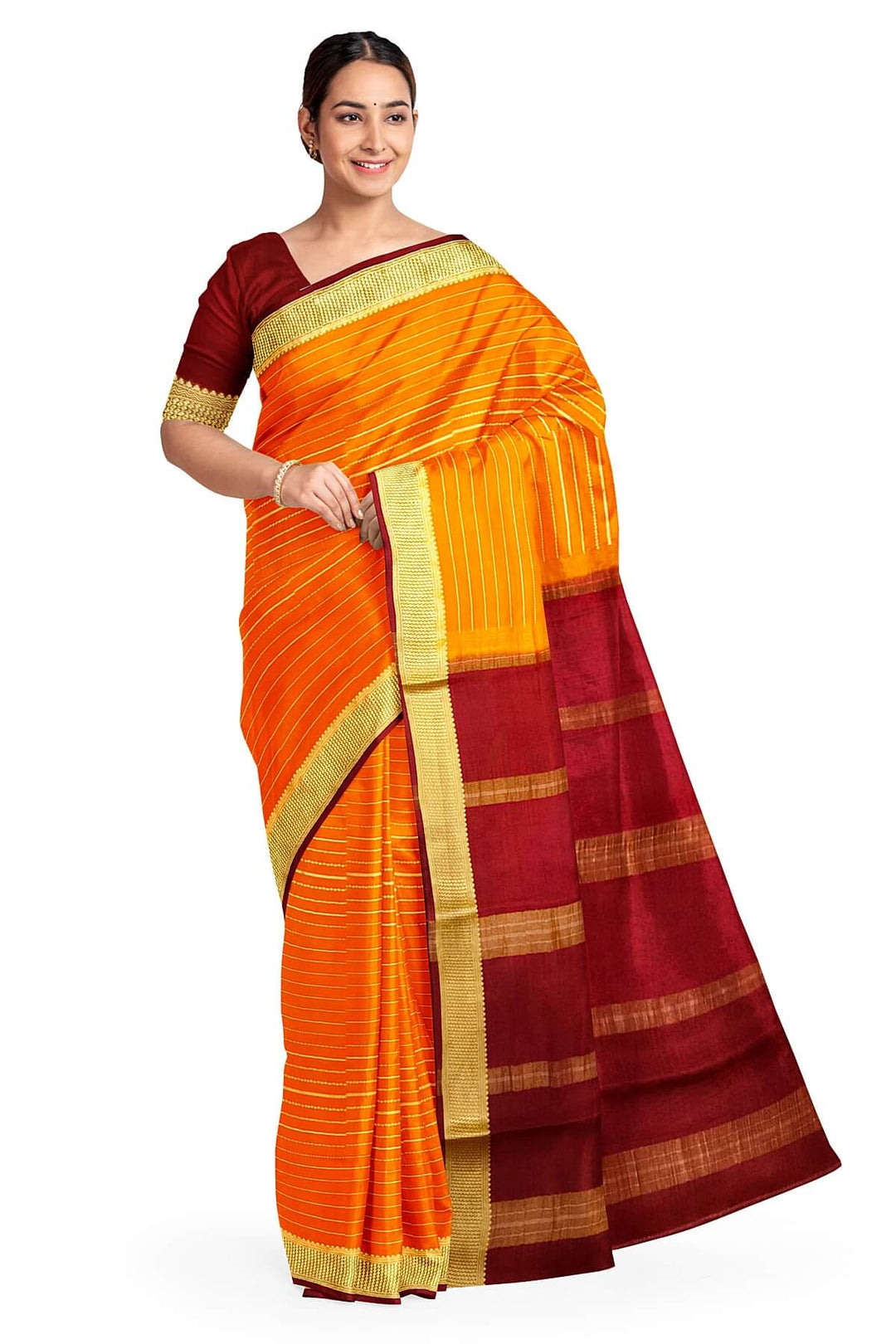 Mysore crepe pure silk saree in wine with a contrast pallu