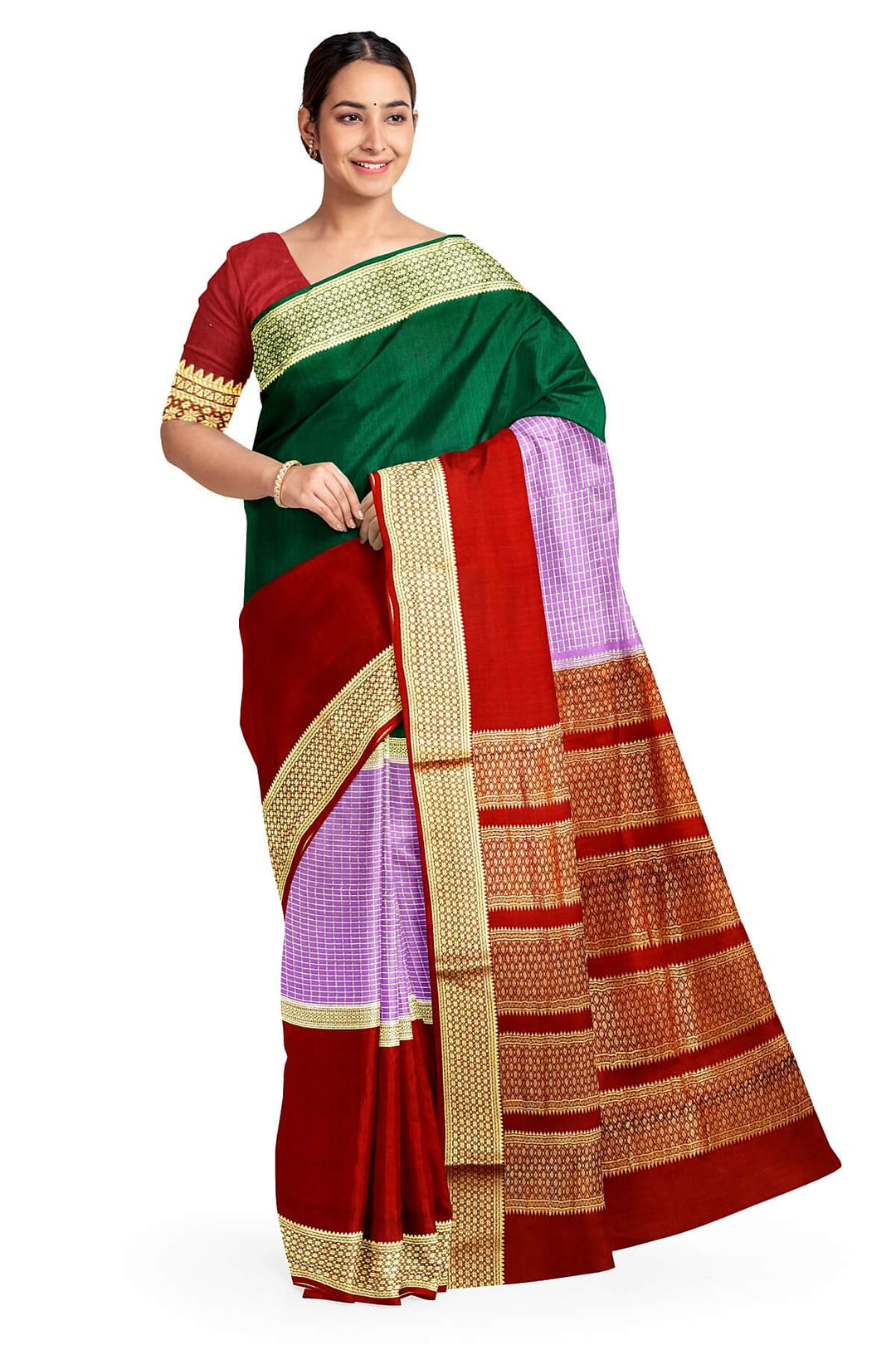 Mysore crepe pure silk saree in 3D ( green, lavender & maroon)