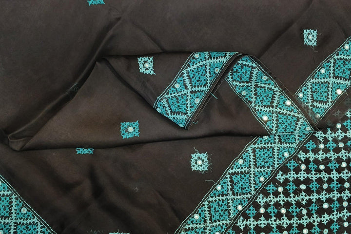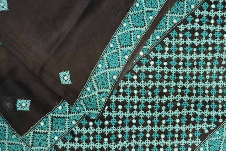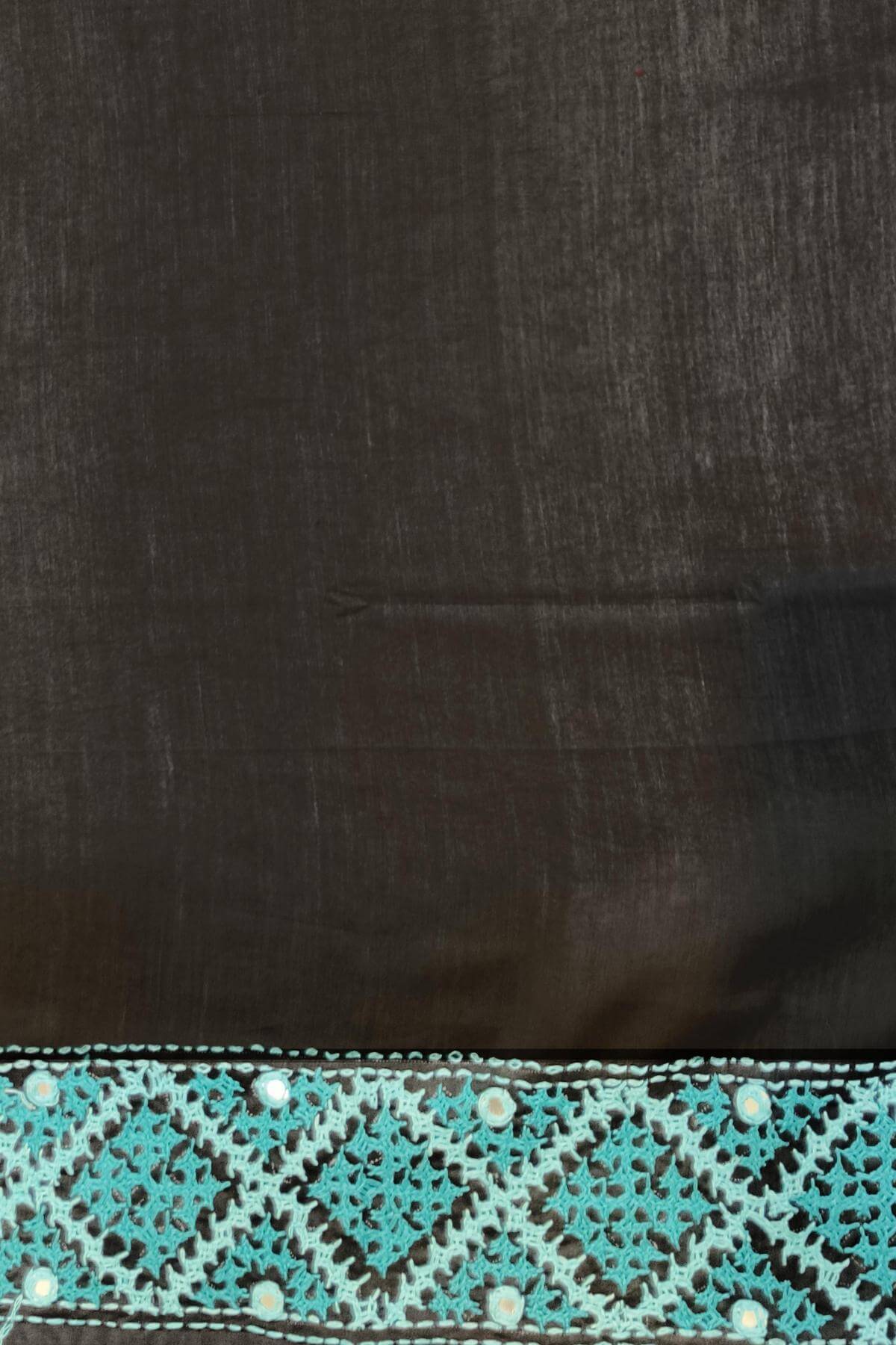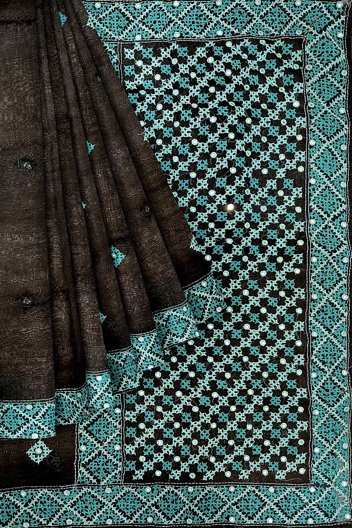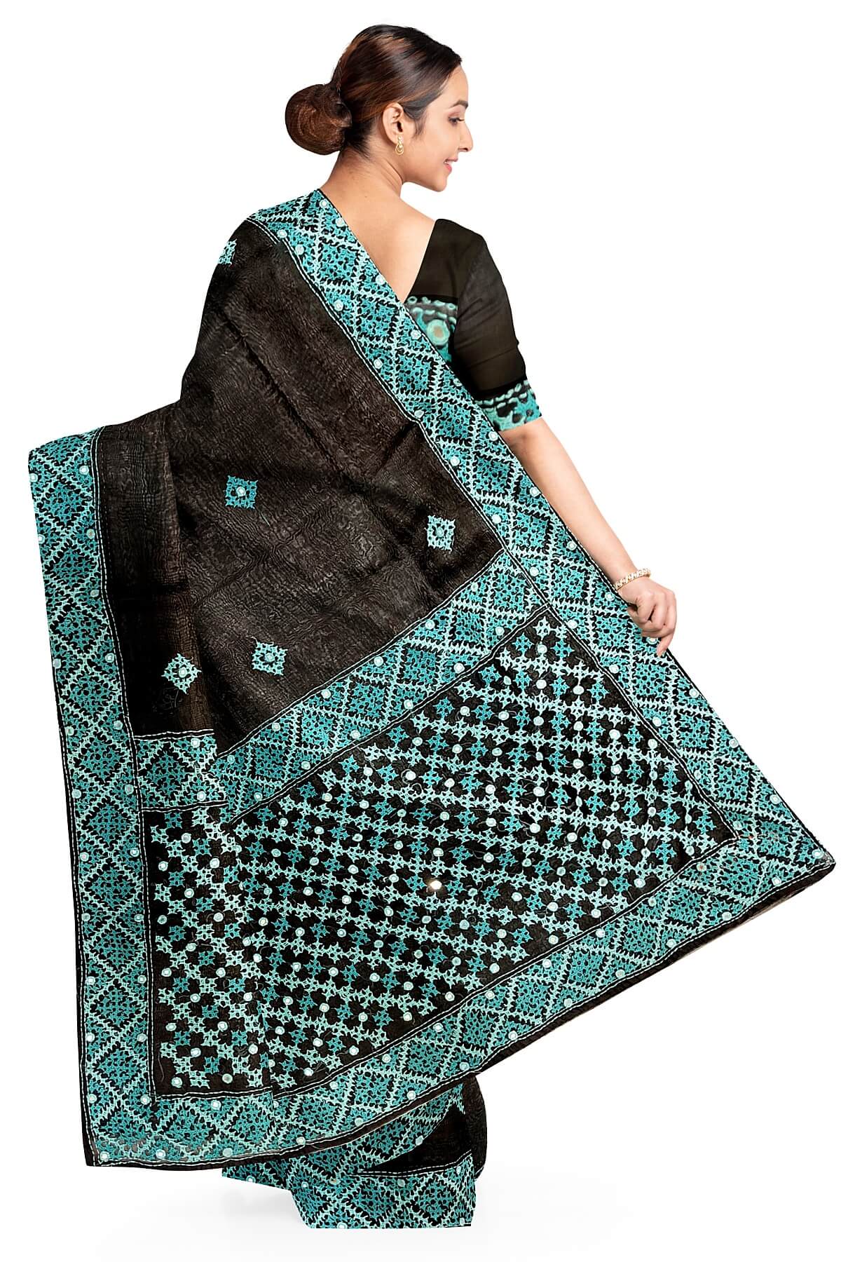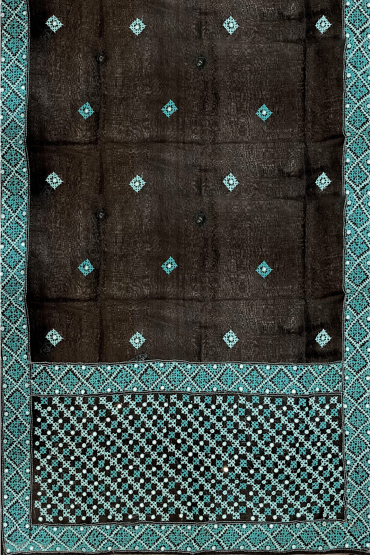 Description : Beautiful silk organza saree in black with kutch work pallu, border & blouse