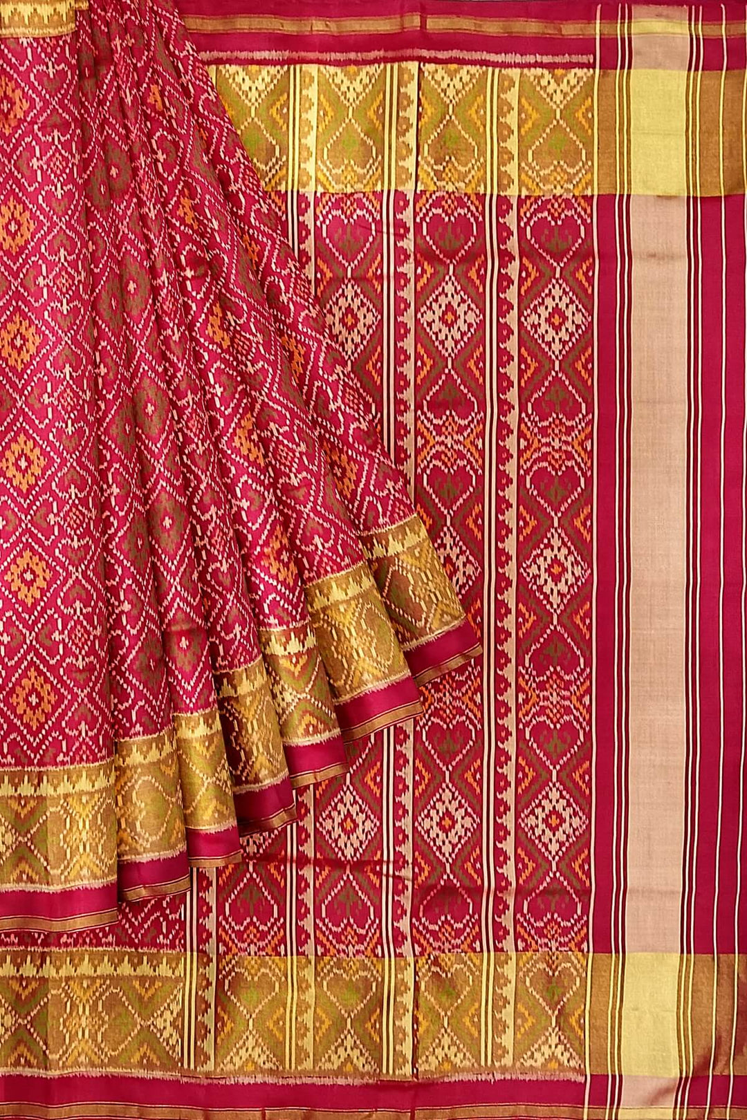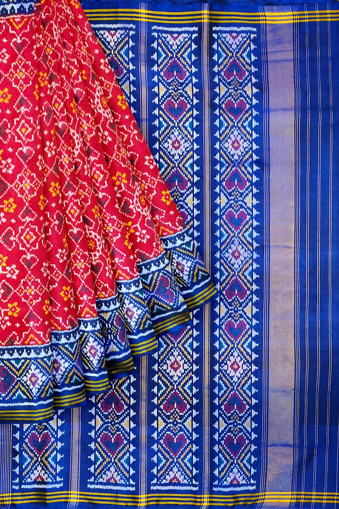 Handwoven Patola pure silk saree in red in pan bhat pattern.