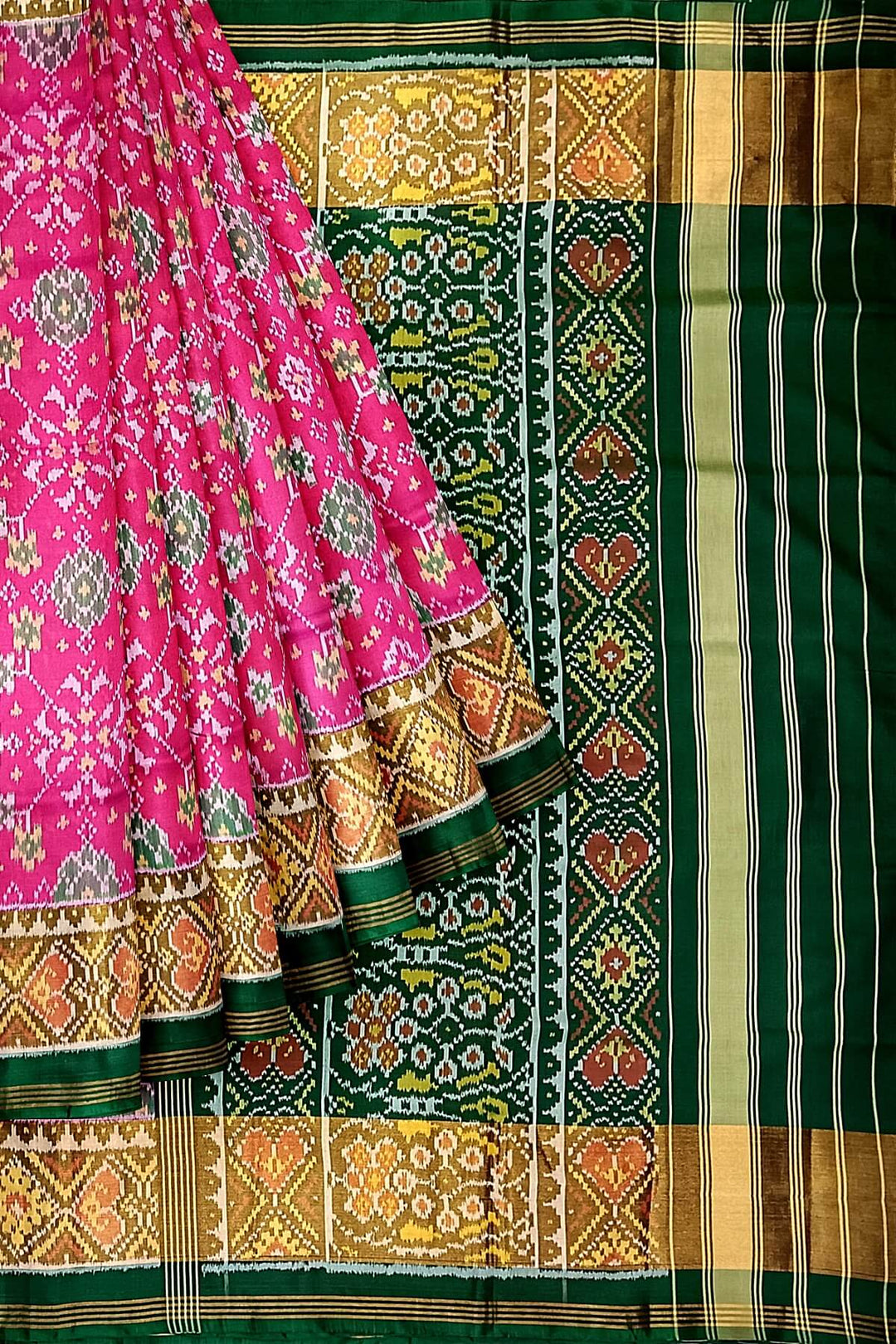 Handwoven Patola pure silk saree in pink in navratan pattern