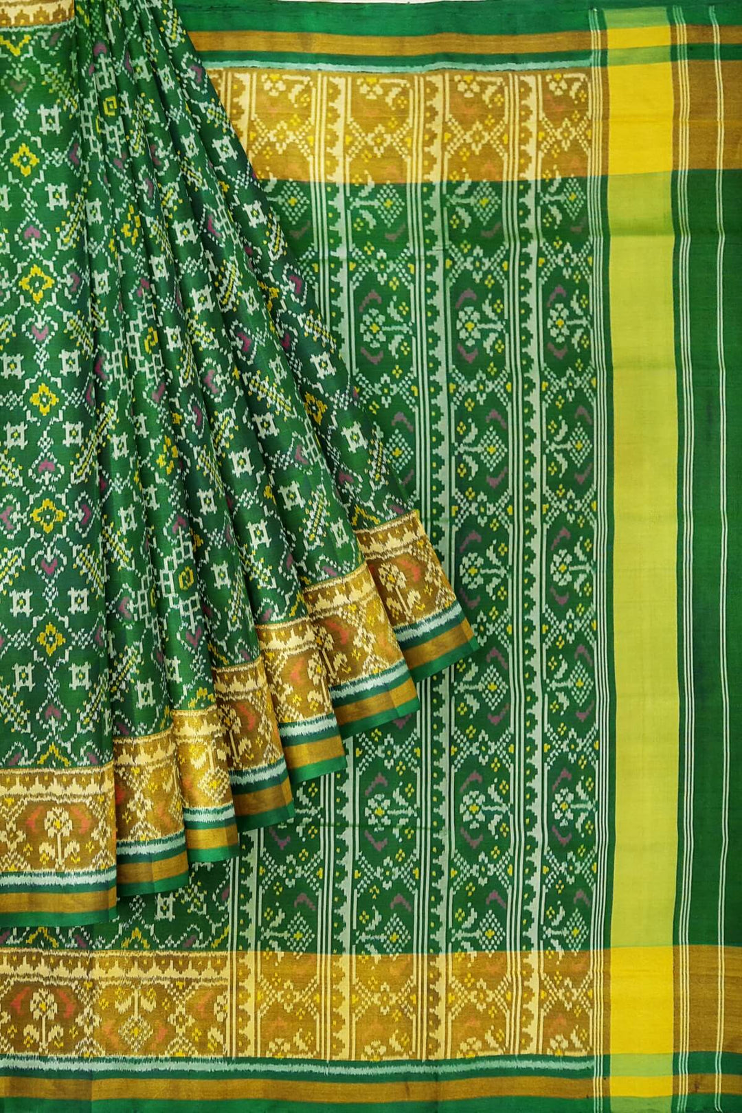 Handwoven Patola pure silk saree in green in pan bhat pattern