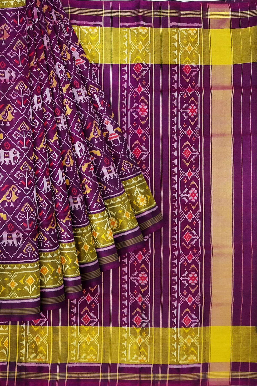 Handwoven Patola pure silk saree in purple in narikunj pattern