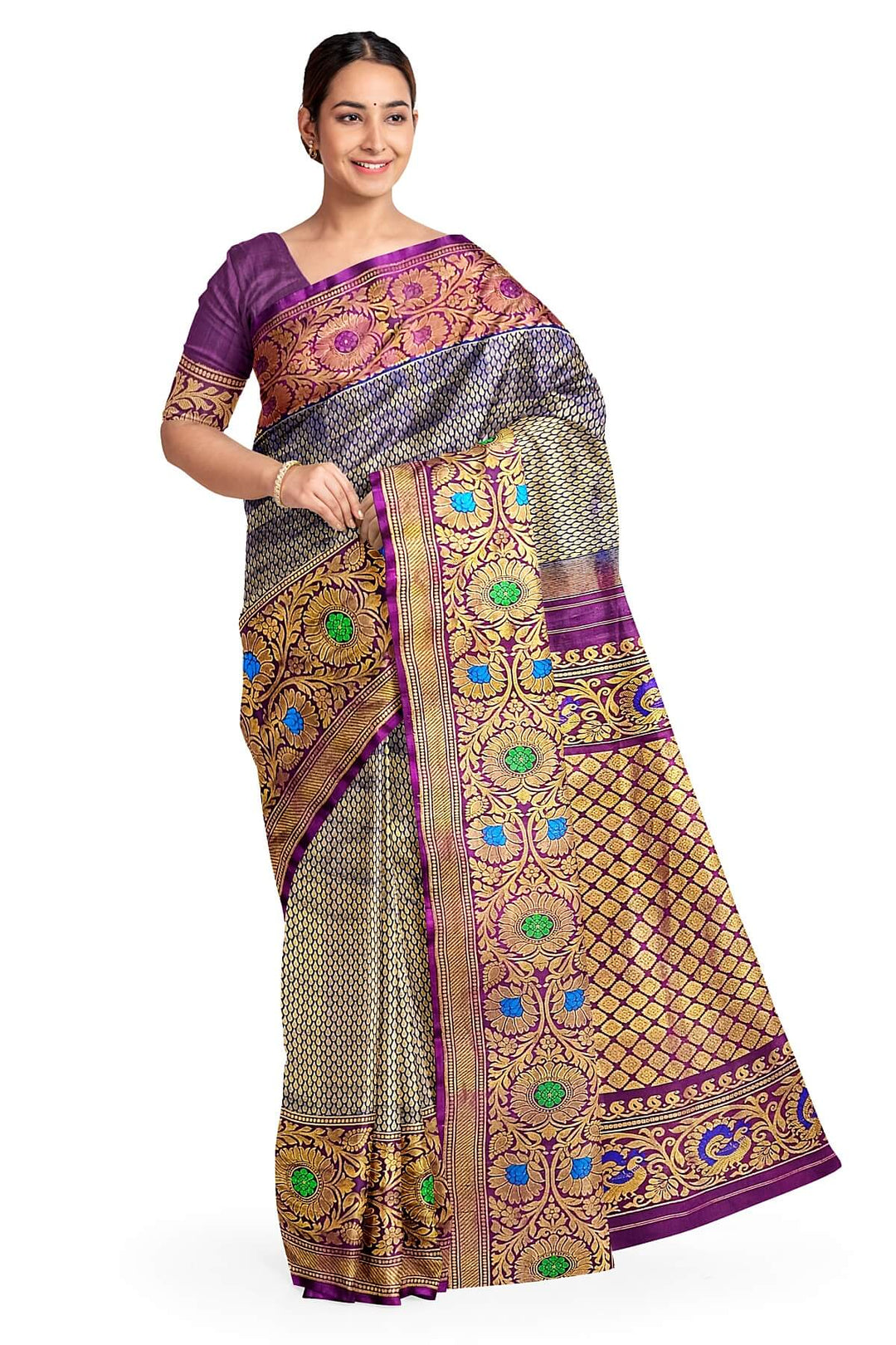 Handloom Banarasi katan pure silk brocade saree in checks in partly style.