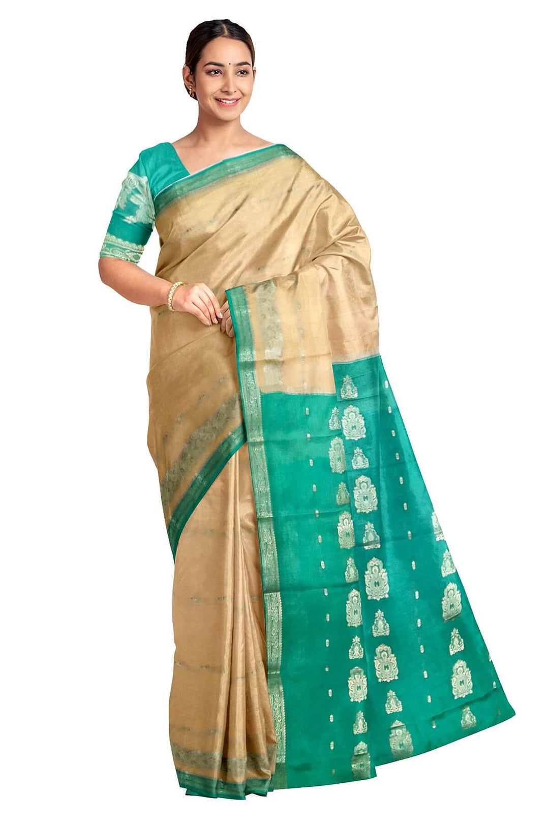 Mysore crepe pure silk saree in sandalwood colour with small motifs