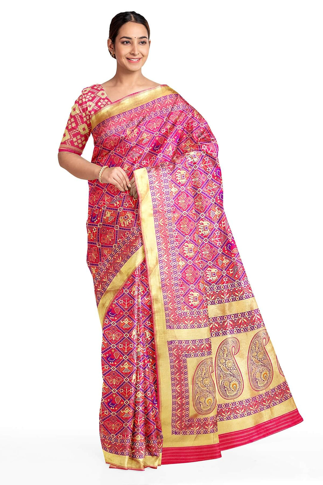 Handwoven Patola Ikat pure silk saree in double shaded violet