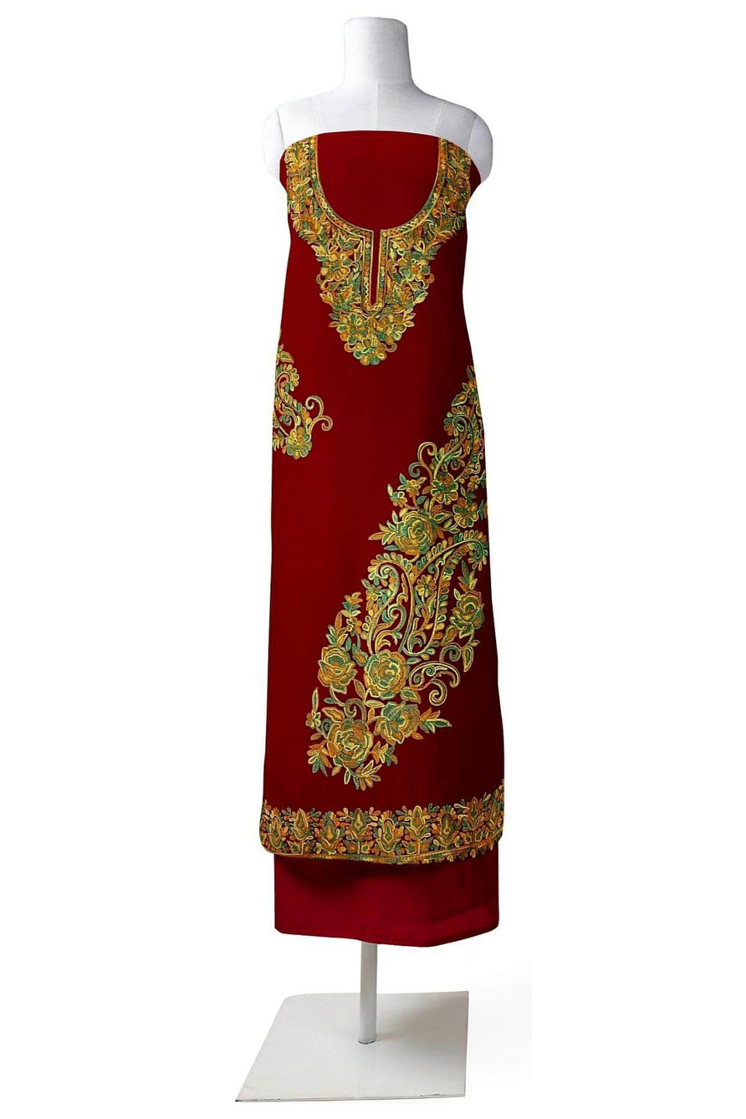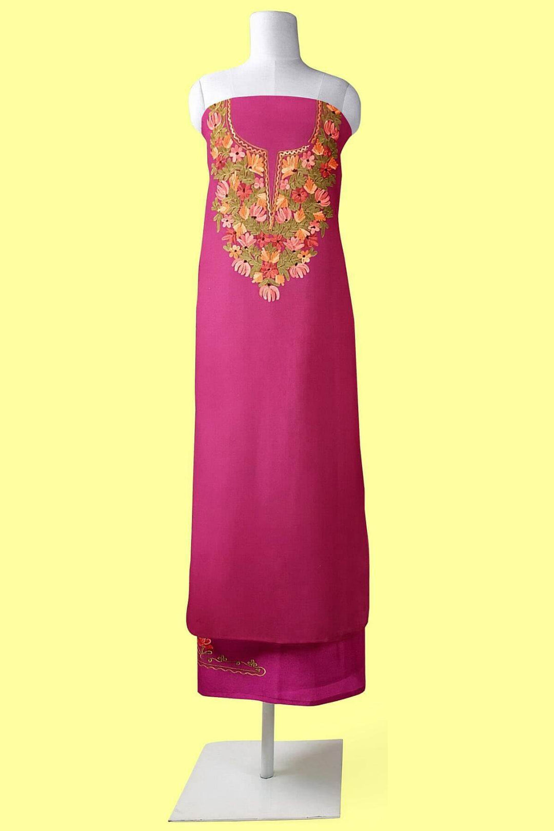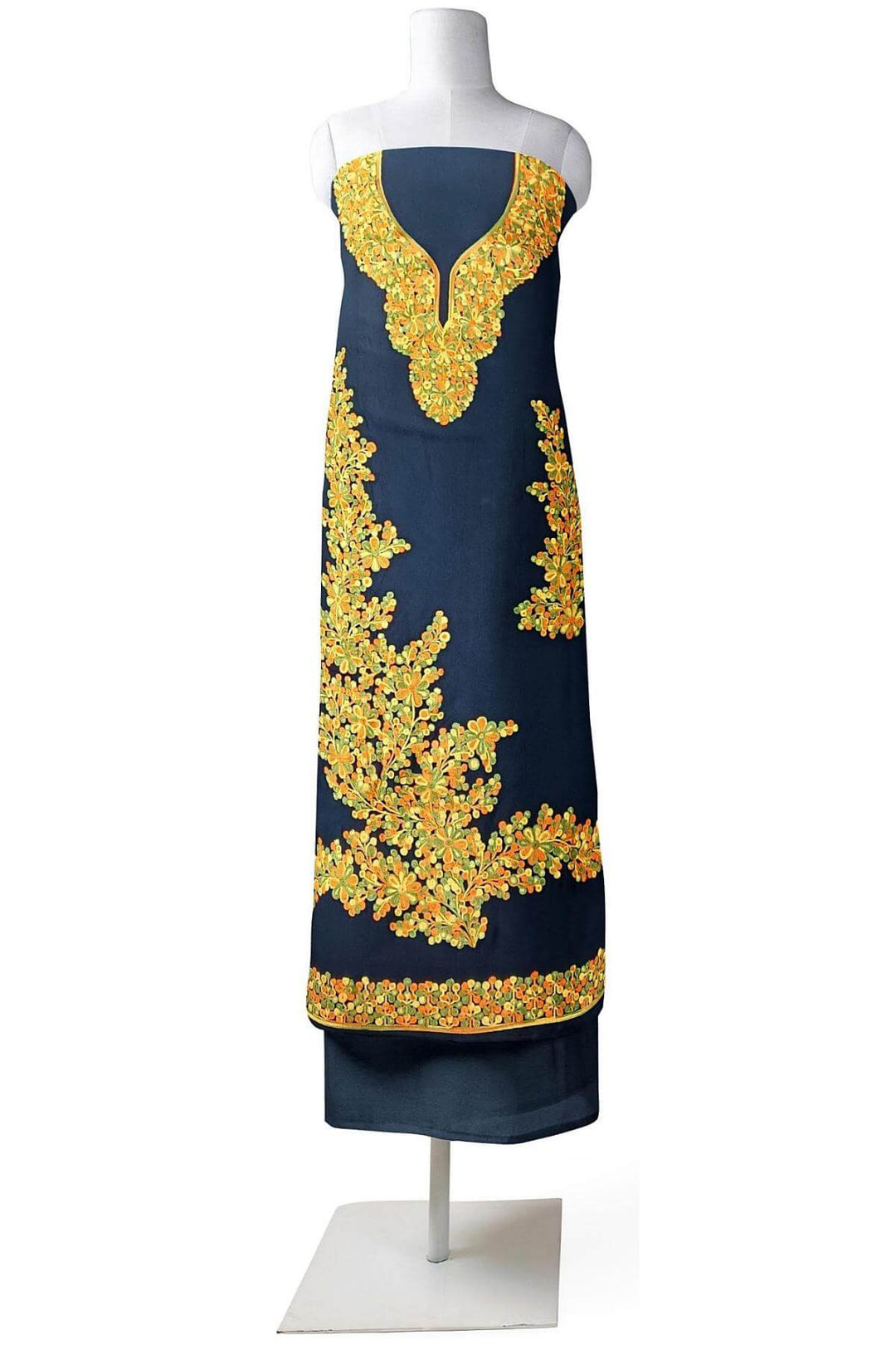 Crepe silk salwar suit material with Kashmiri hand embroidery.