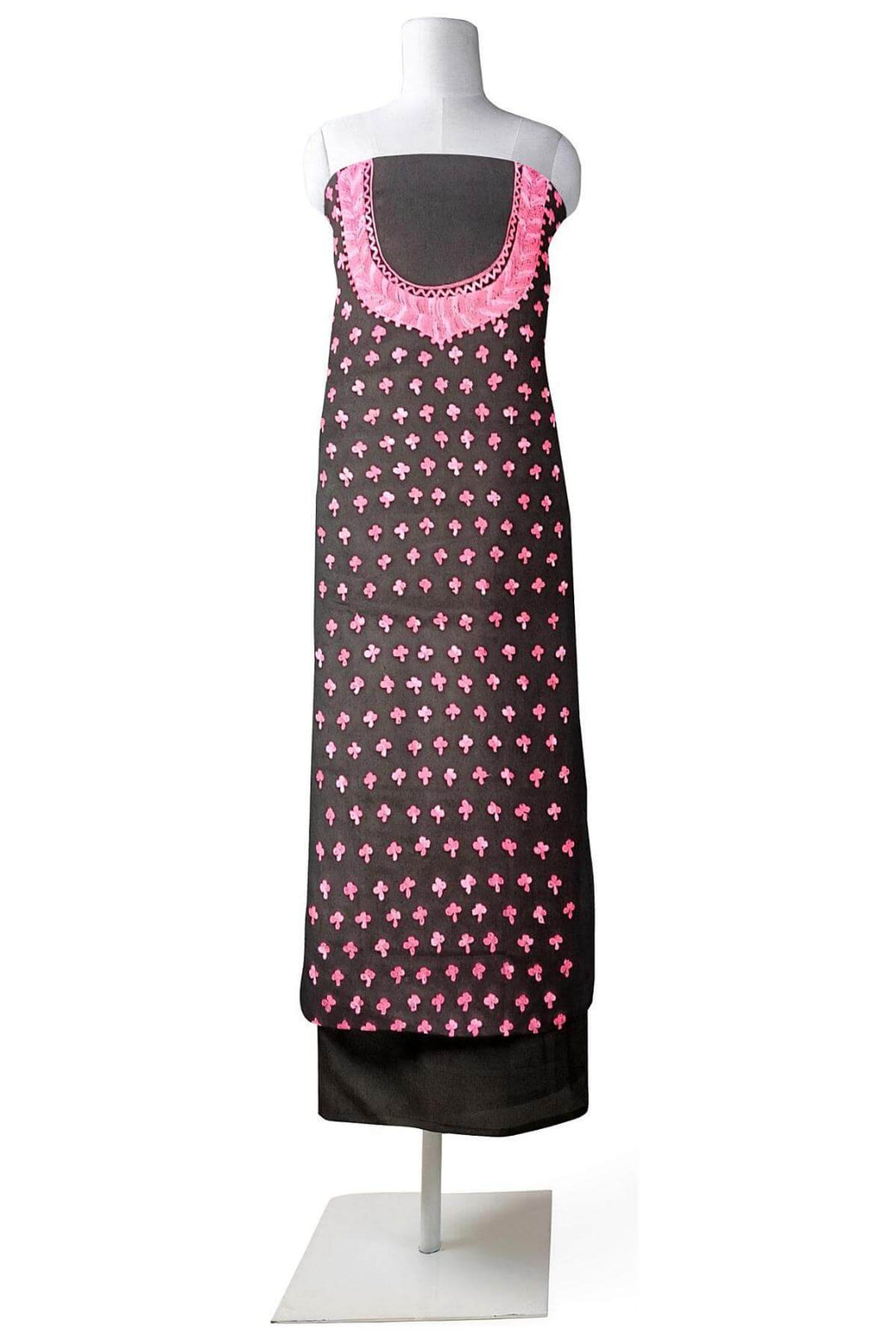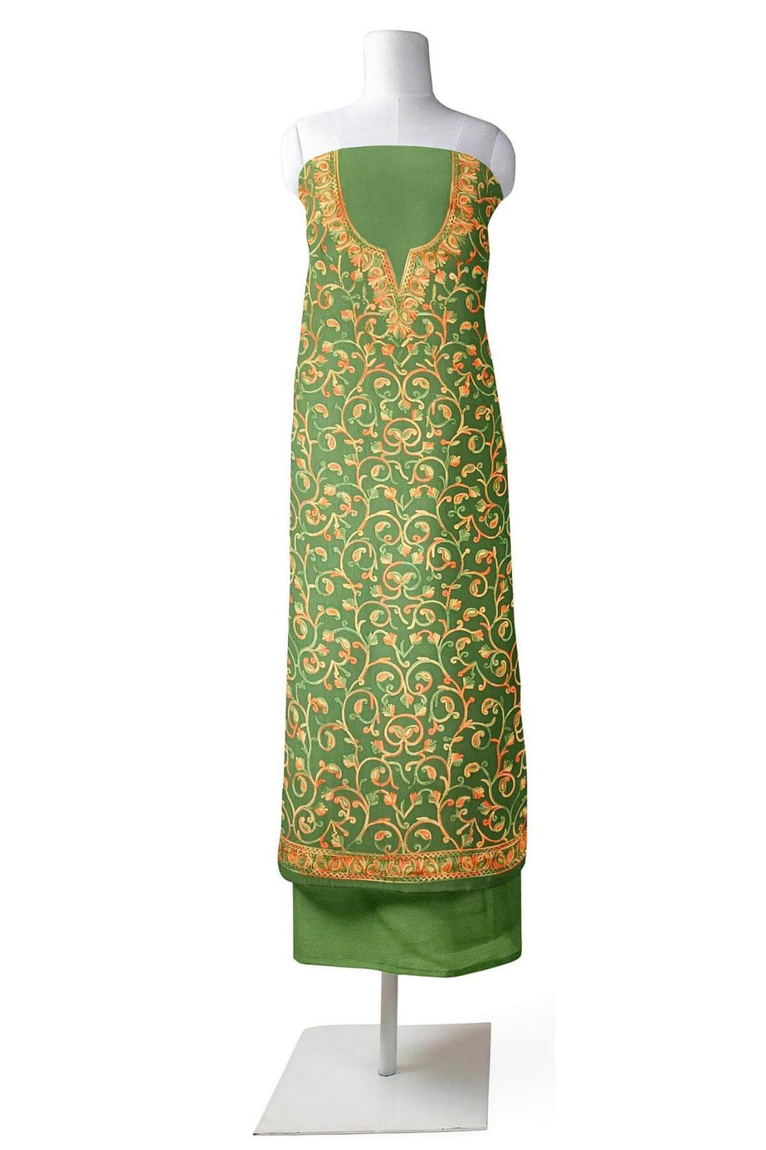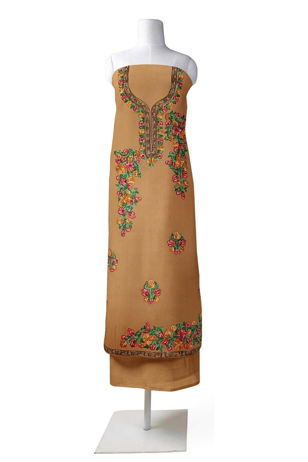 Crepe silk salwar suit material with Kashmiri hand embroidery.