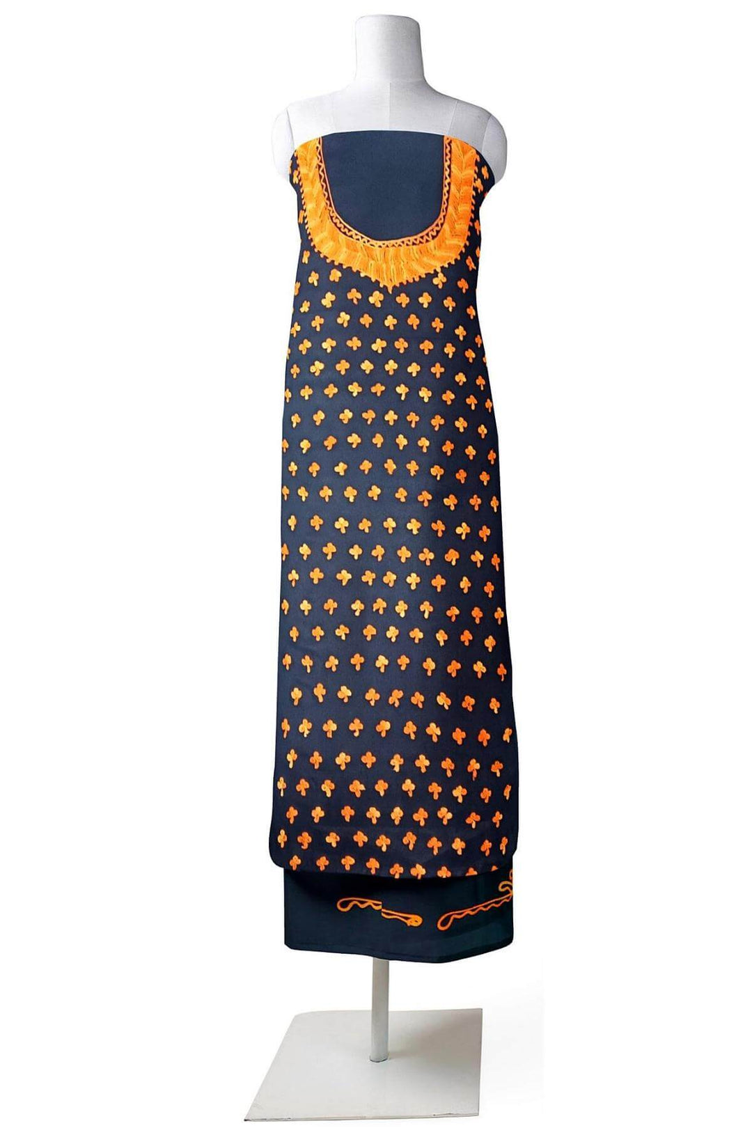 Crepe silk salwar suit material with Kashmiri hand embroidery