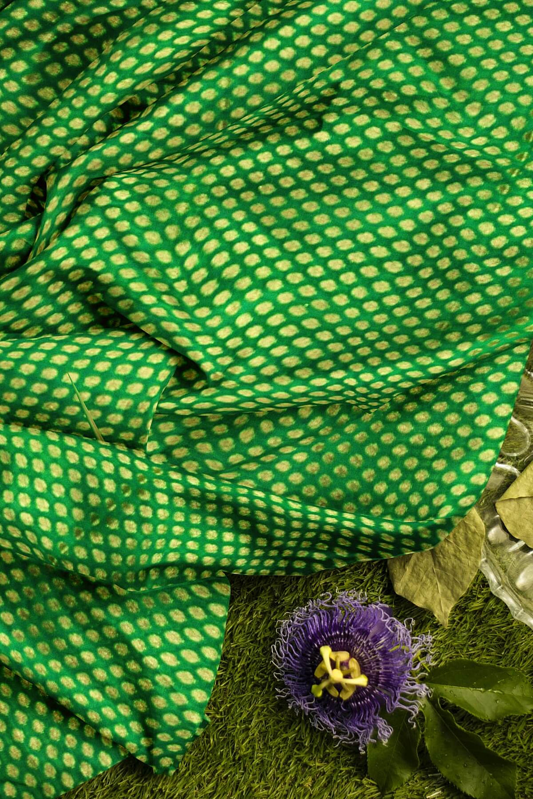 Banarasi silk fabric in green . Available in multiples of 1M & 2.5M