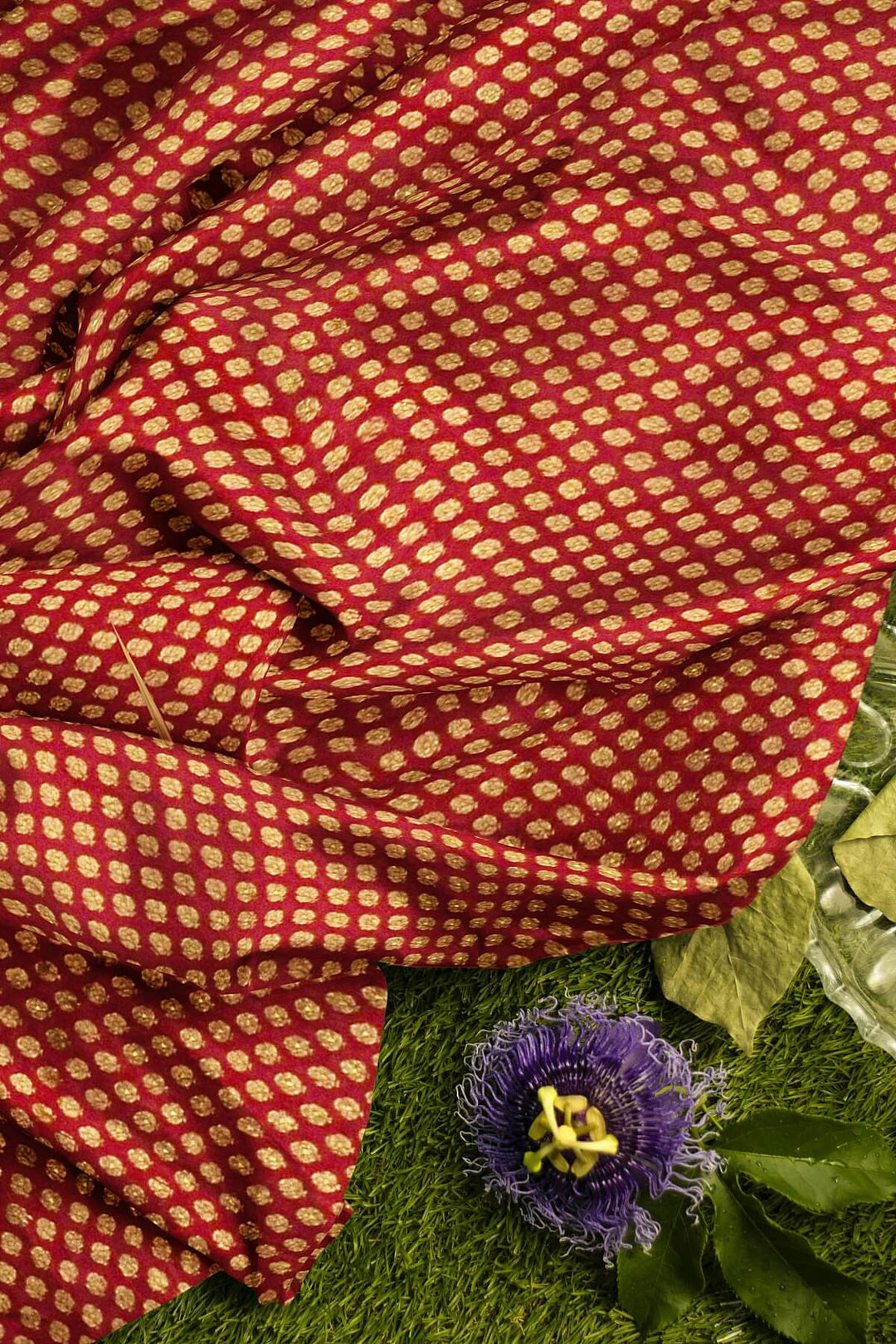 Banarasi silk fabric in red. Available in multiples of 1M & 2.5M