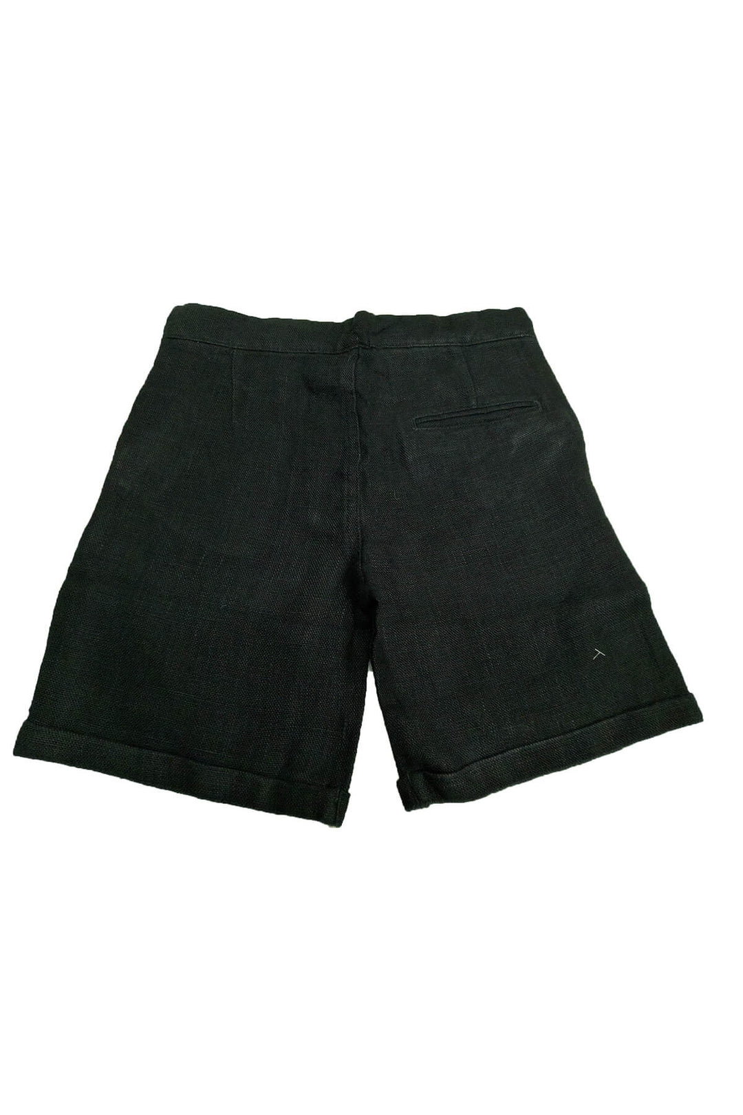 Description : Solid linen shorts with stretchable waist and pockets in black. Comfortable , breathable and easy to wear