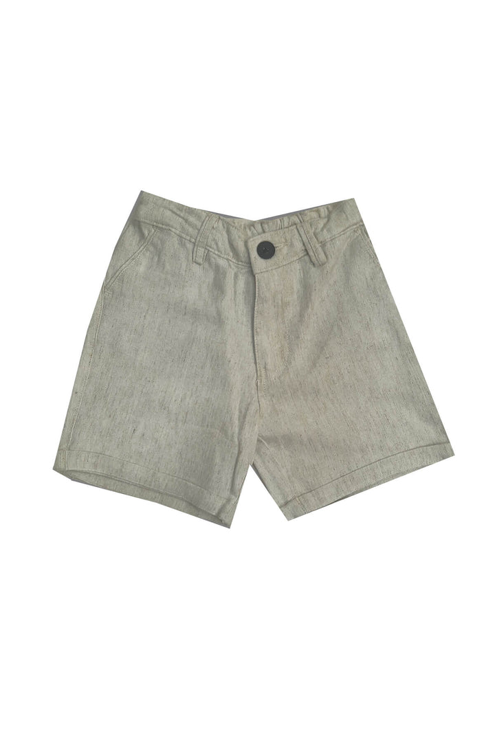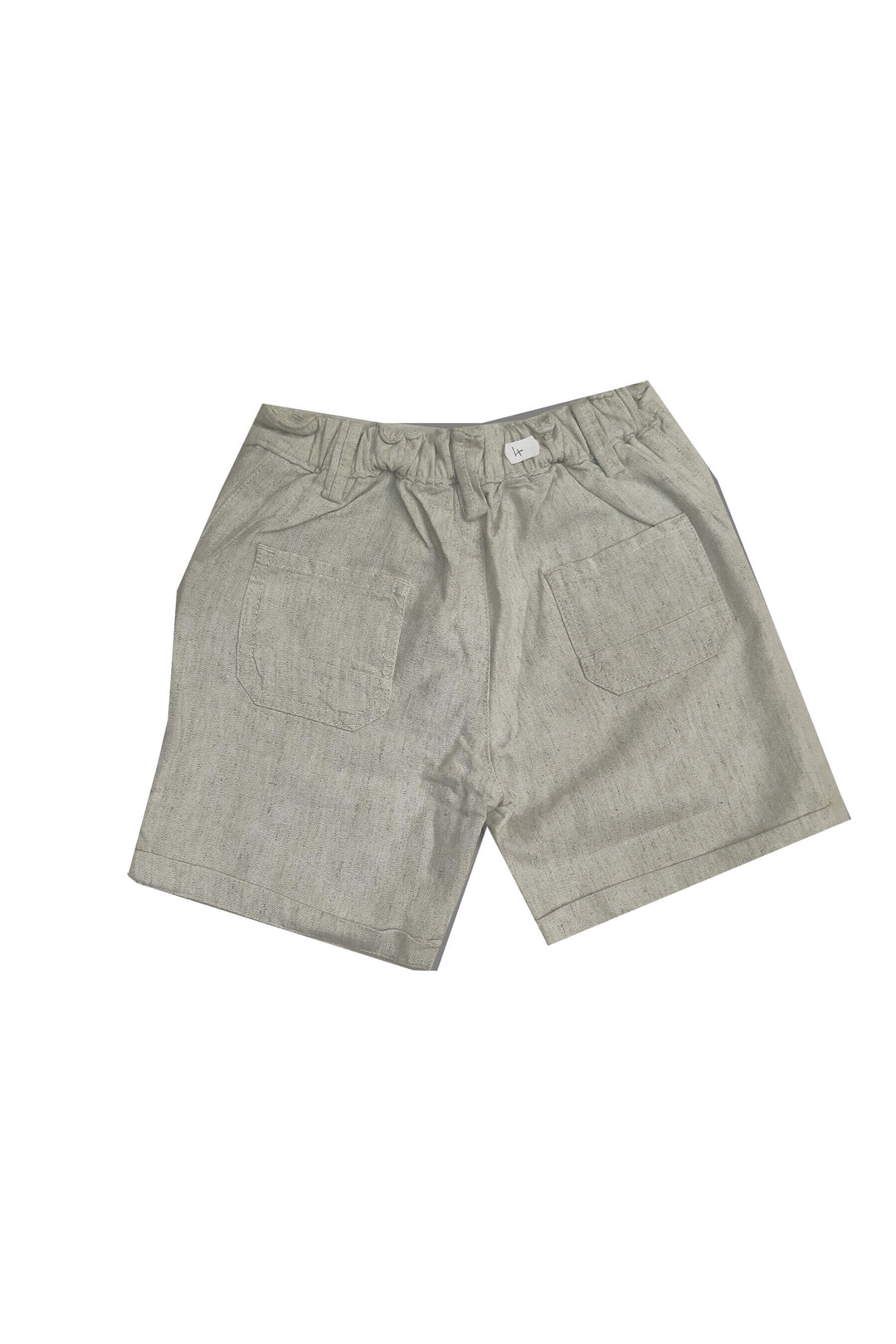 Description : Solid linen shorts with stretchable waist and pockets in off white . Comfortable , breathable and easy to wear
