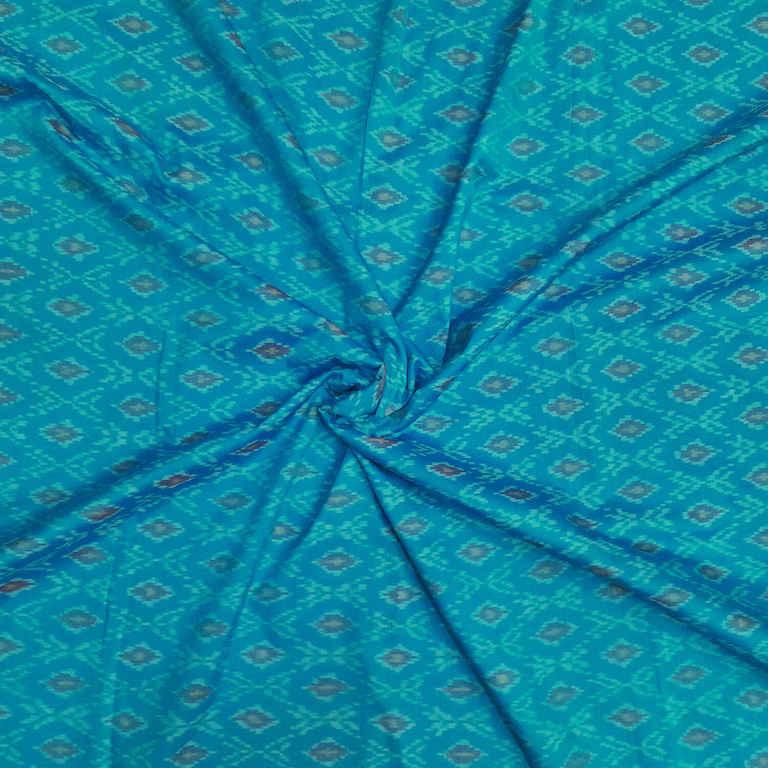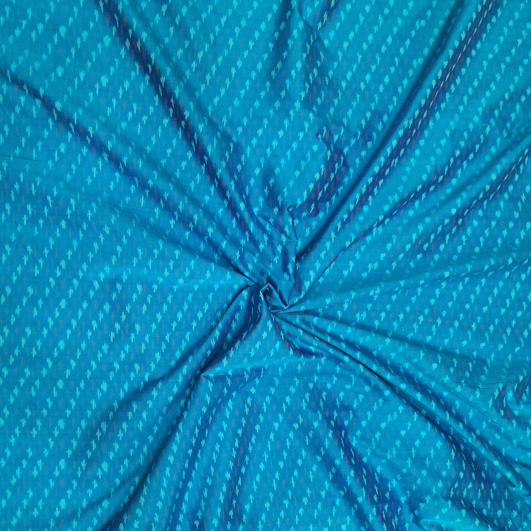 Handwoven Ikat silk cotton fabric in medium torquoise