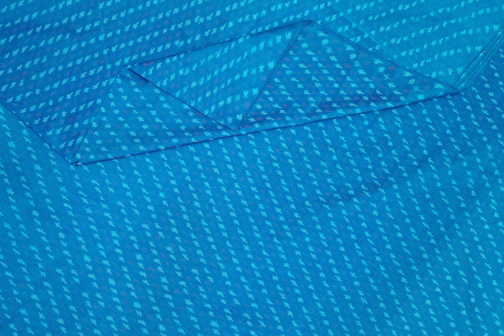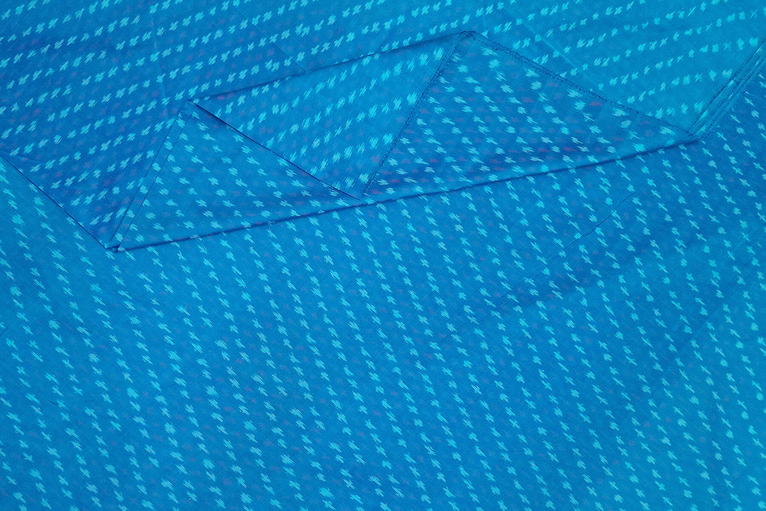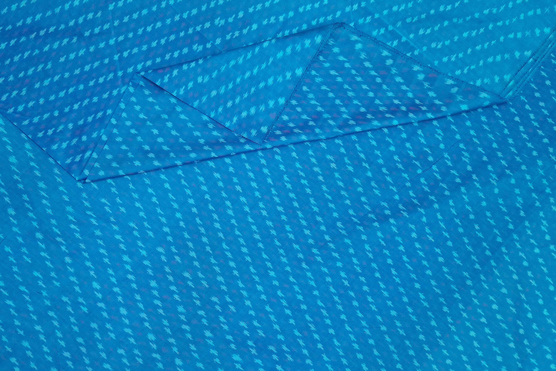 Description : Handwoven Ikat silk cotton fabric in double shaded blue