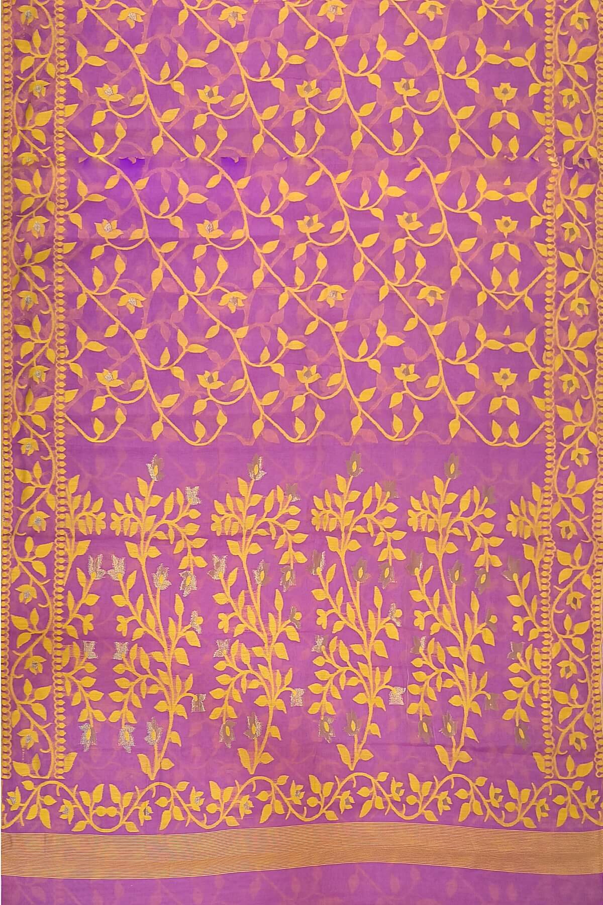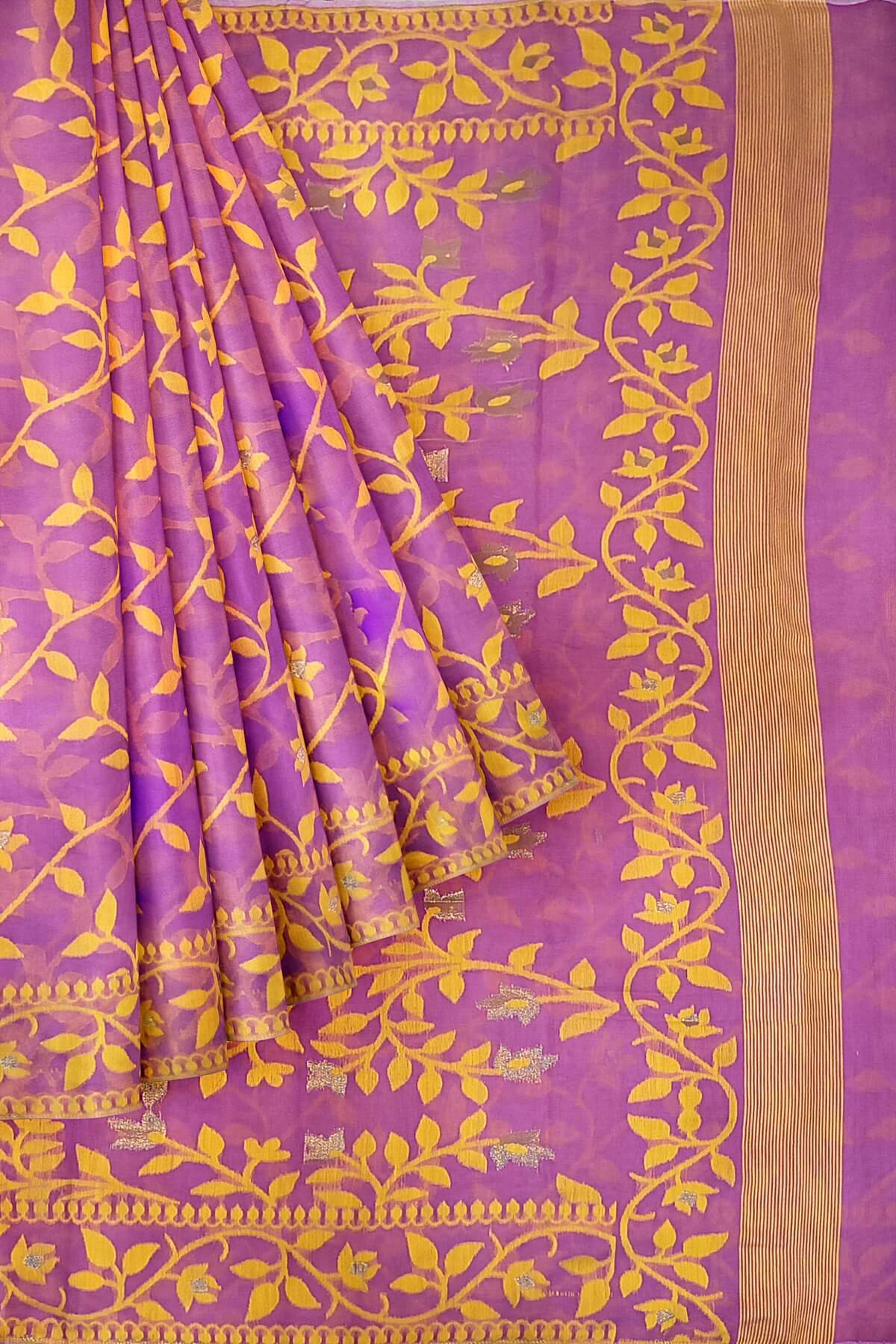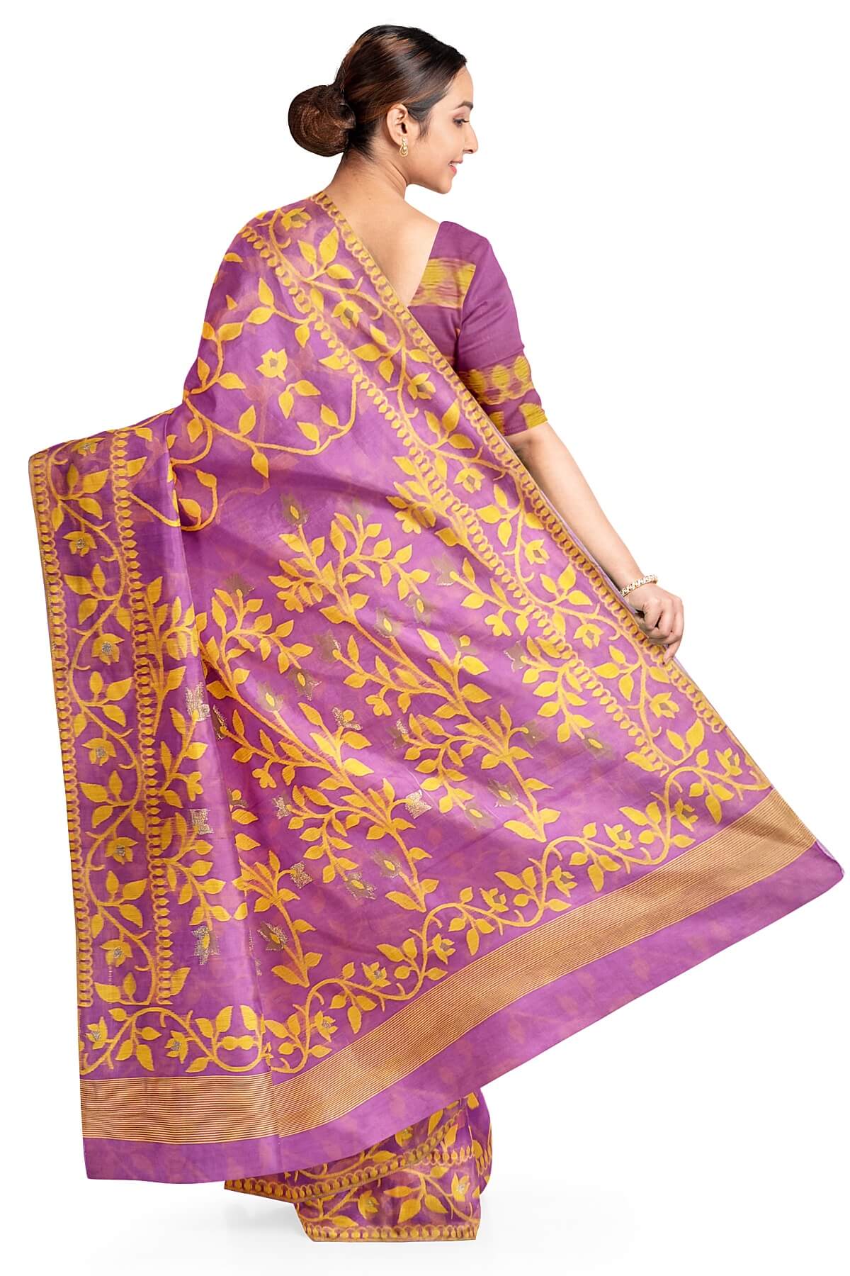 Description : Handloom silk cotton saree in blush pink in floral jamdani weave